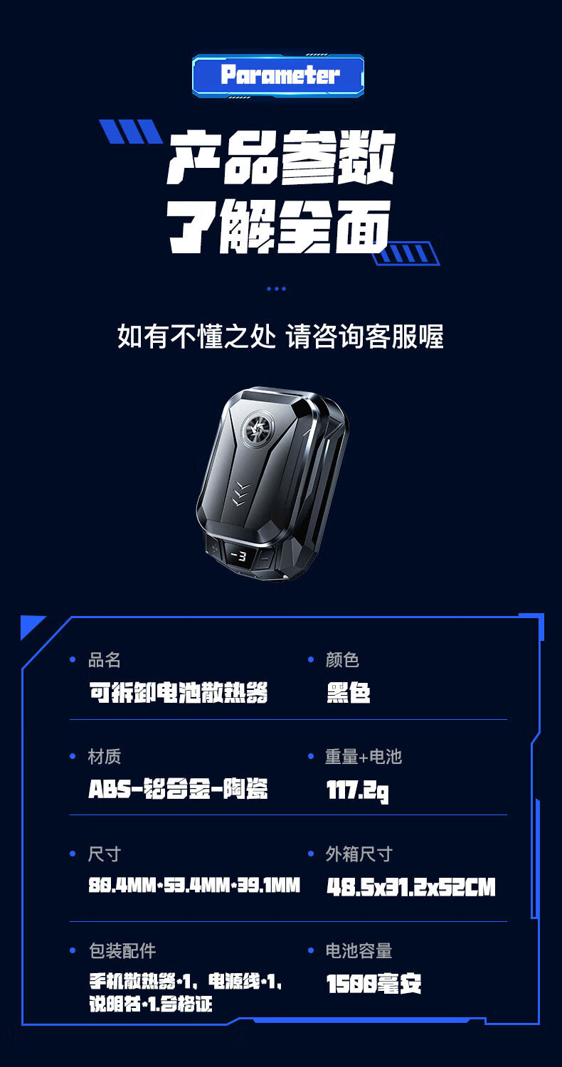 Wireless cooling belt battery, rechargeable mobile phone radiator semiconductor, e-sports icing artifact silent live broadcast, suitable for Black Shark, suitable for Apple OnePlus, Huawei and Xiaomi, magnetic battery * 1 + radiator, cooling cooling semiconductor radiator