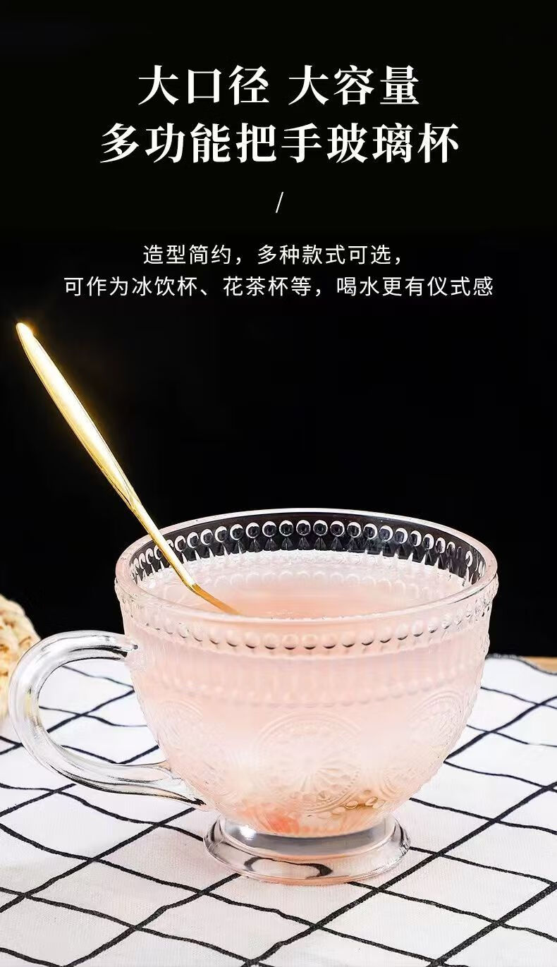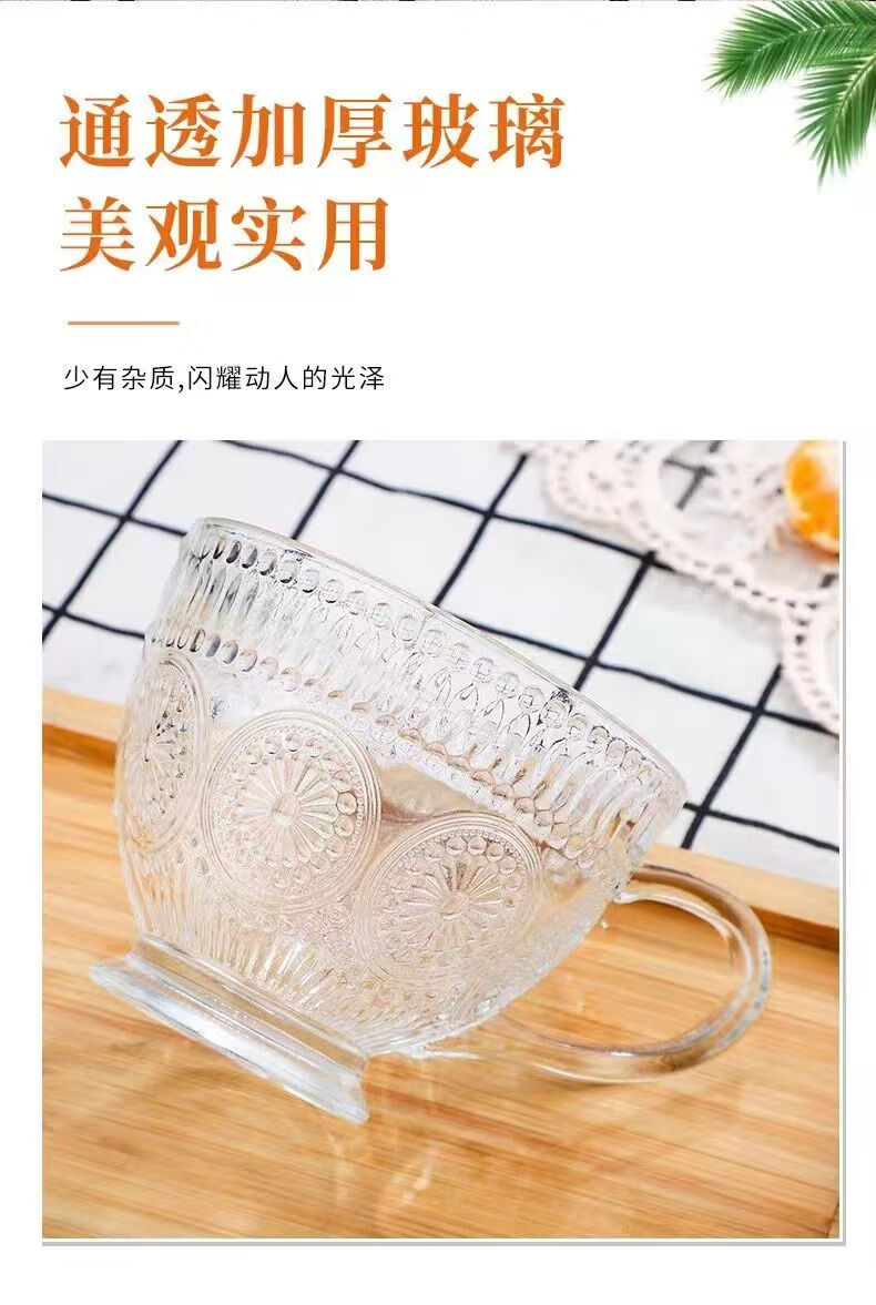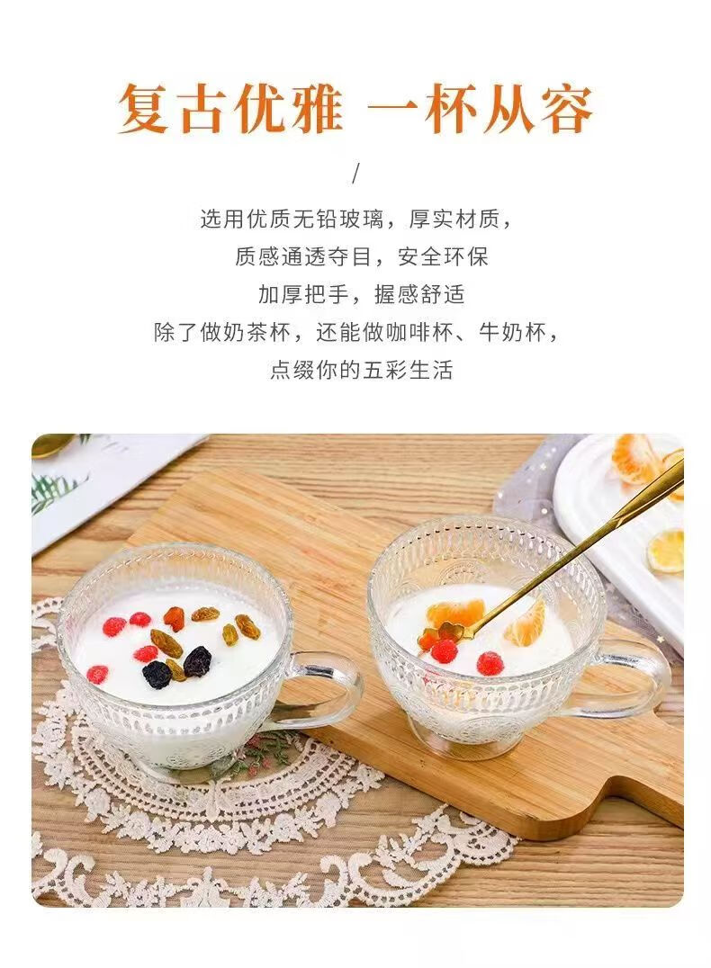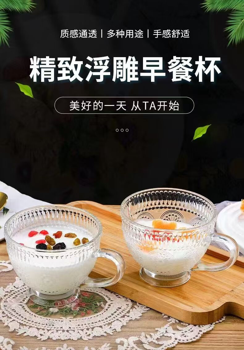 Green tea cup, glass cup, breakfast cup, retro water cup, oatmeal milk cup, household large-capacity cup with handle and good-looking cup, smooth handle cup 320ml 1 pack
