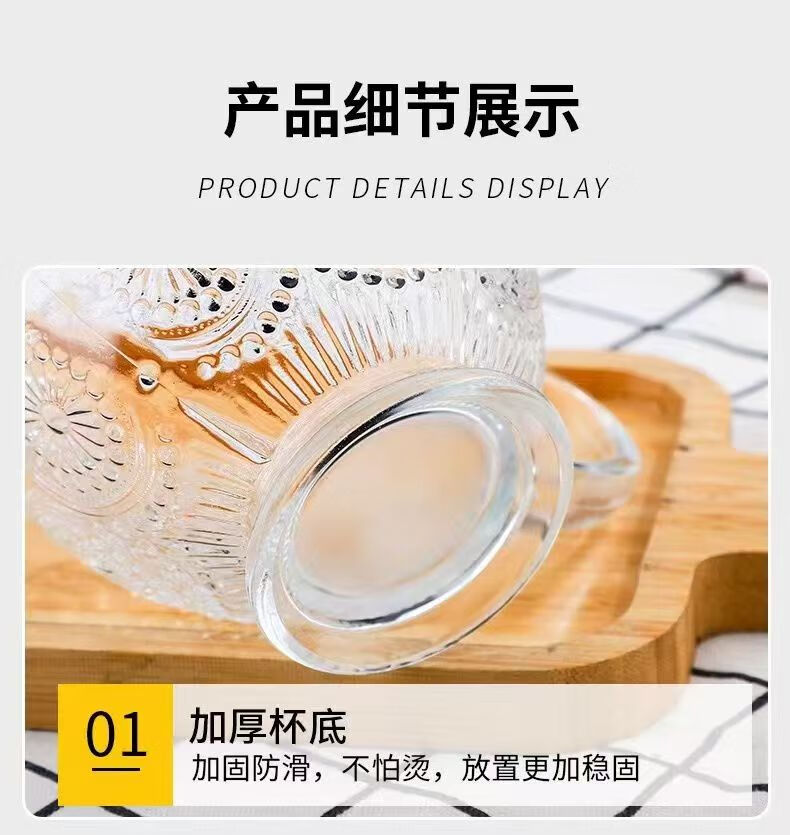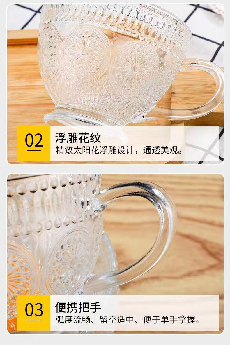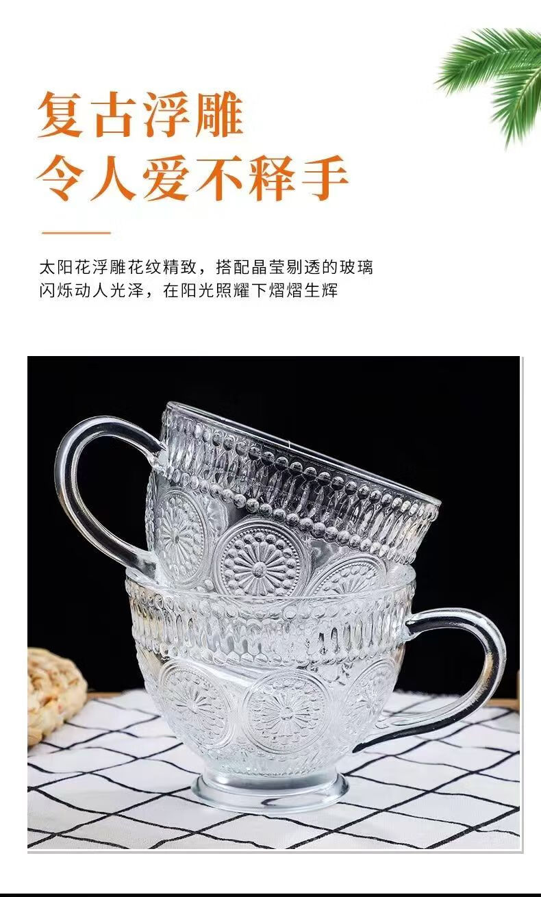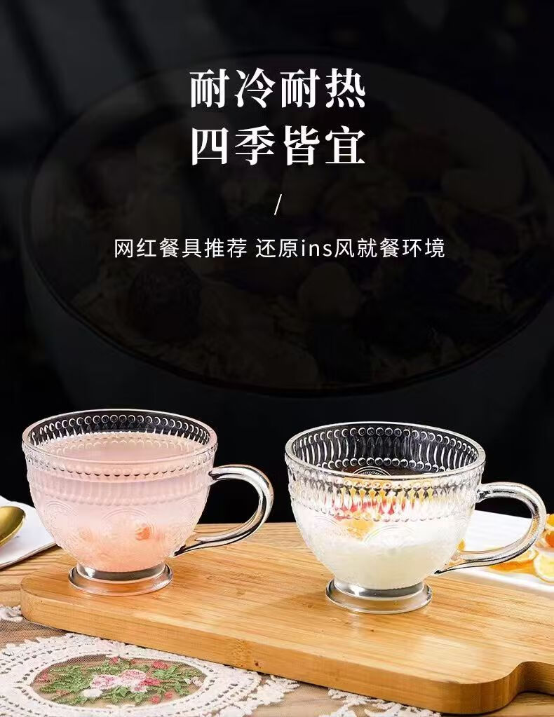 Green tea cup, glass cup, breakfast cup, retro water cup, oatmeal milk cup, household large-capacity cup with handle and good-looking cup, smooth handle cup 320ml 1 pack