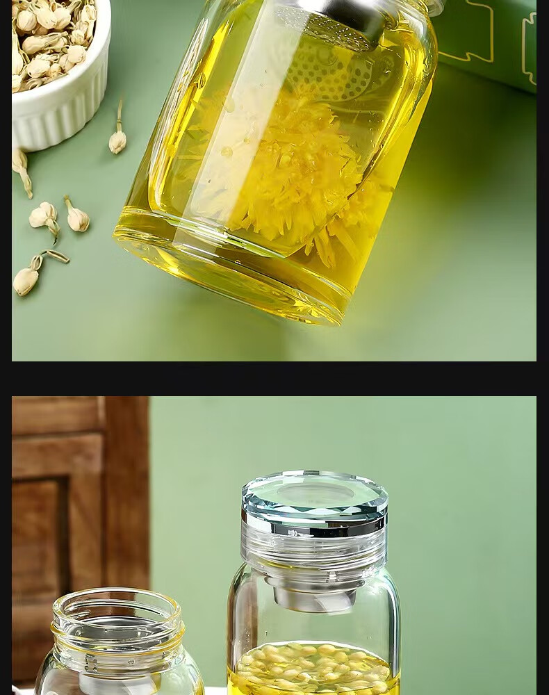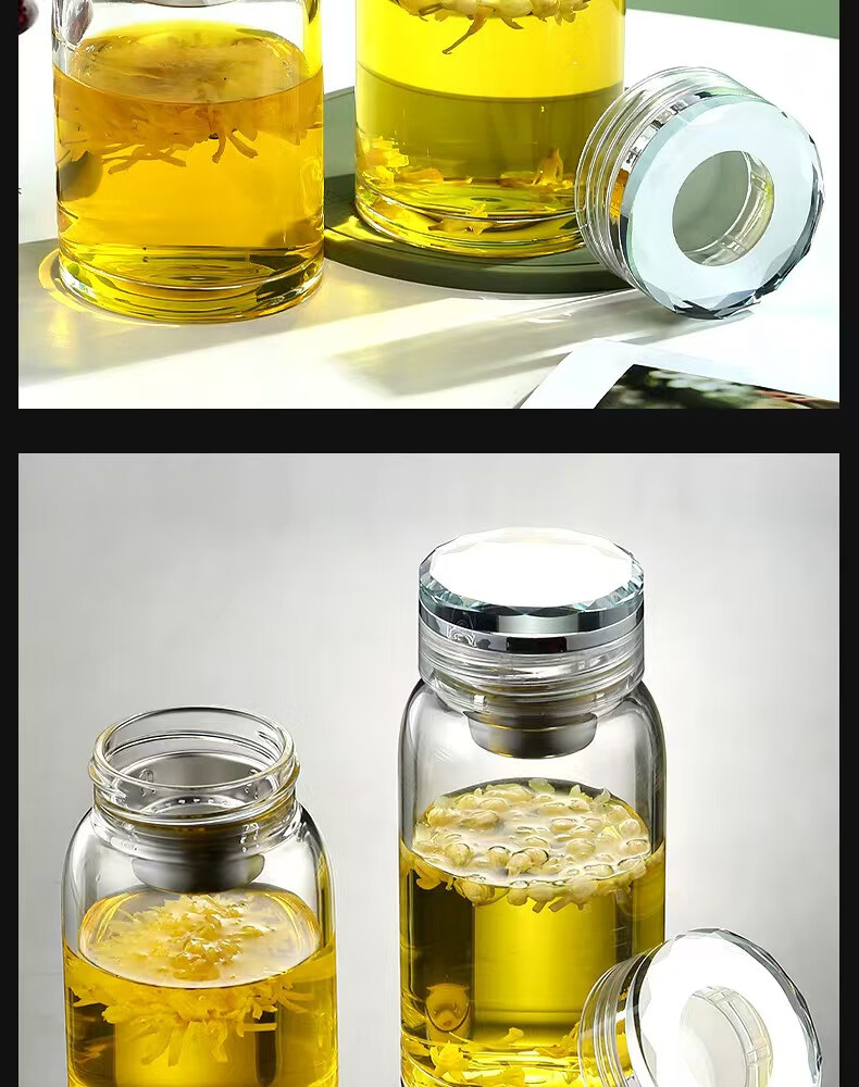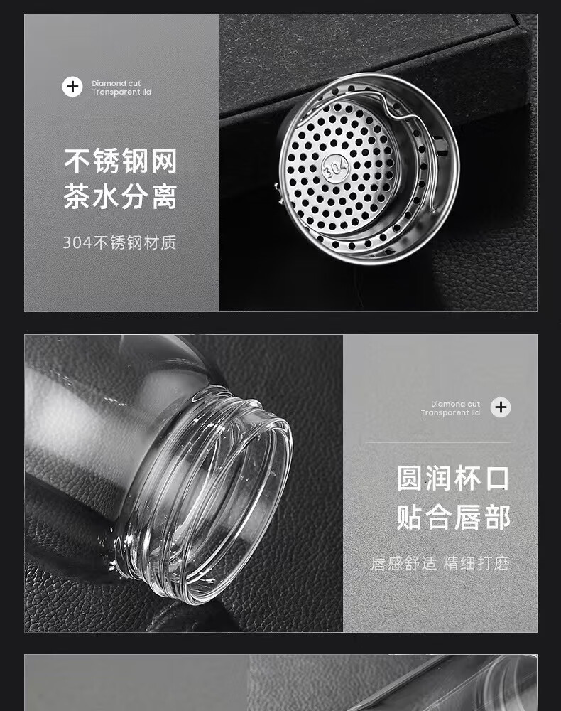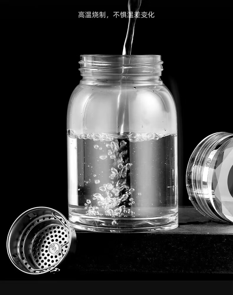 Glass large capacity tea cup portable tea water separator cup for men and women office tea cup tea water separation cup 500ml diamond cup + cup set 1 piece