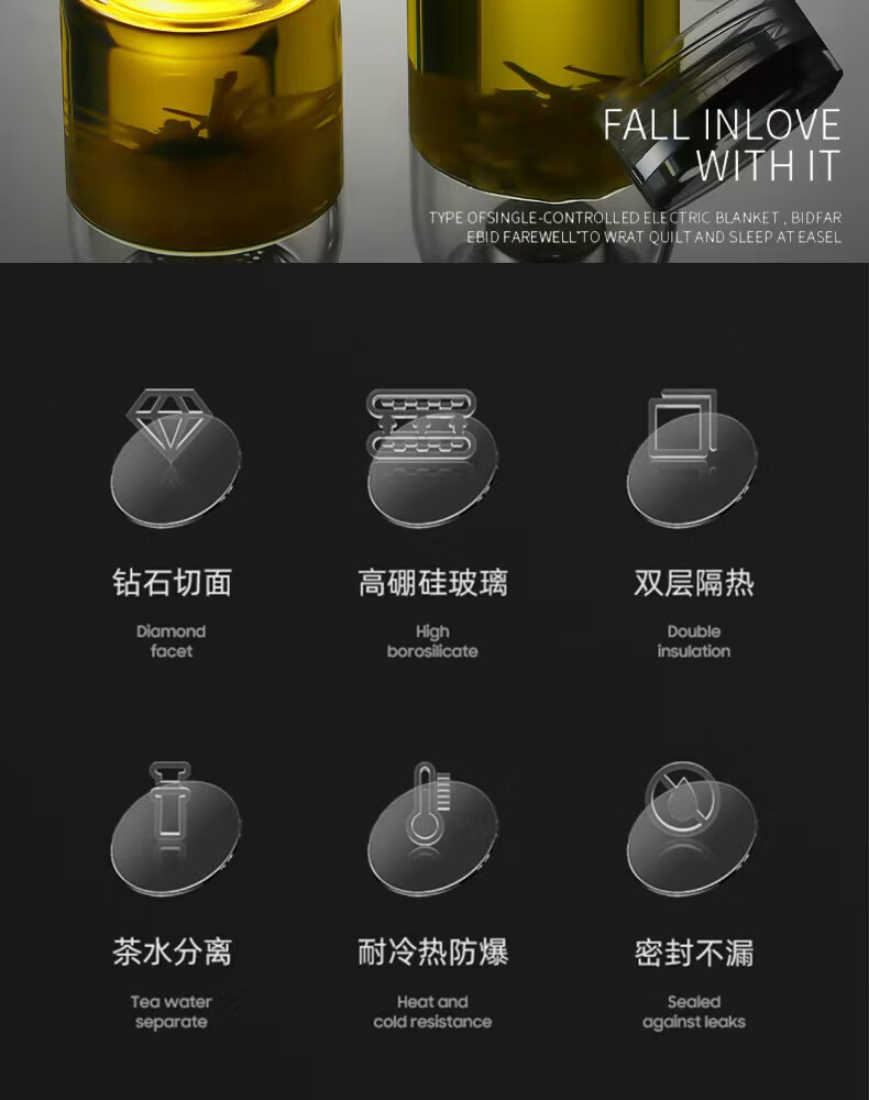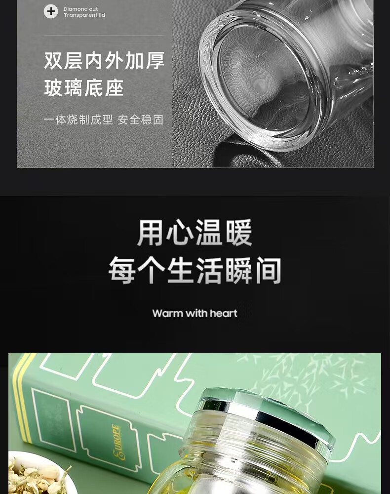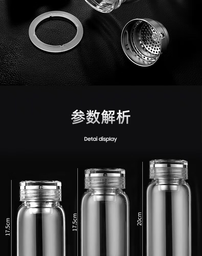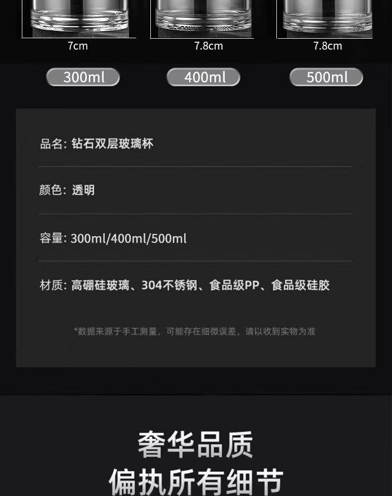 Glass large capacity tea cup portable tea water separator cup for men and women office tea cup tea water separation cup 500ml diamond cup + cup set 1 piece