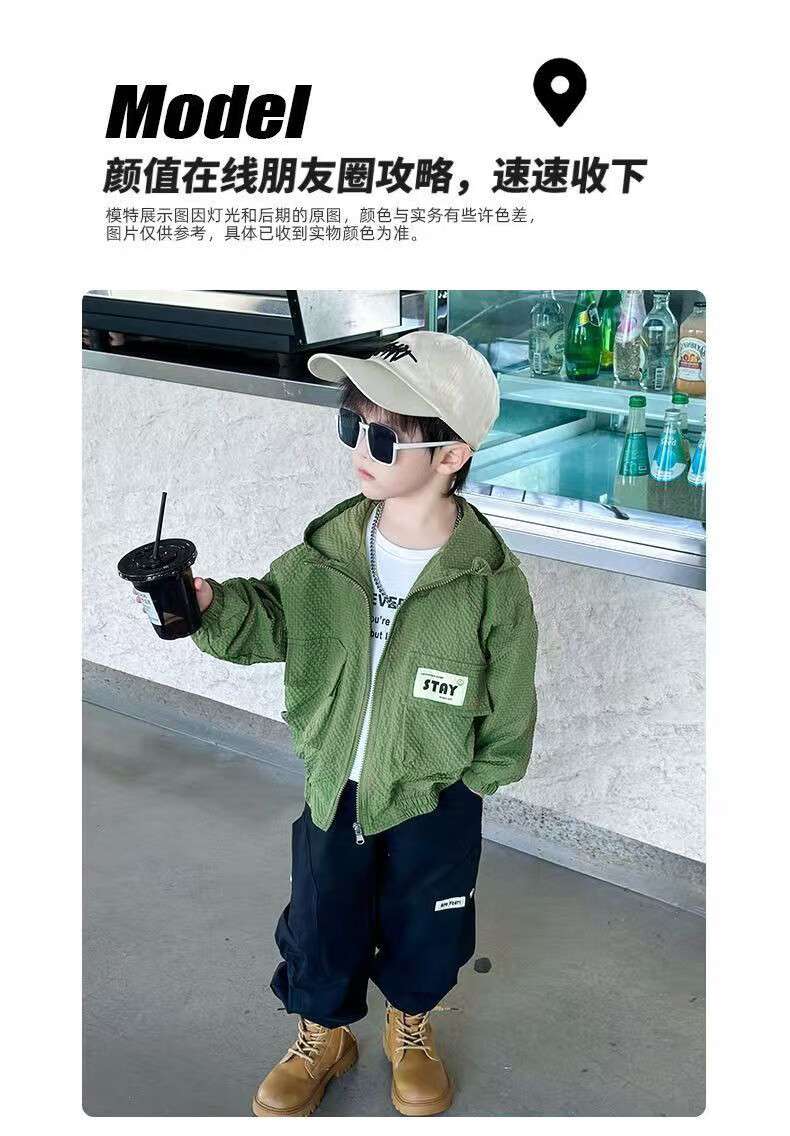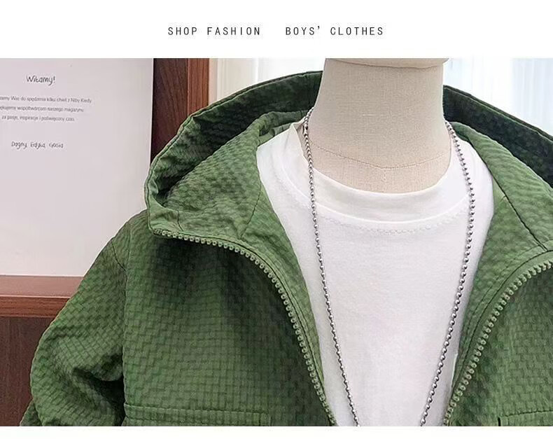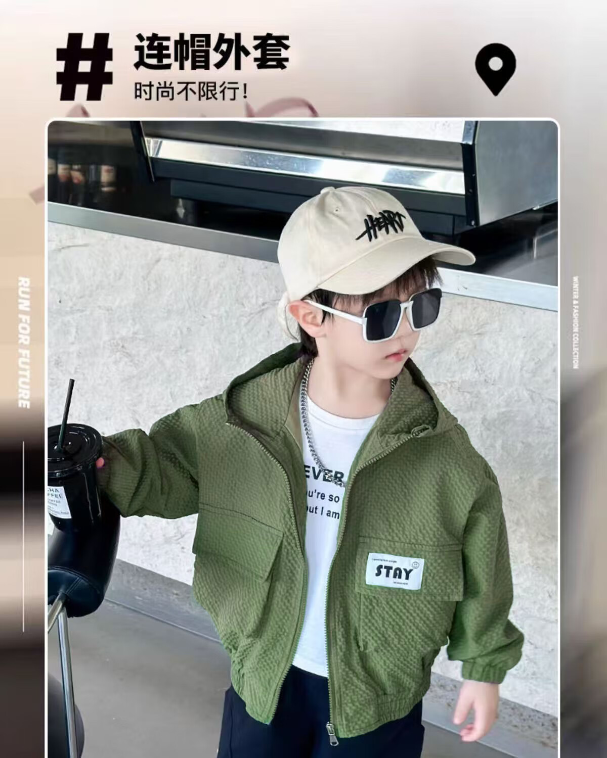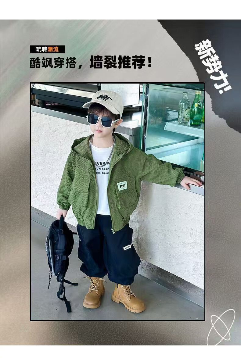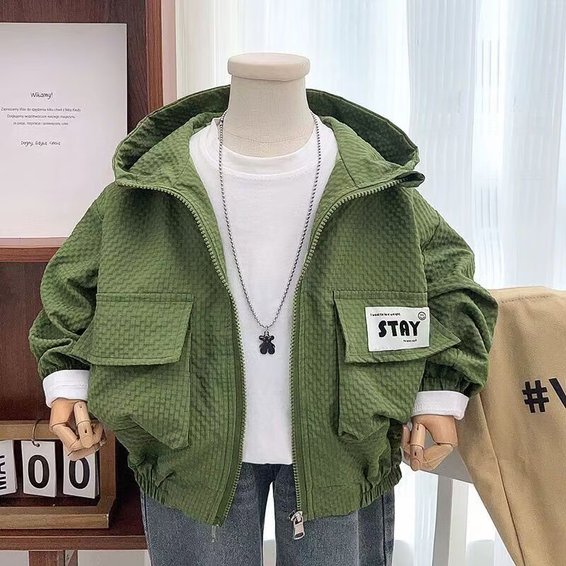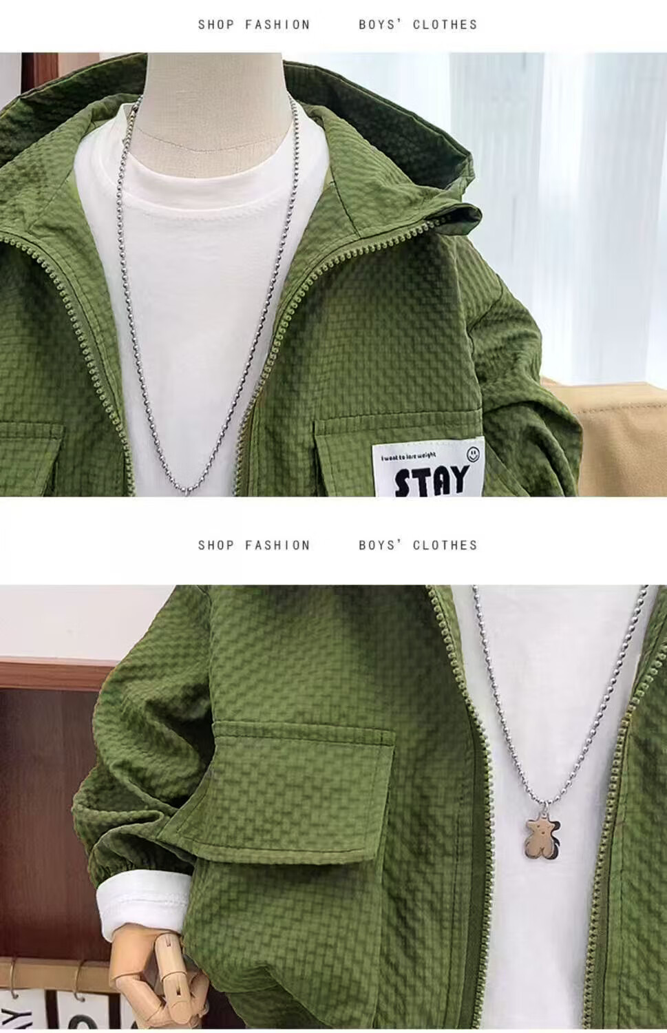Boys Jacket Spring and Autumn 2025 New Children's Style Hooded Zip Shirt Baby Spring and Autumn Cool and Handsome Little Boy Jacket Bread Pocket Jacket 150 cm Recommended height is about 145