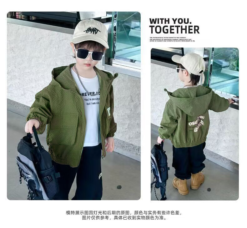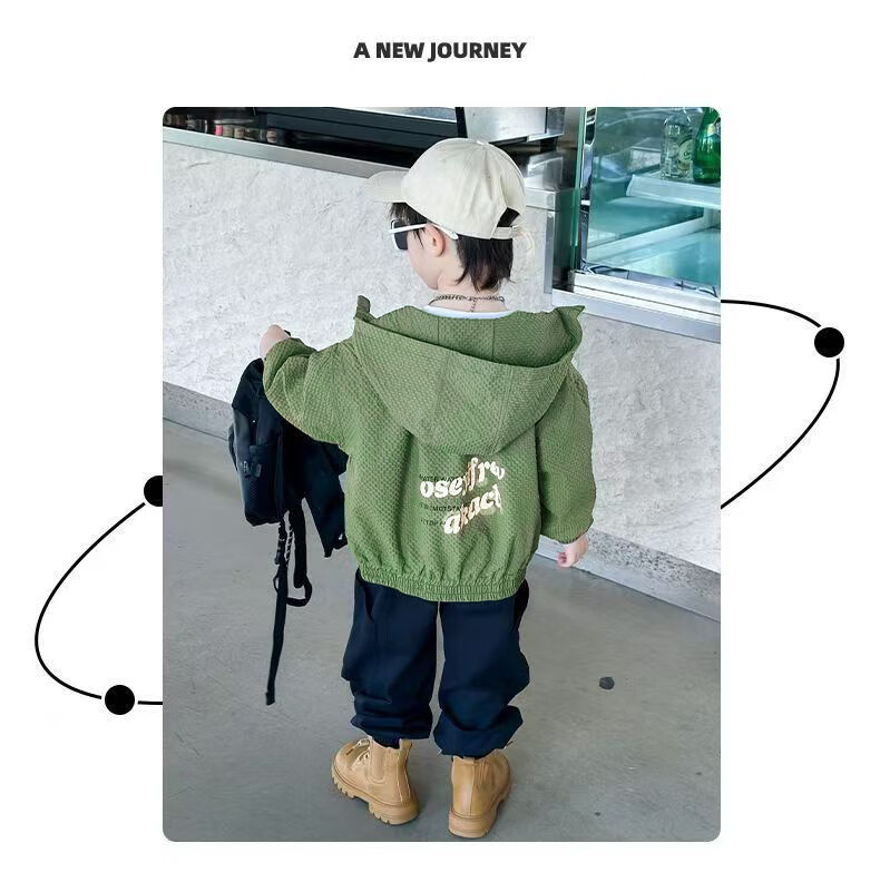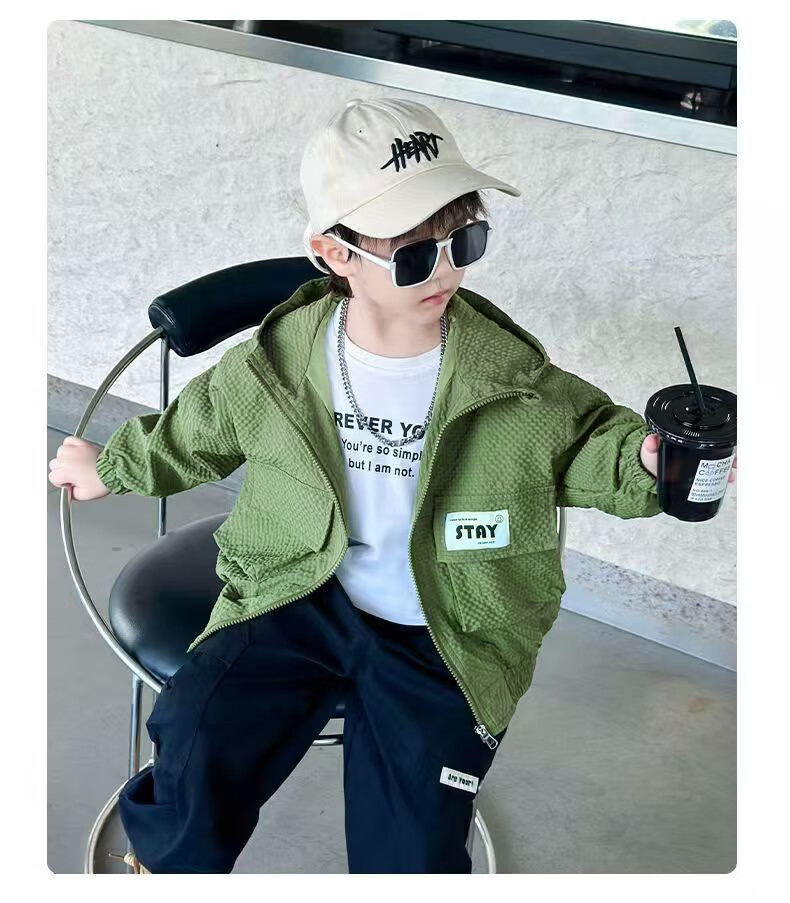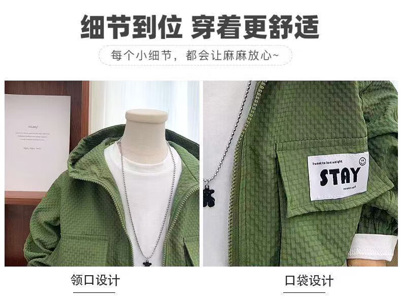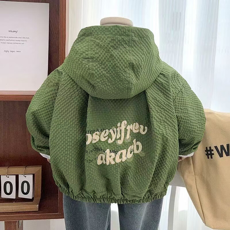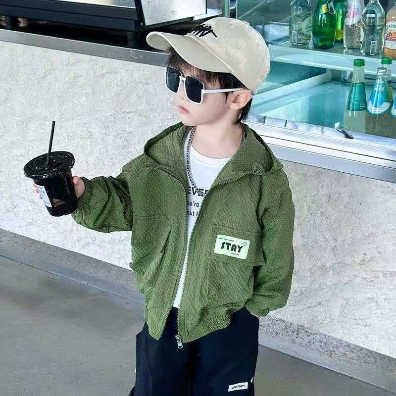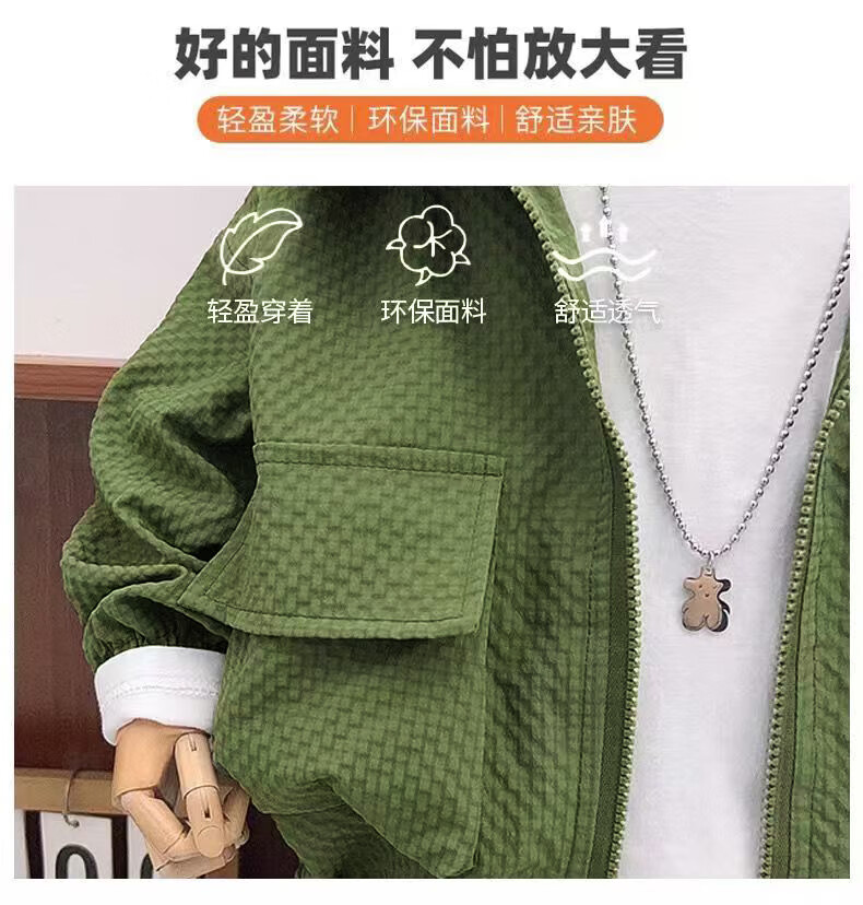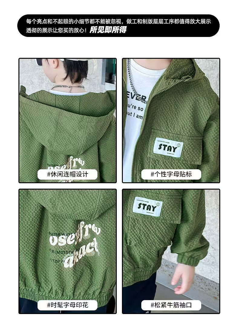 Boys Jacket Spring and Autumn 2025 New Children's Style Hooded Zip Shirt Baby Spring and Autumn Cool and Handsome Little Boy Jacket Bread Pocket Jacket 150 cm Recommended height is about 145