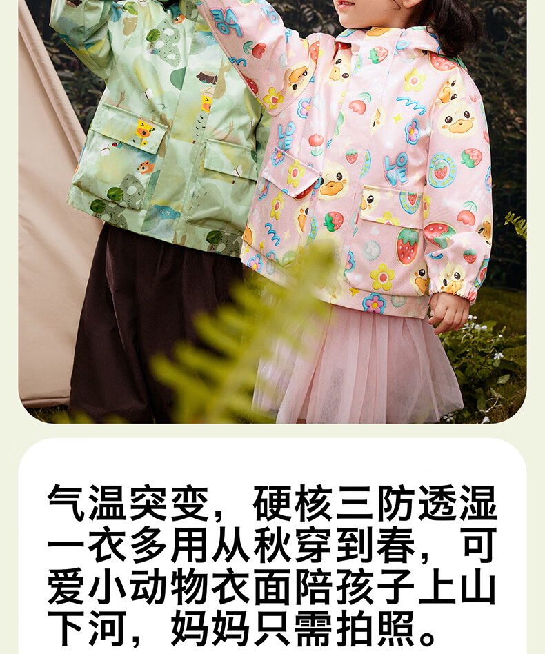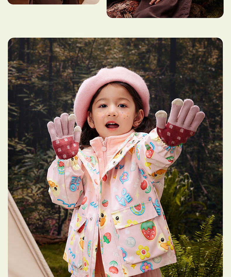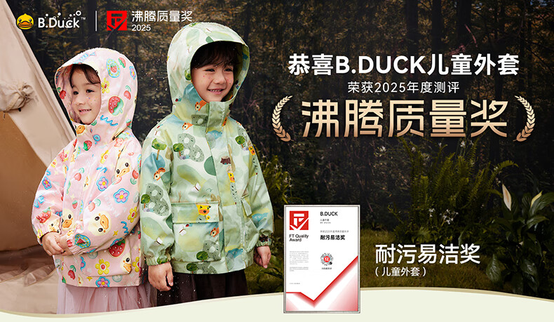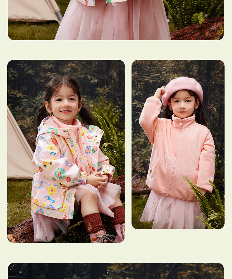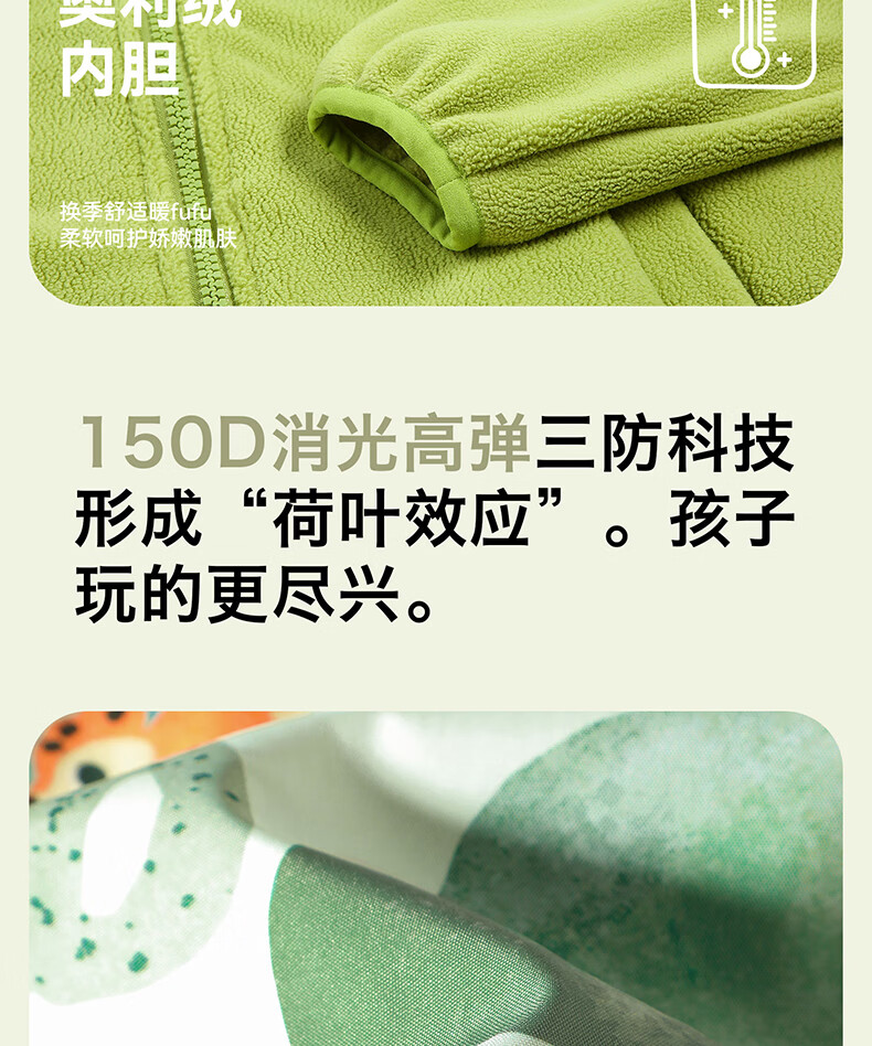 B.Duck Little Yellow Duck Children's Clothing Boys Jacket Three-in-One Children's Three-Proof 2025 Autumn and Winter New Girls Outdoor Two-piece Set Three-Proof Jacket + Warm Velvet Liner Light Grass Green 100 cm (Category A)