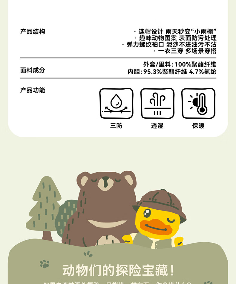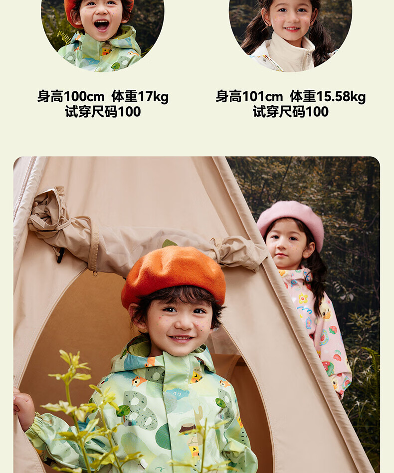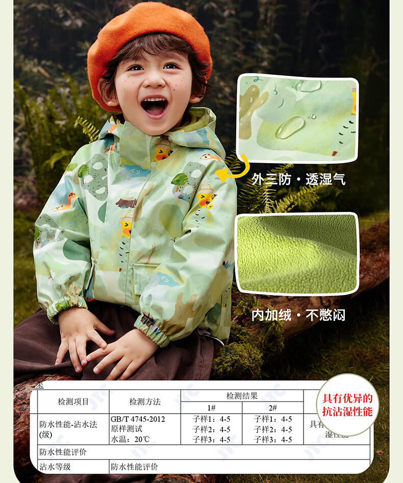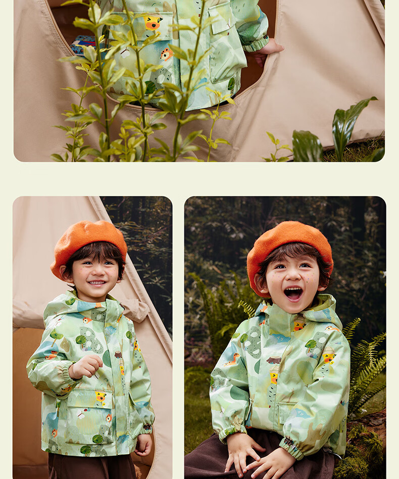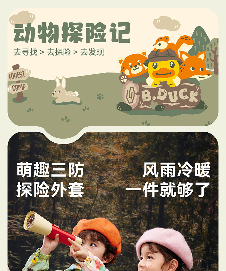 B.Duck Little Yellow Duck Children's Clothing Boys Jacket Three-in-One Children's Three-Proof 2025 Autumn and Winter New Girls Outdoor Two-piece Set Three-Proof Jacket + Warm Velvet Liner Light Grass Green 100 cm (Category A)