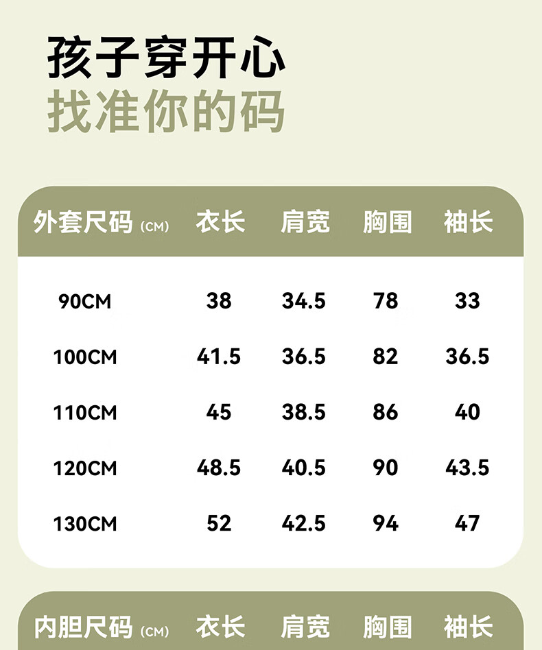 China (cm) 165 / 88-90 170 / 96-98 175 / 108-110 180 / 118-122 185 / 126-130