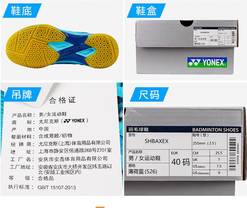 YONEX (YONEX) new product YONEX YYY badminton shoes SHBAXEX men's and women's ultra-light training shoes yy sports shoes SHBAXEX mint blue shoe box with a layer of paper 36 225mm ultra-light fourth generation mid-range