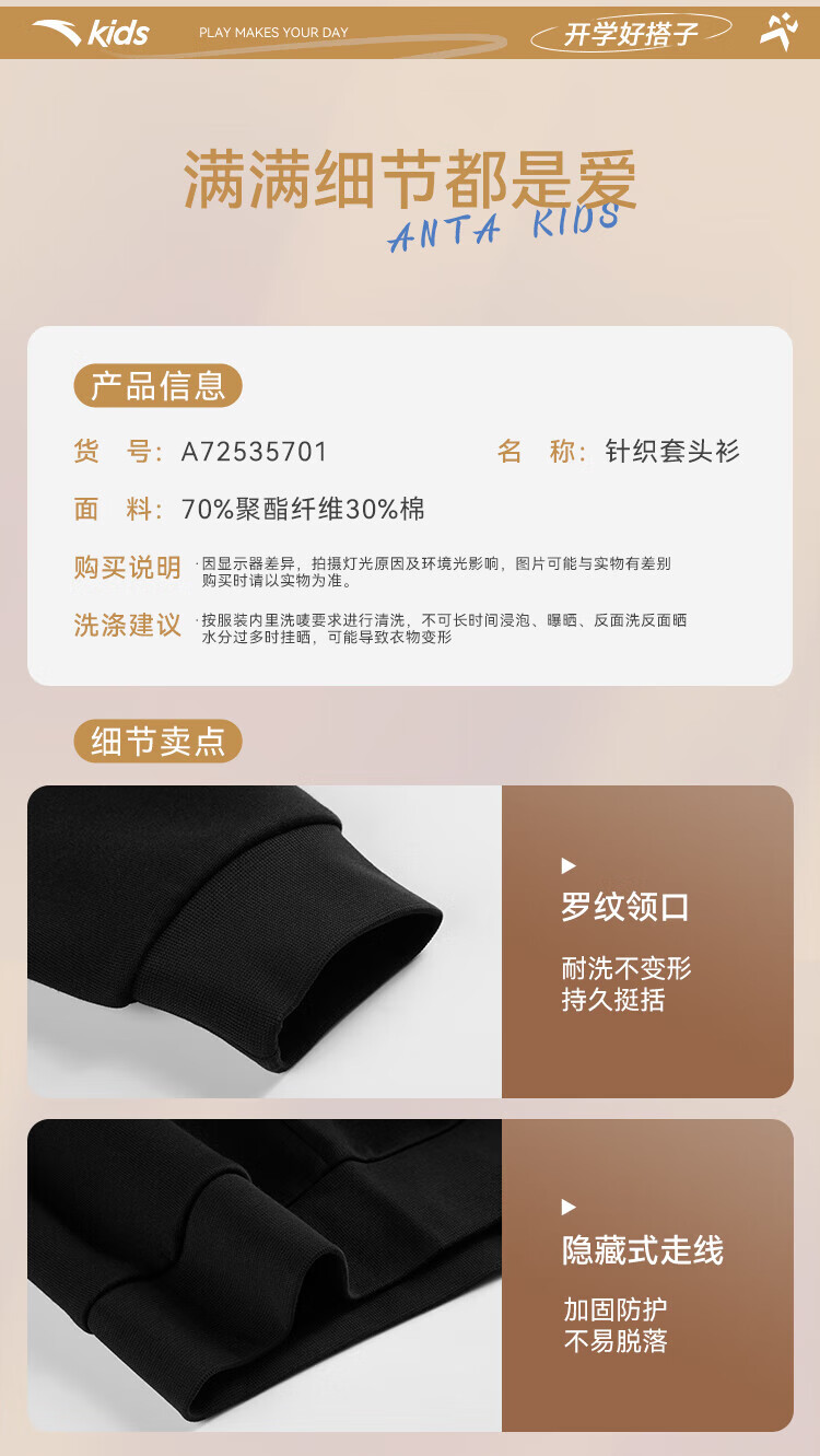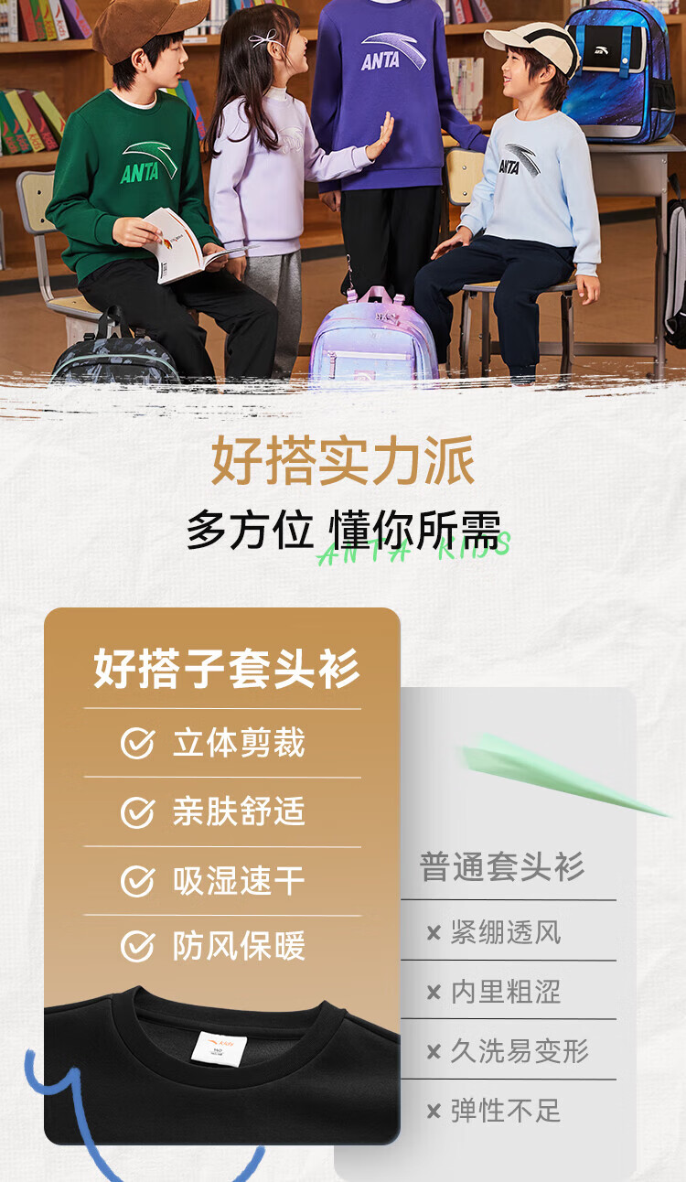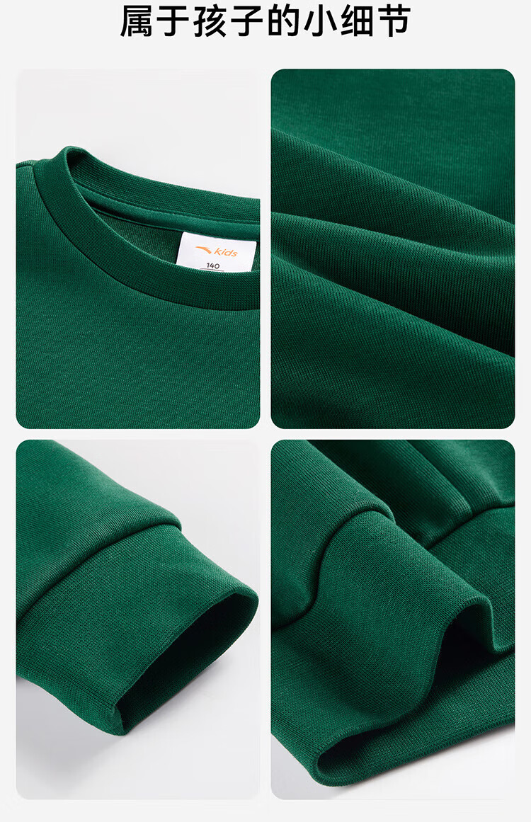 Anta children's fleece sweatshirt for men and women, middle and large children 25 autumn and winter new style youth loose cotton skin-friendly long-sleeved top black early autumn hot sale 160 cm
