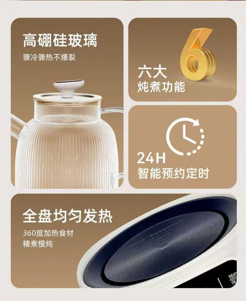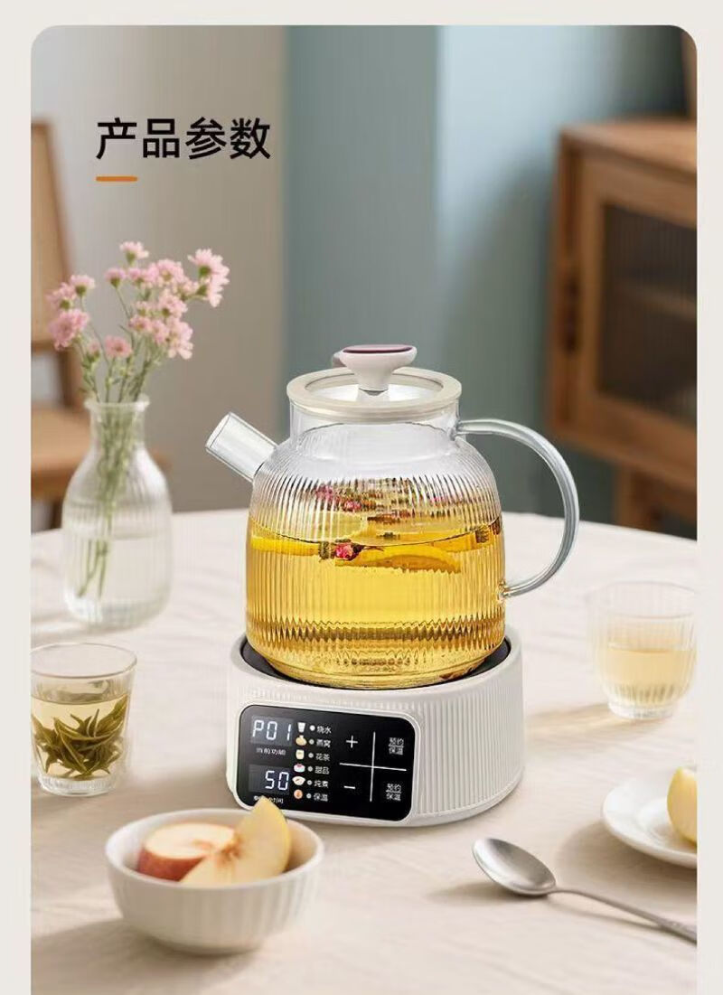Shenhua German quality health-preserving pot all-glass tea kettle steaming tea split 0 glue tea boiler fully automatic intelligent tea boiler automatic constant temperature water supply adjustable Bright Moon White high borosilicate glass body 1.2L