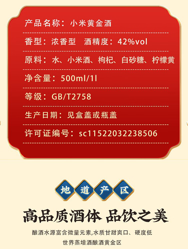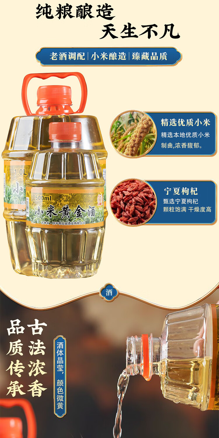 Ration alcohol selection: millet wine, Northeast golden wine, grain wine, pure grain barrel wine, 42 degrees, 1L, 5 barrels, affordable