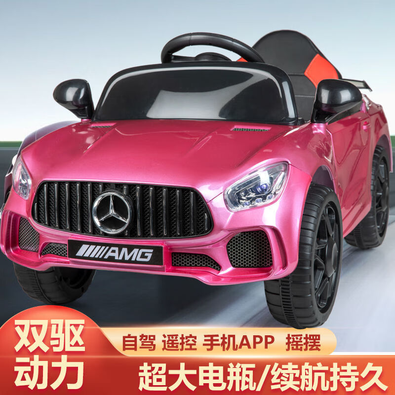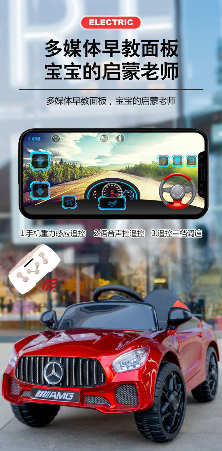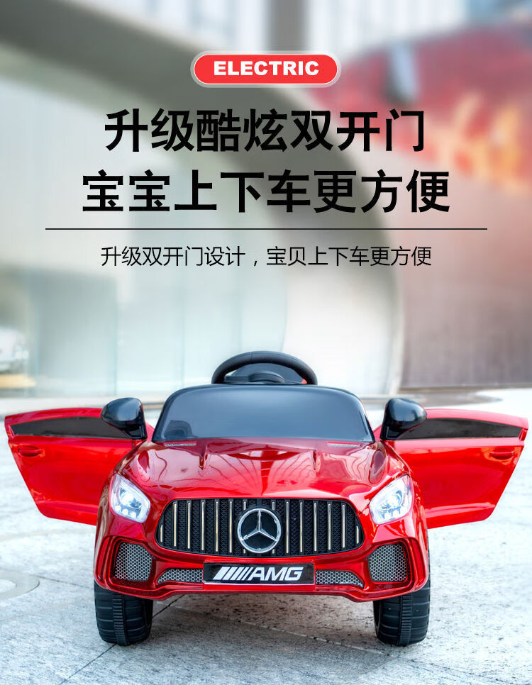Timminy Mercedes-Benz large baby electric car four-wheel remote control can sit on children off-road stroller baby toy car can sit on people Black super + full function 9 hours of play leather seat / lithium battery extra large body + double doors