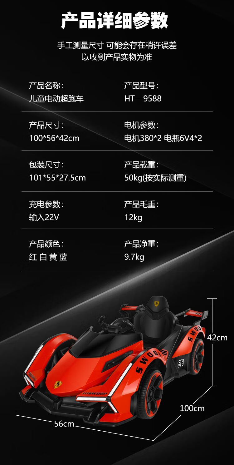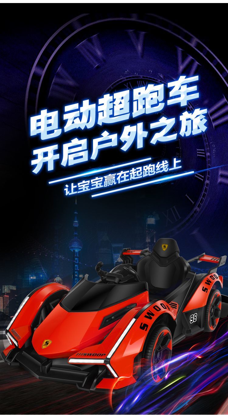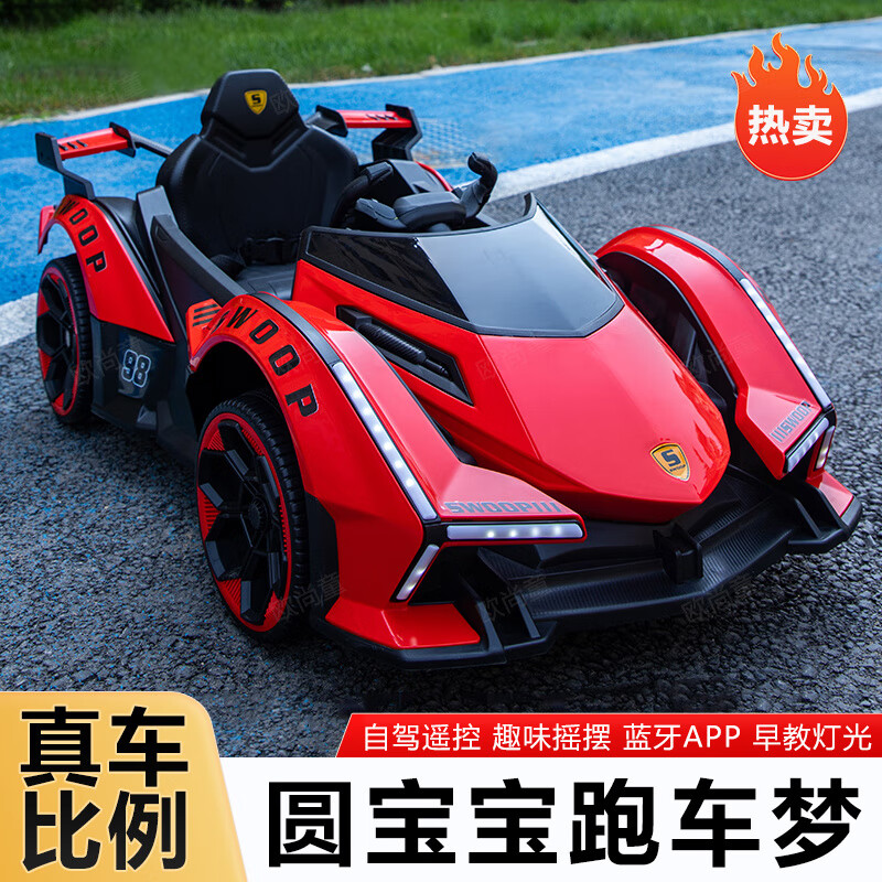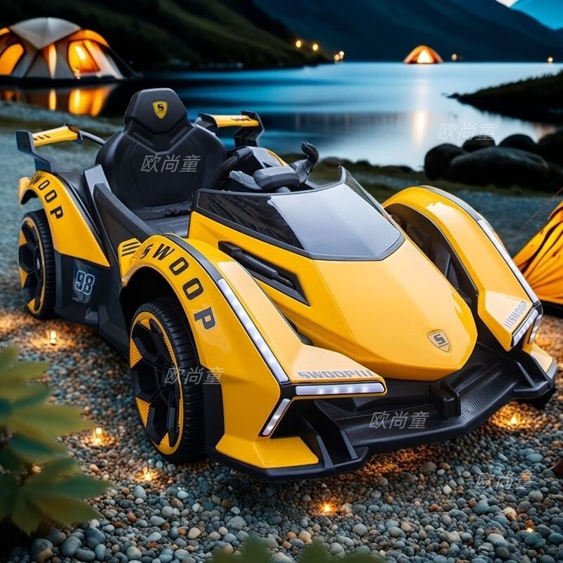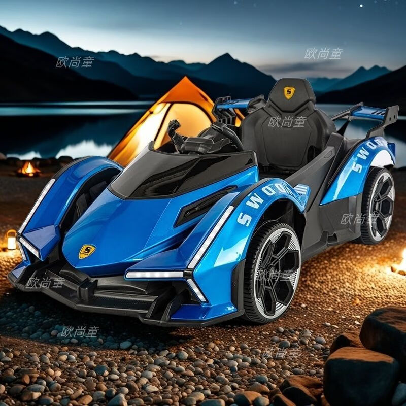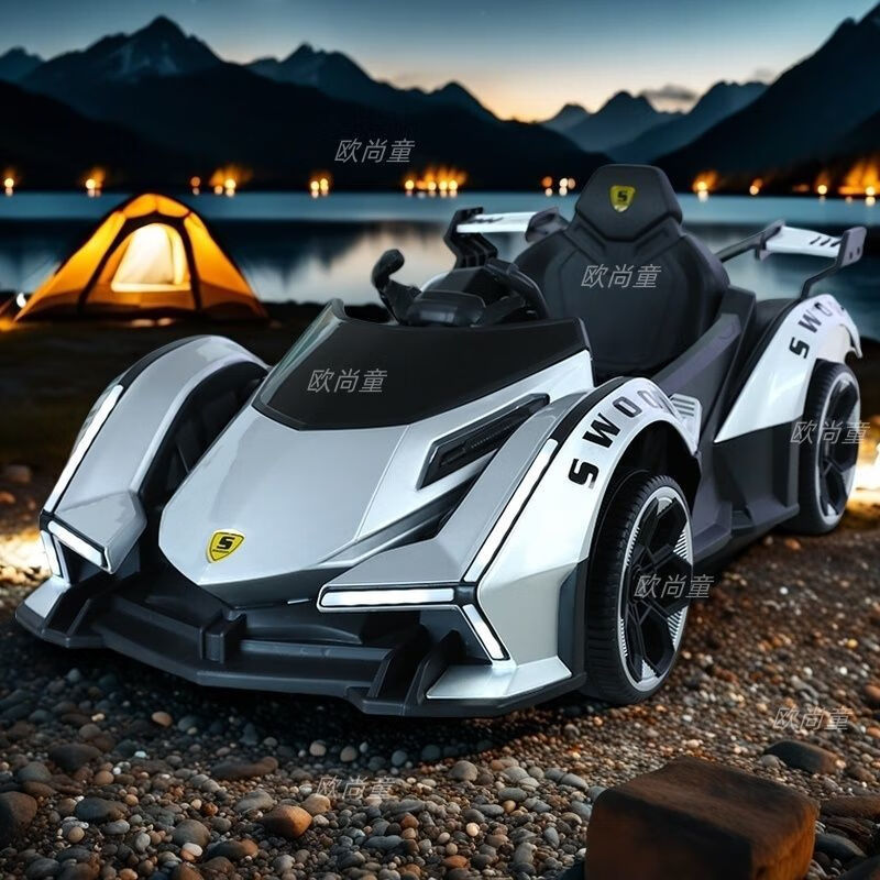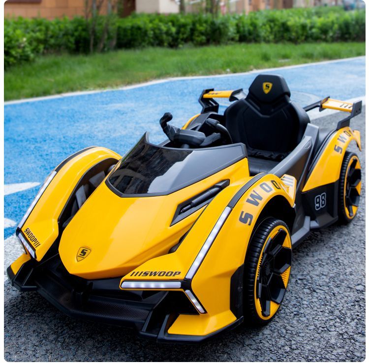 Timminy's new children's electric car, four-wheel car, remote control toy car, a child can sit on a large baby stroller, rechargeable, stunning appearance (send according to Specifications), sliding model, no battery