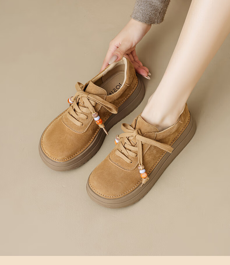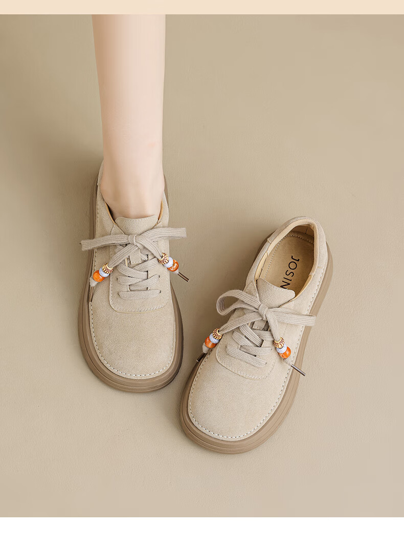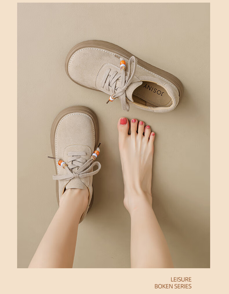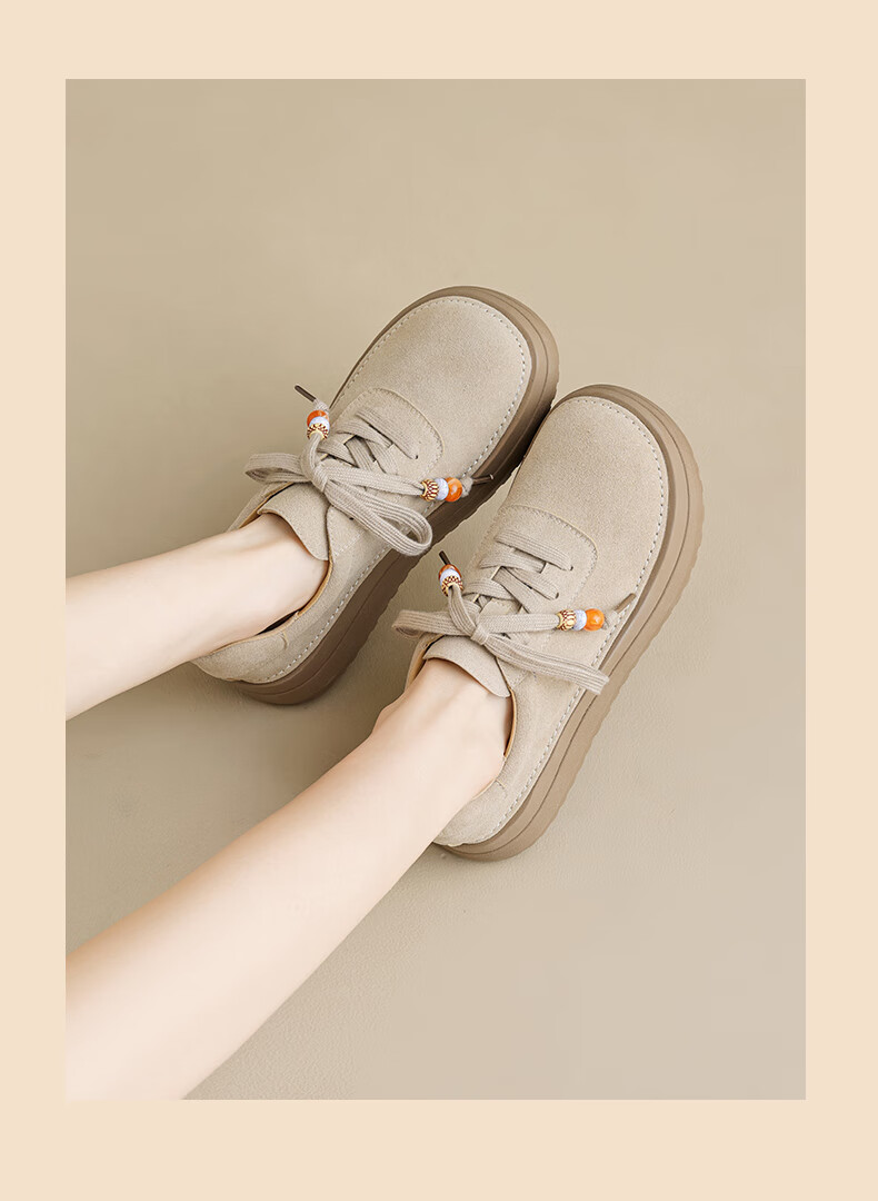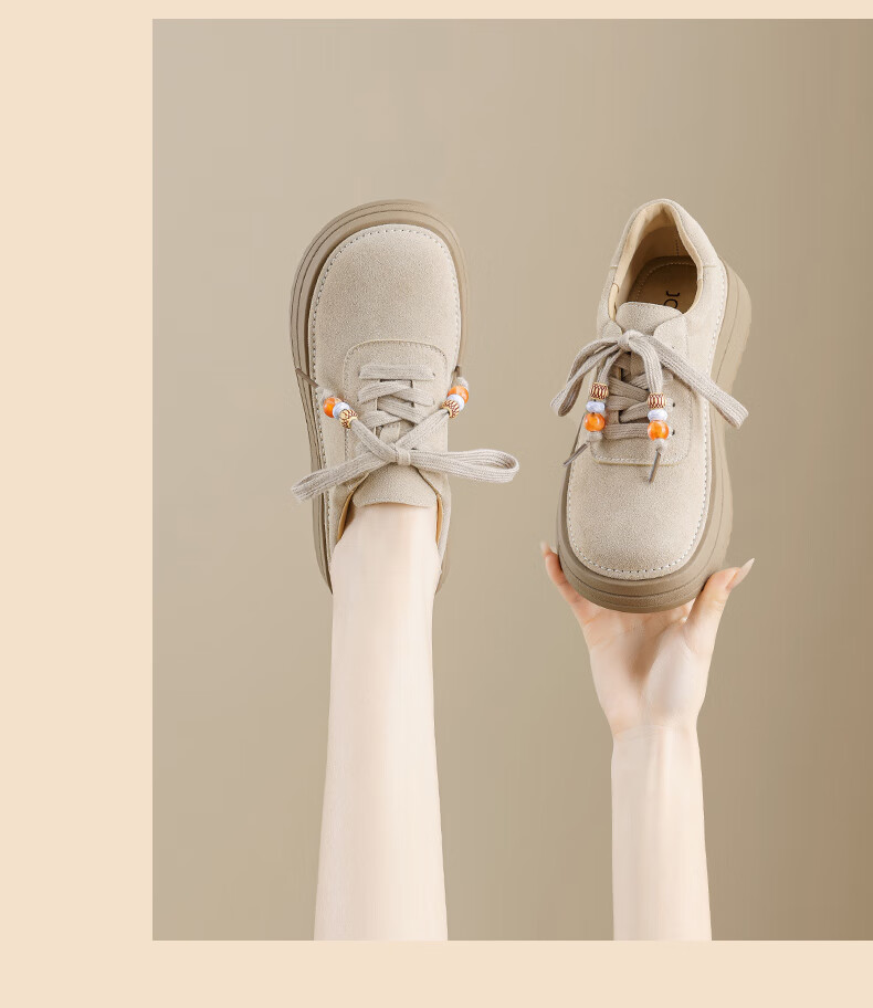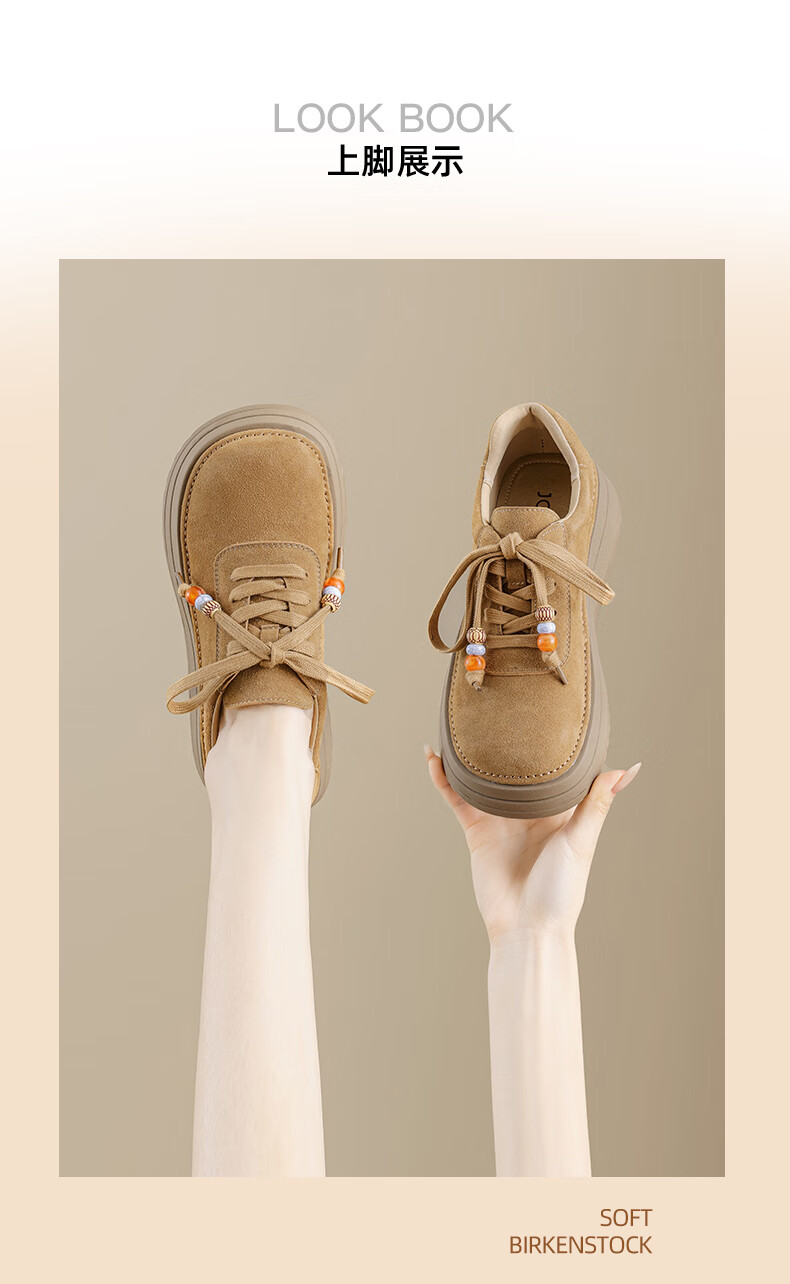 Zhuoshini thick-soled Birkenstock shoes for women 2026 new spring women's shoes versatile retro casual shoes British style lace-up small leather shoes brown 38