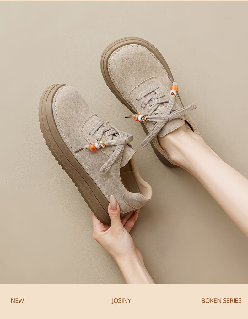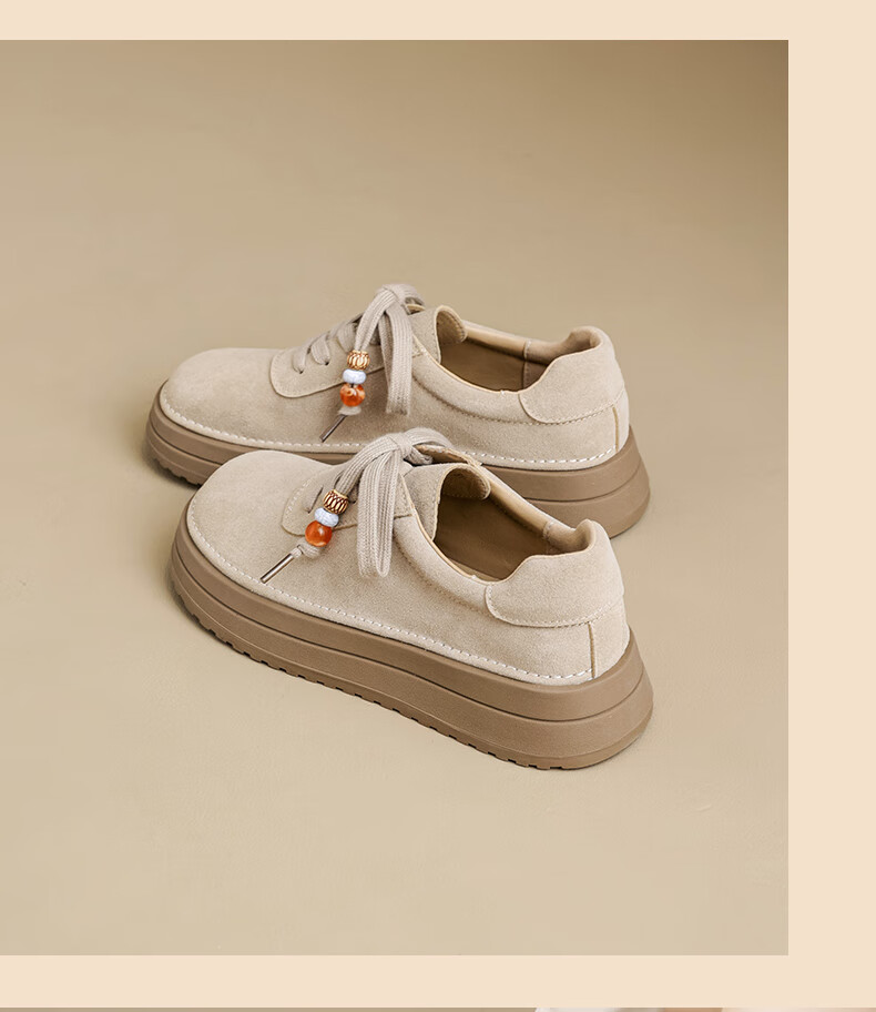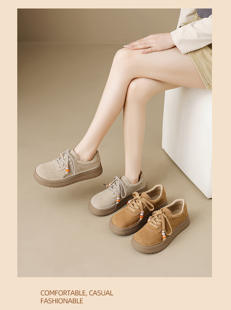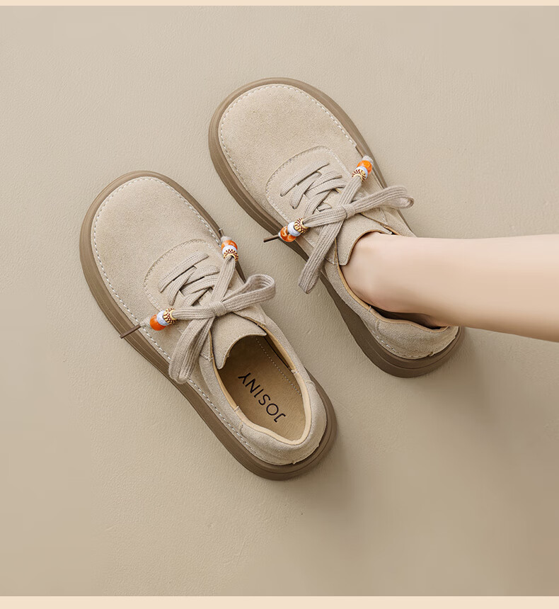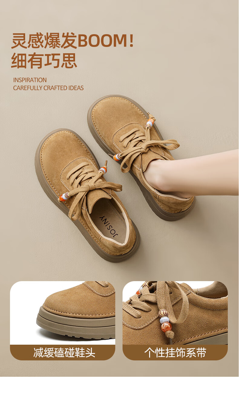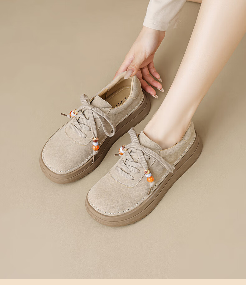 Zhuoshini thick-soled Birkenstock shoes for women 2026 new spring women's shoes versatile retro casual shoes British style lace-up small leather shoes brown 38