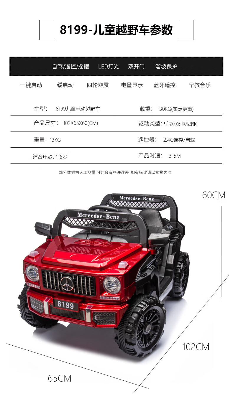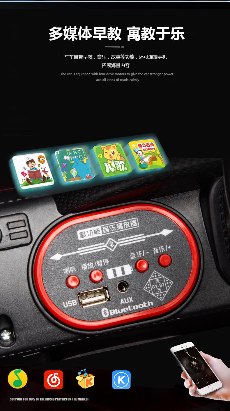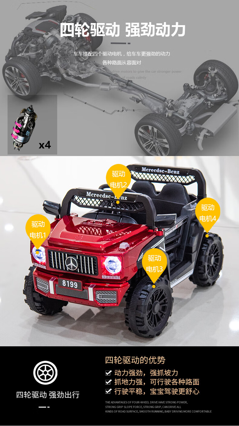 ZOCO children's electric car four-wheel remote control off-road car male and female baby child toy car can sit on a person charging swing car single drive Chinese red/self-driving + music + small battery