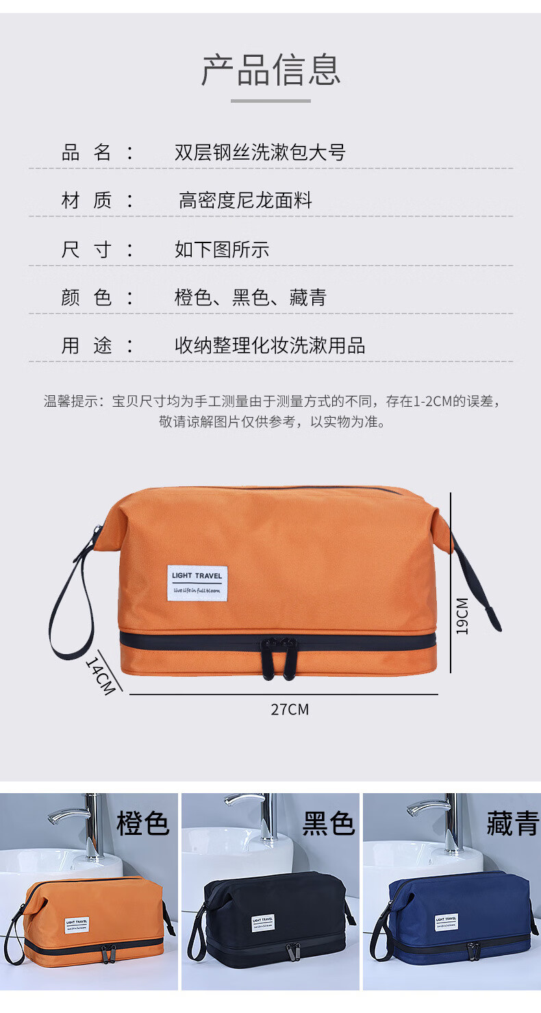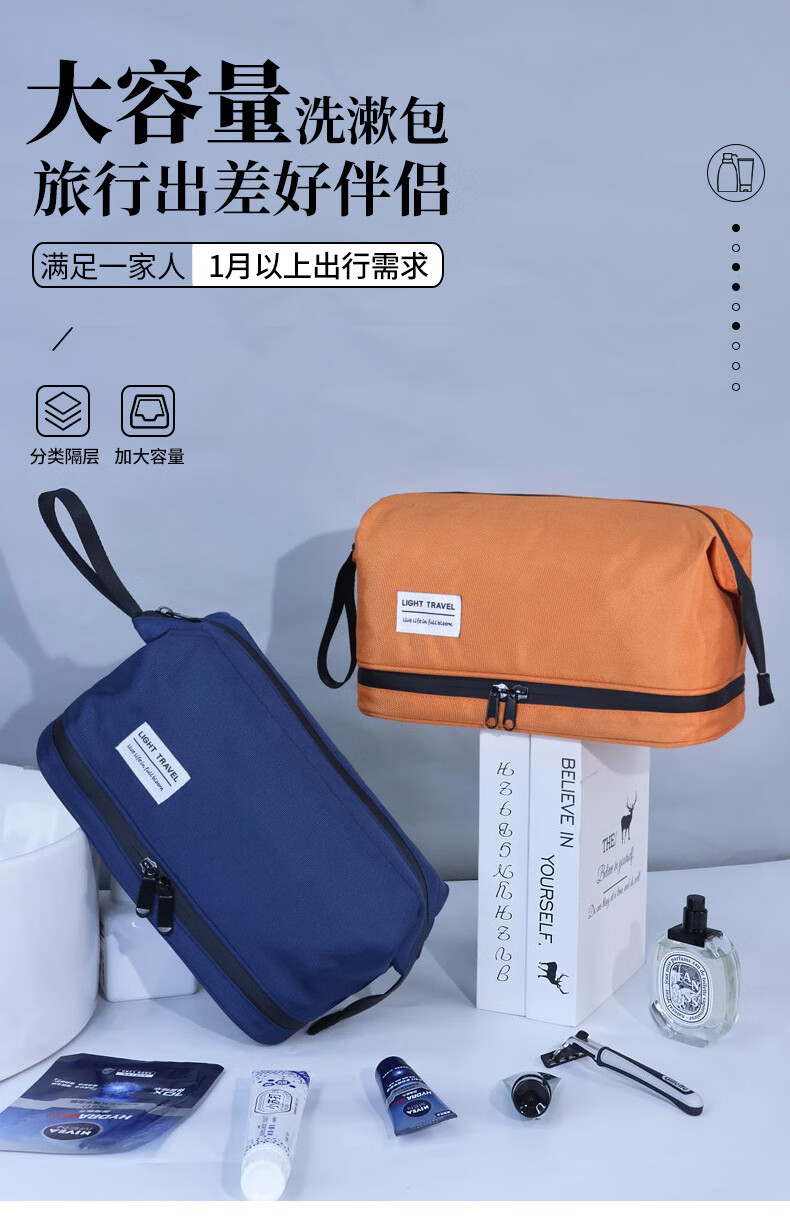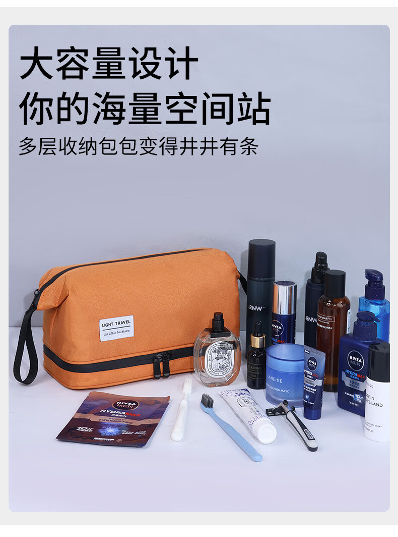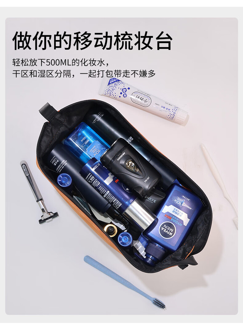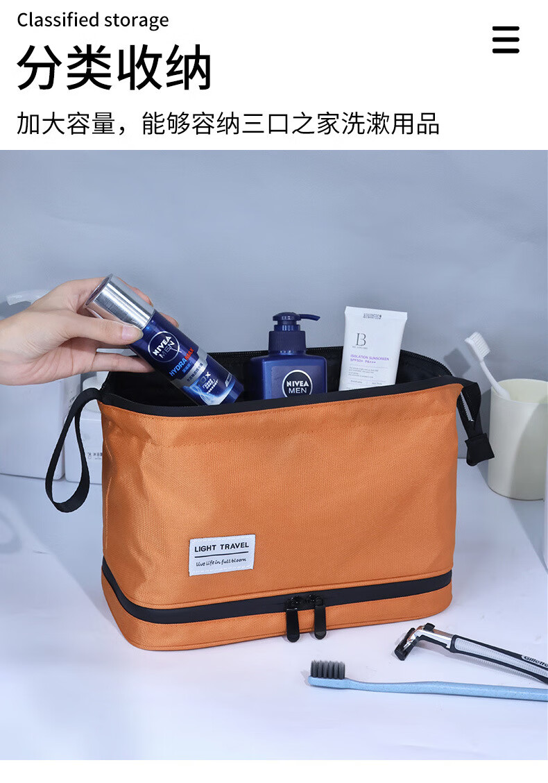 Shantou Lincun Dry and Wet Separated Men's Toiletries Bag for Business Travel Portable Cosmetic Storage Bag Women's High-Look Cosmetic Bag Dry and Wet Separated Extra Large Size - Classic Black