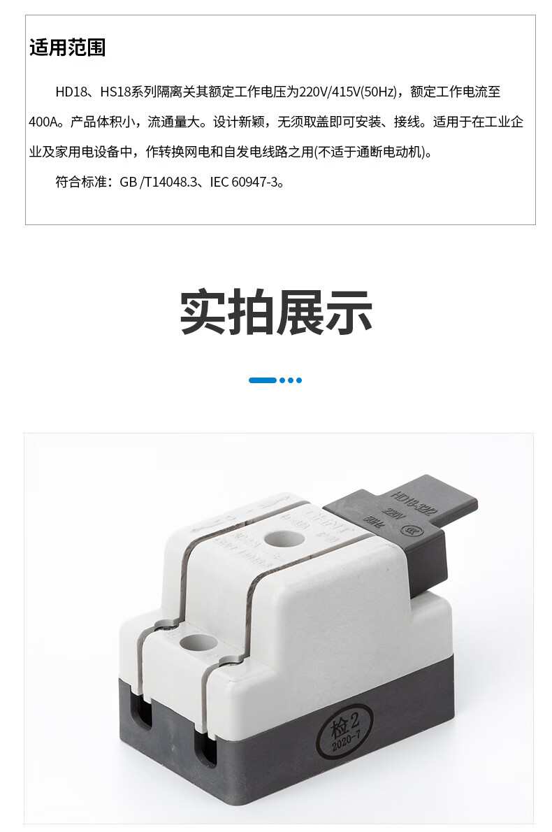 Chint HD/HS18-32A/63/100/200/400A open two- and three-phase knife isolation switch one-way HD18-32/2