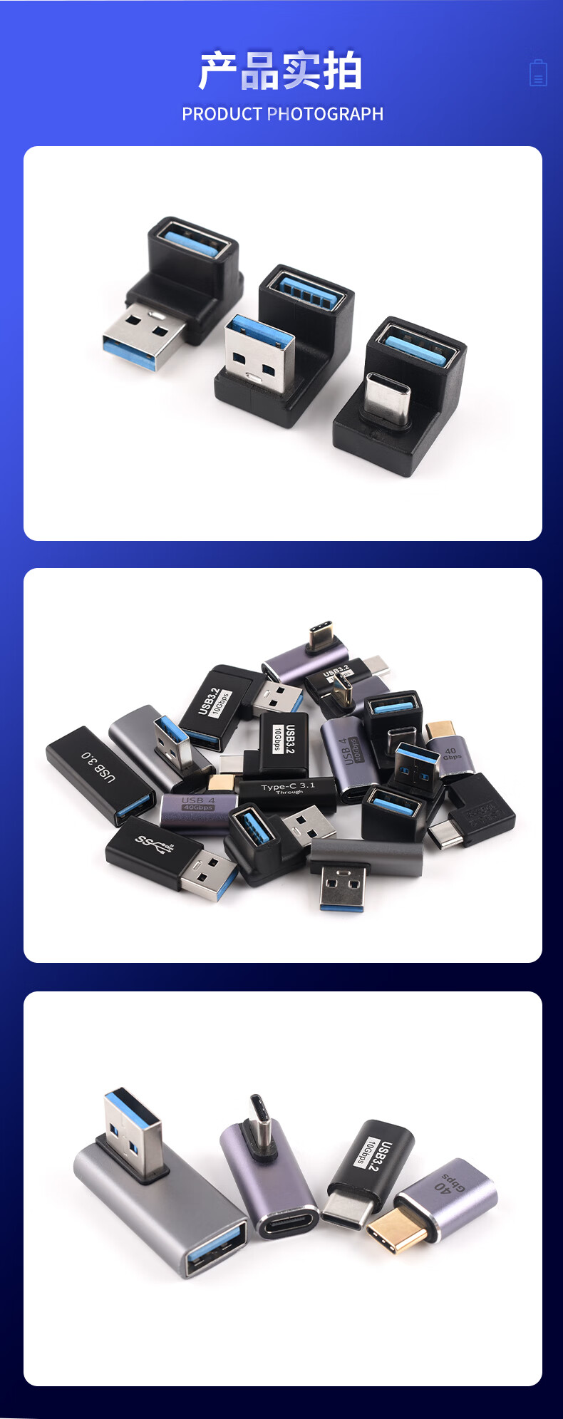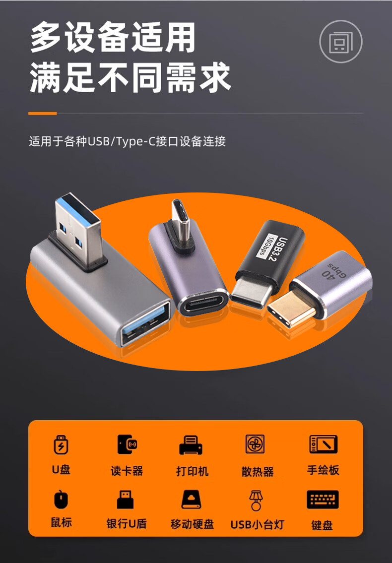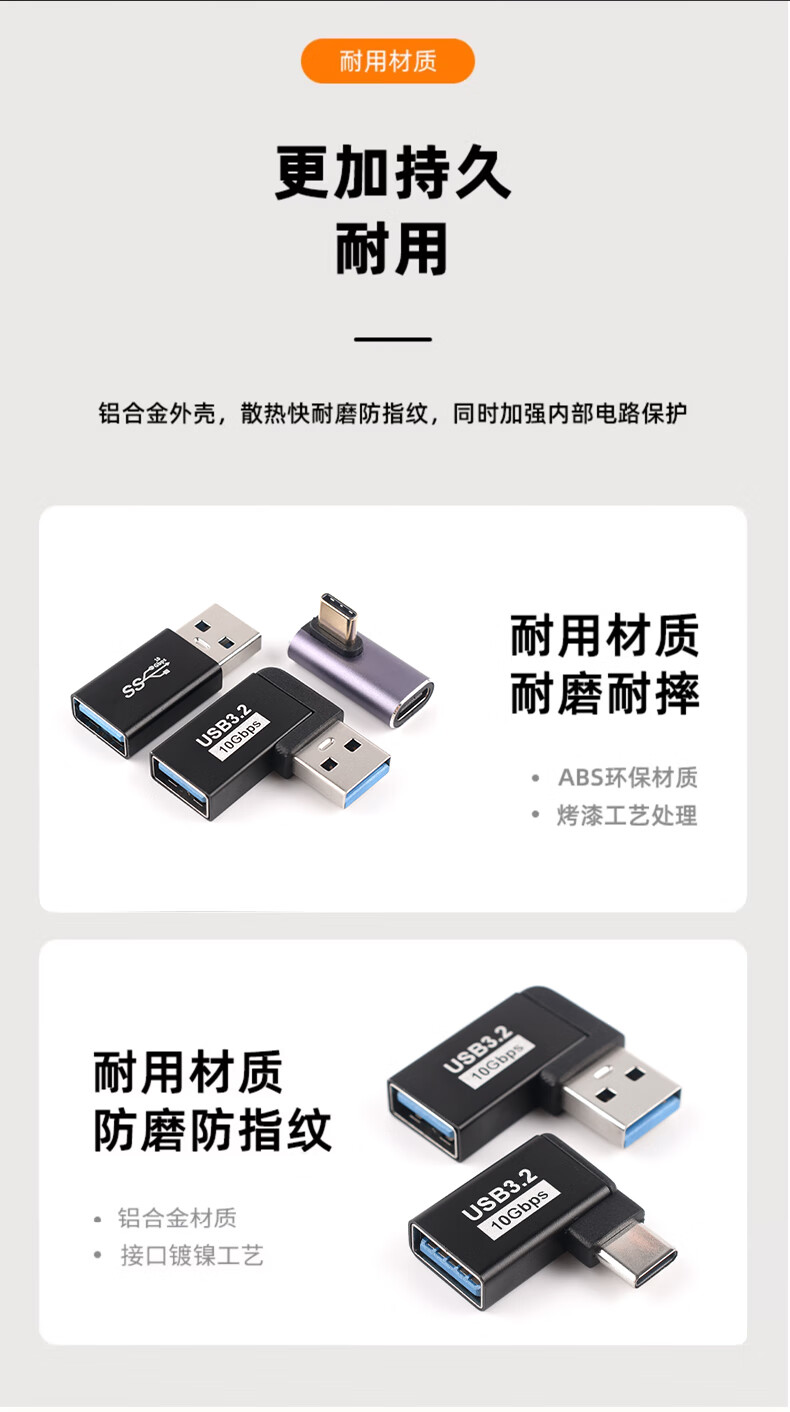 USB Adapter Typec Male to Female Mobile Phone Tablet 40G Thunderbolt 3/4 Data Cable Extended 90 Degree L-Shaped U Type-C Male to USB3.2 Female Elbow 10G No Specifications