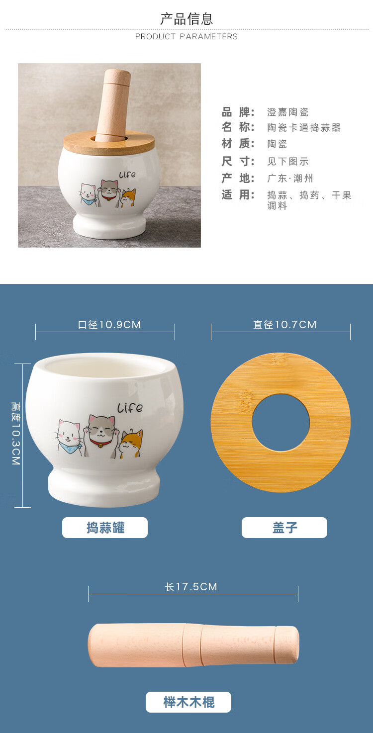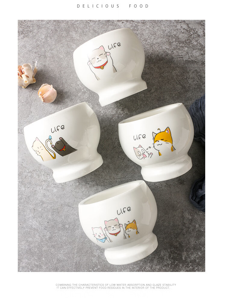 Cartoon cat ceramic jar garlic artifact mortar garlic household garlic masher grinder masher medicine jar garlic jar cup B style cartoon cat 600ml