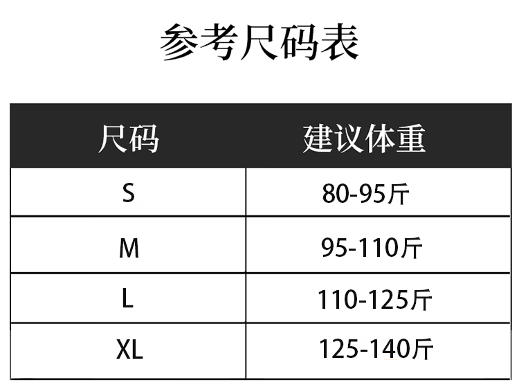 China (cm) 165 / 88-90 170 / 96-98 175 / 108-110 180 / 118-122 185 / 126-130