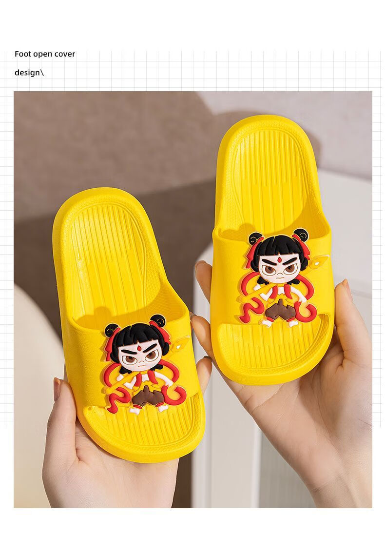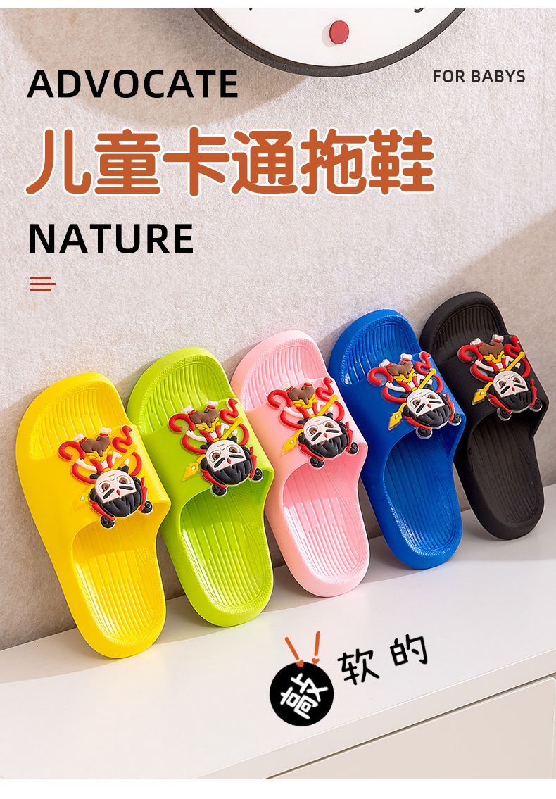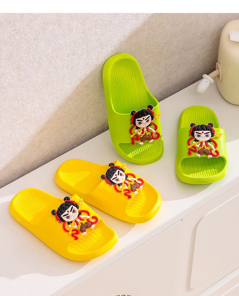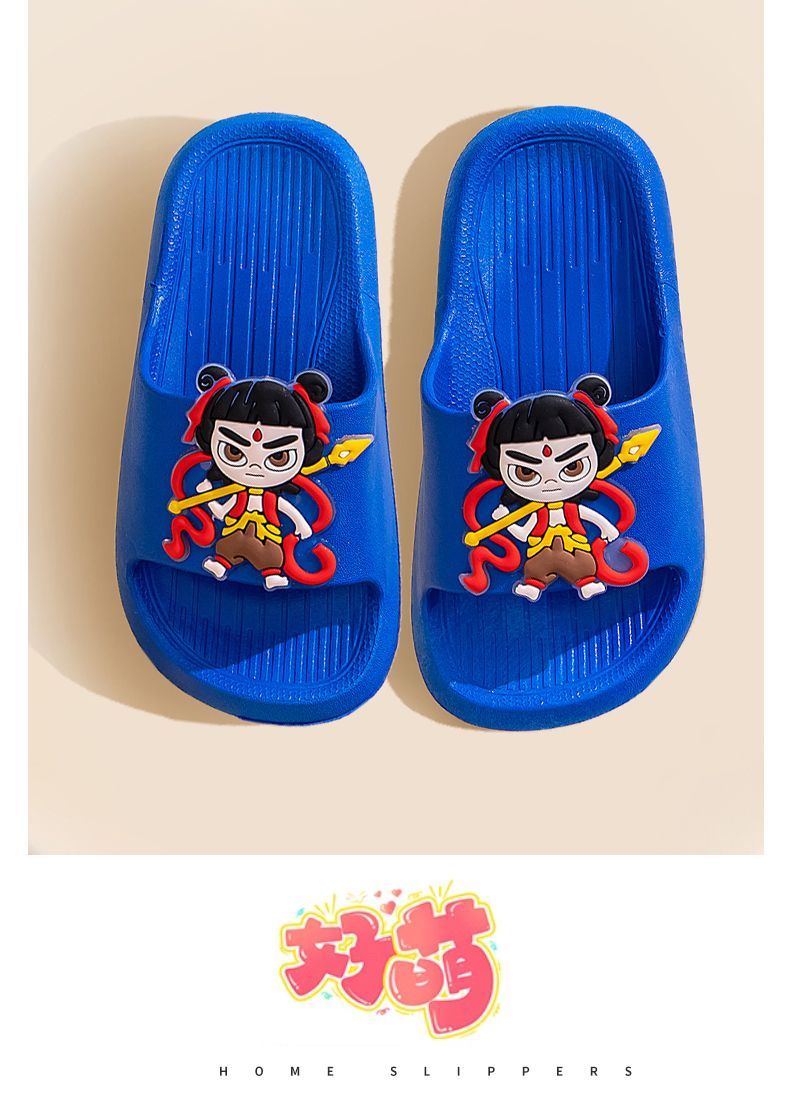 New Nezha children's slippers for girls summer boys non-slip cartoon indoor bathing home bathroom soft bottom baby blue-Nezha 33-34 size 220 shoe inner length 21.5cm