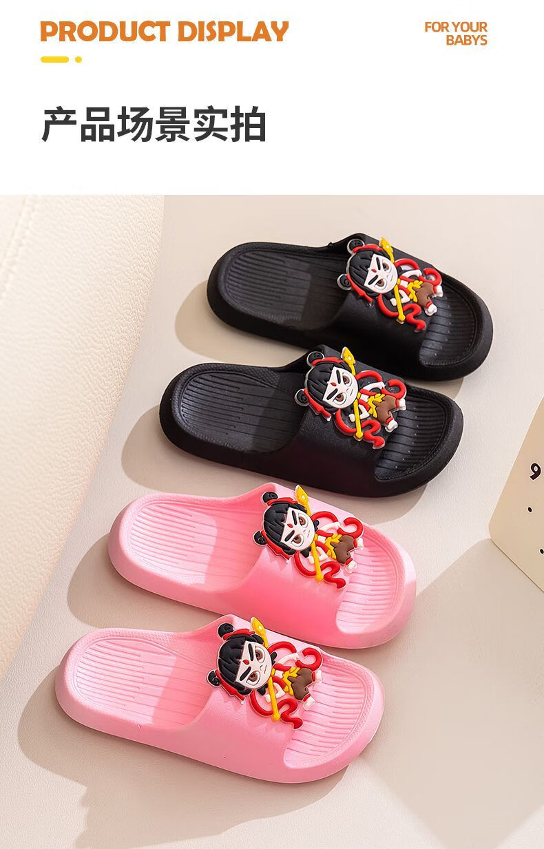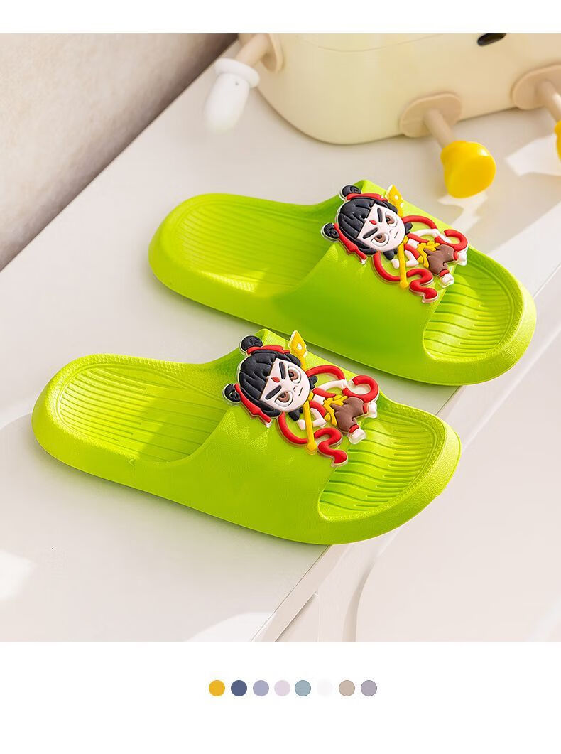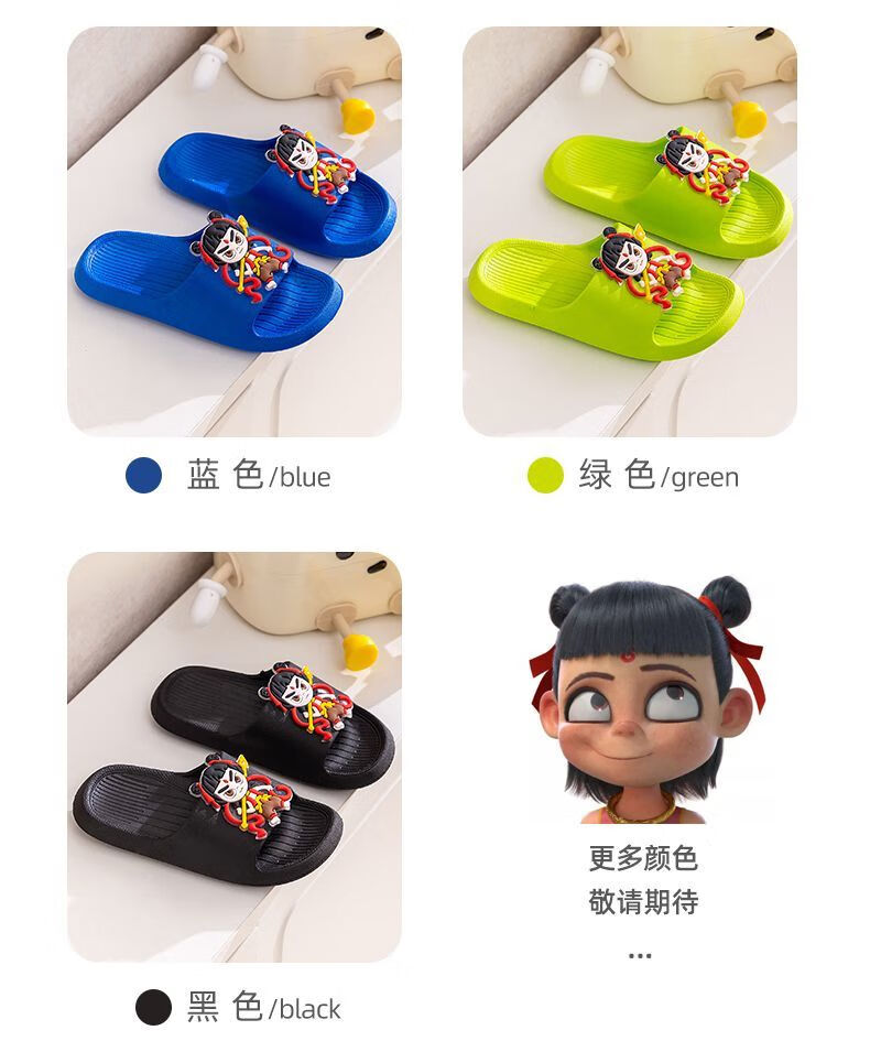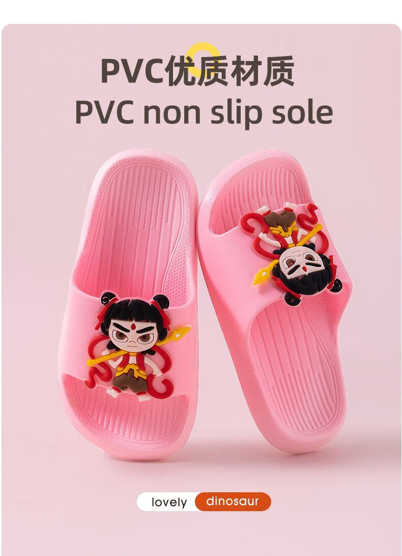 New Nezha children's slippers for girls summer boys non-slip cartoon indoor bathing home bathroom soft bottom baby blue-Nezha 33-34 size 220 shoe inner length 21.5cm