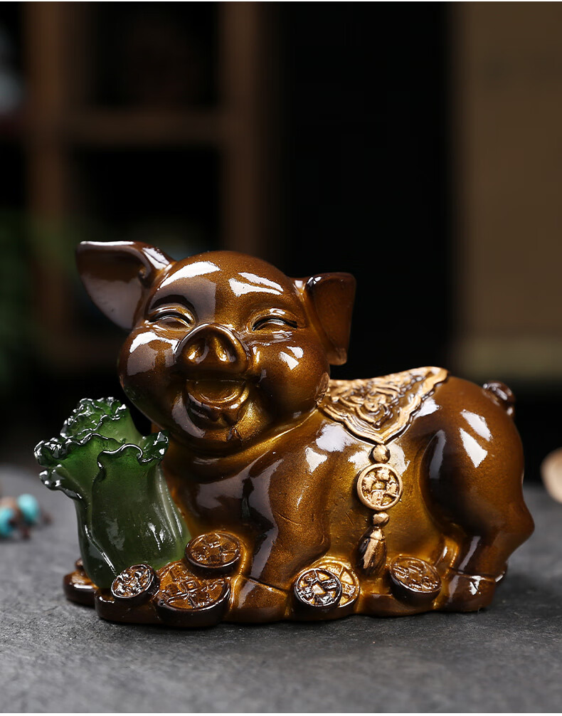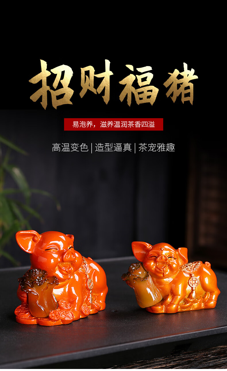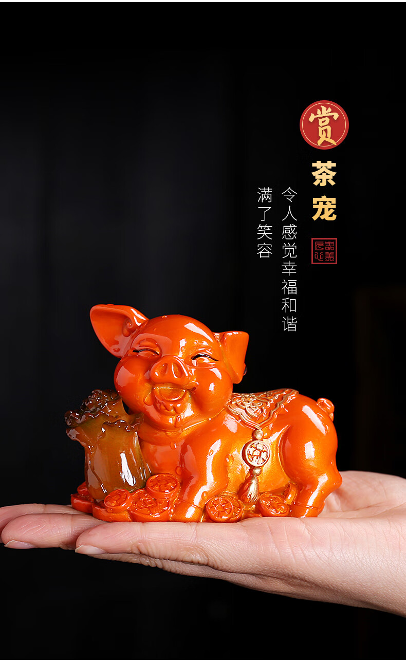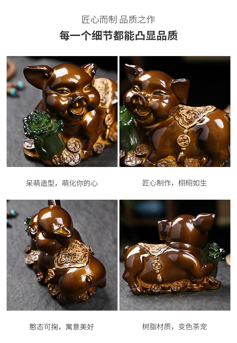 Yunhua Color Changing Tea Pet Lucky Pig Pig Arch Cabbage Tea Table Tea Table Play Golden Pig Fortune Creative Boutique Cute Pig Lucky Pig (Red Turns Gold) Small