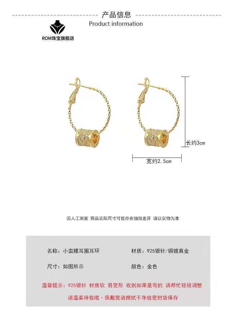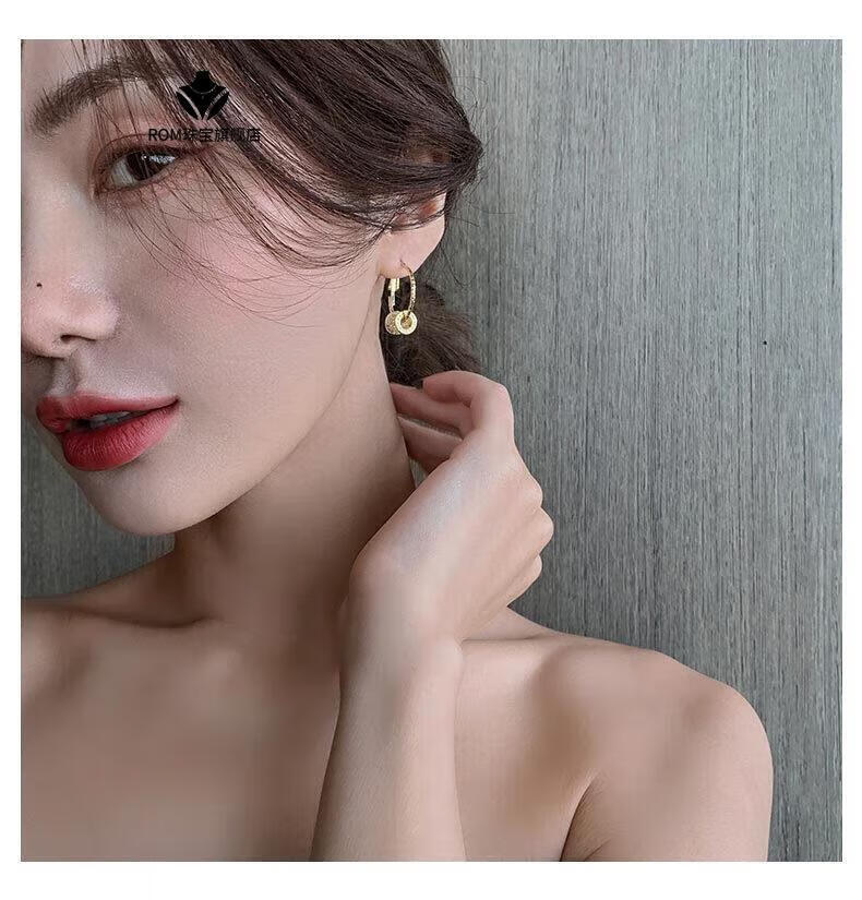 MHFDO old Phoenix quality 99918k gold earrings fashionable 18K gold small waist 925 silver earrings for women 20 gold earrings a pair of old Fengxiang quality