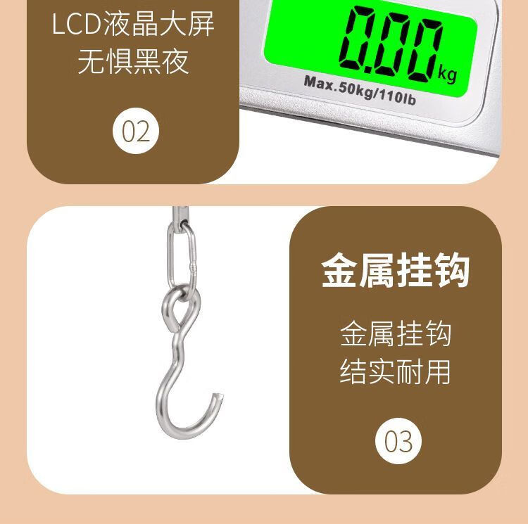 Goheng Electronic Portable Scale Crane Scale Hook Scale Portable Luggage Scale Portable Electronic Scale Courier Special Hook Scale Express Scale Home Travel 100 Jin Jin is equal to 0.5 kg Weighable Stainless Steel Hook Rechargeable Model