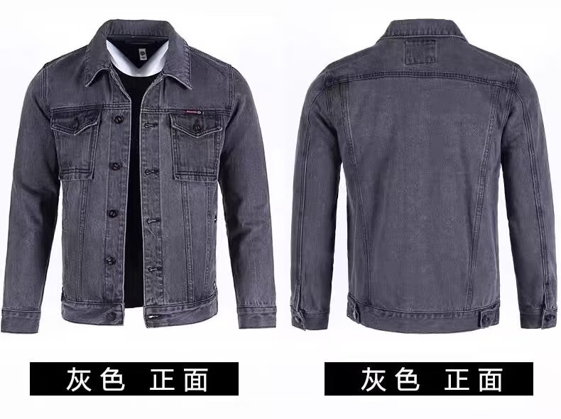 Work jacket denim work clothes suit for men in autumn and winter welding site wear-resistant and durable labor insurance large size jacket 8007 gray XL (recommended 120-130 Jin Jin equals 0.5 kg)