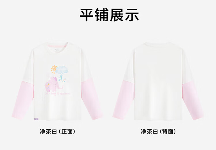 ANTA Children's T-shirt Girls' Clothing 2025 Autumn New Breathing Cotton Outdoor Girls Printed Long T Knitted Long-Sleeved Shirt Jingtu White-1 130
