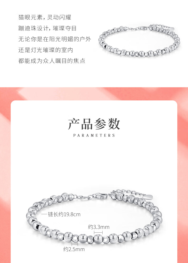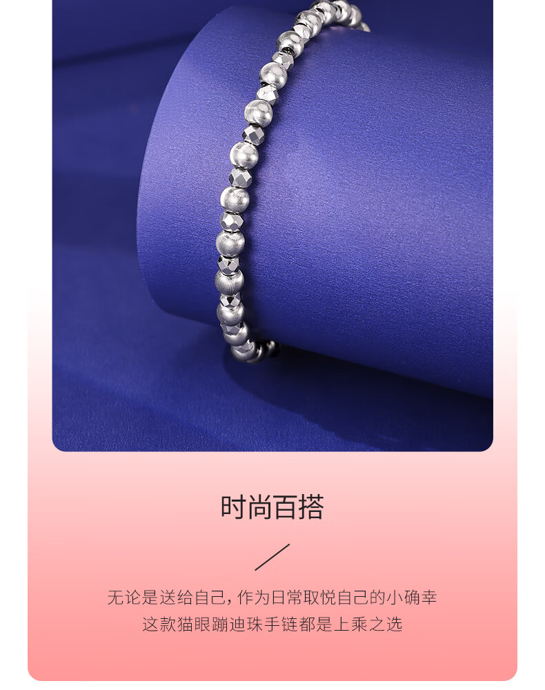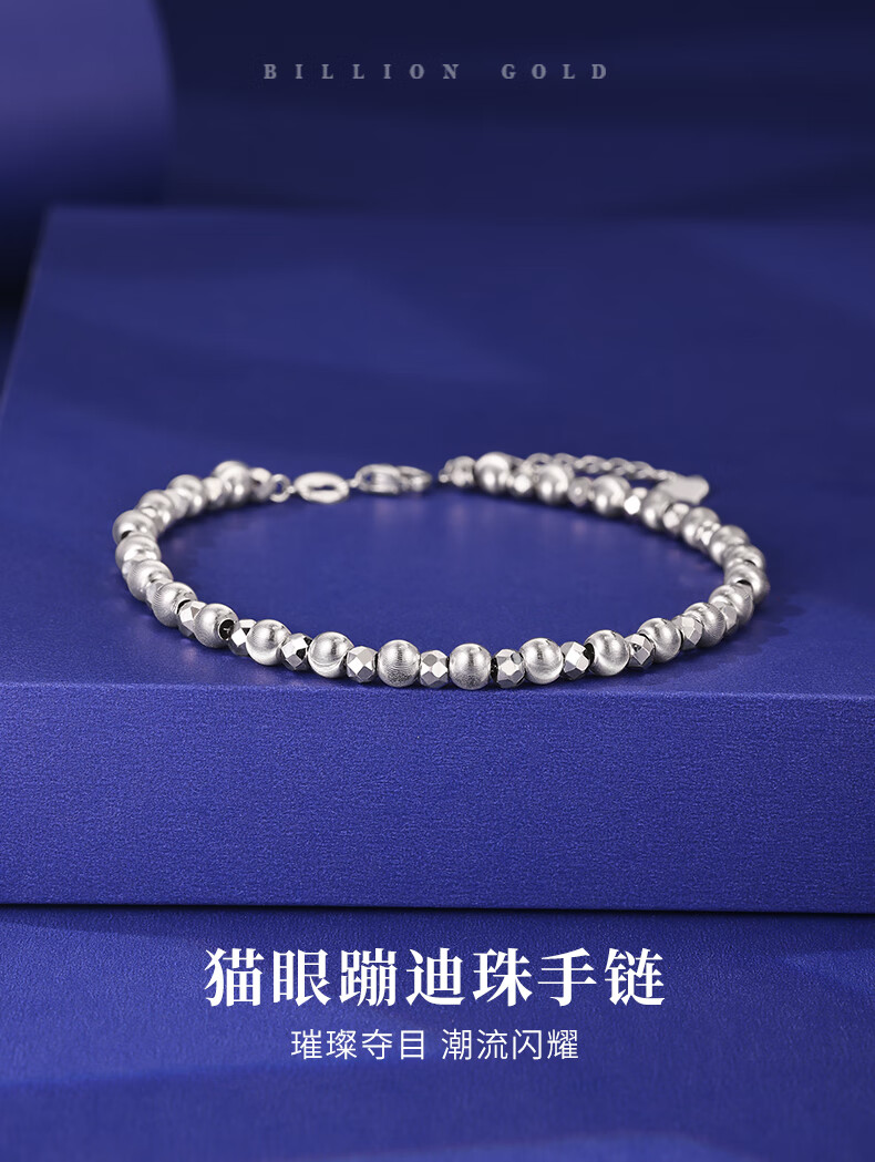 BOC Yijin PT950 Cat's Eye Dance Beads Platinum Bracelet for Women Platinum Bracelet Birthday and Valentine's Day Gift for Girlfriend and Wife Cat's Eye Dance Beads Bracelet Gold Weight Approximately 8.1g