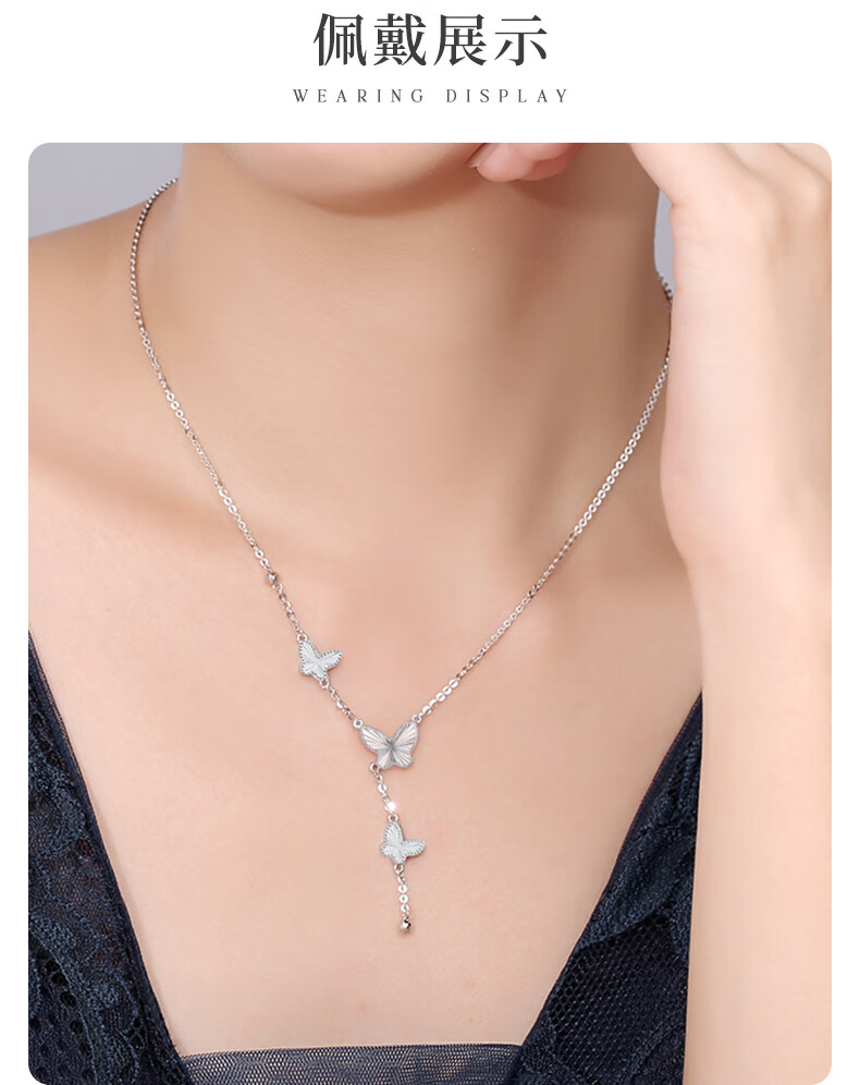 BOC Yijin PT950 laser butterfly tassel platinum necklace for women, platinum pendant jewelry, birthday and Valentine's Day gift for girlfriend, laser butterfly tassel chain set, gold weight is about 5.8g