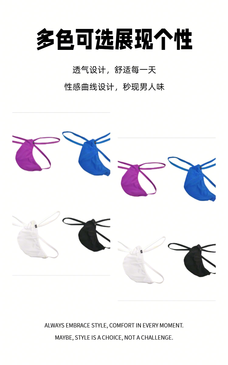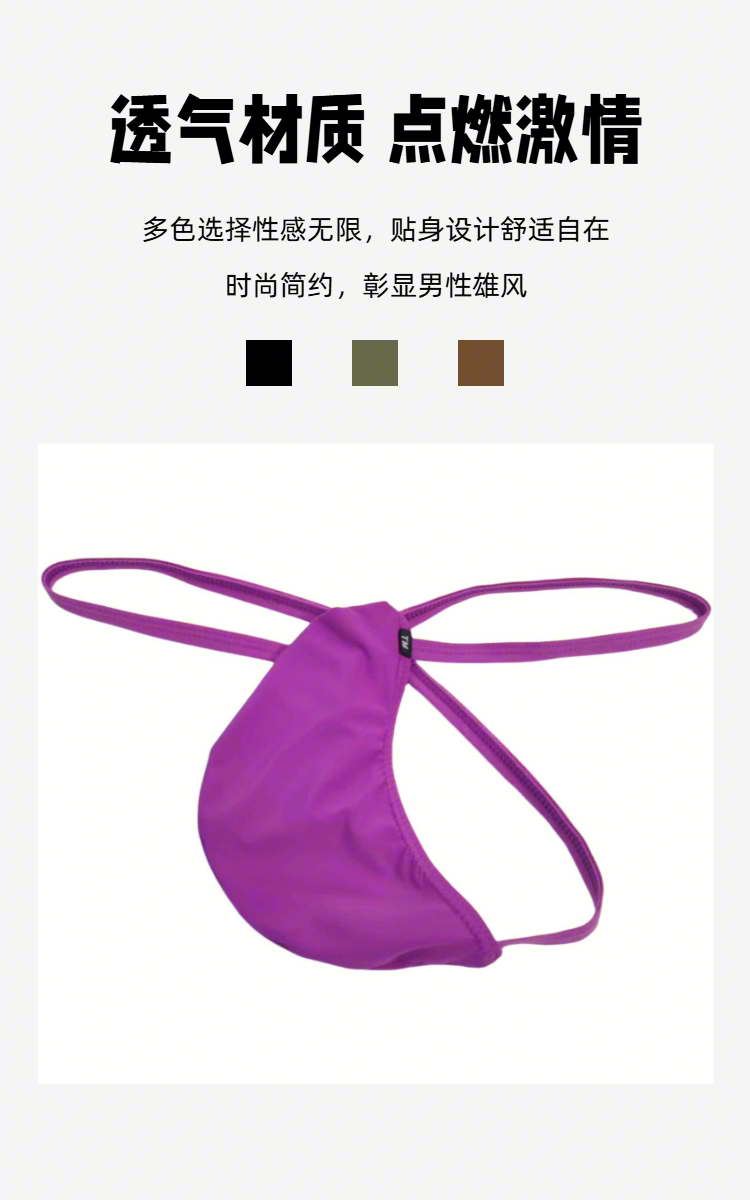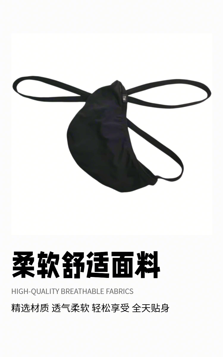 Men's T-string ice silk elastic U-shaped large bag JJ set men's T-string sexy breathable low-waist underwear T-pants without taking off black XL
