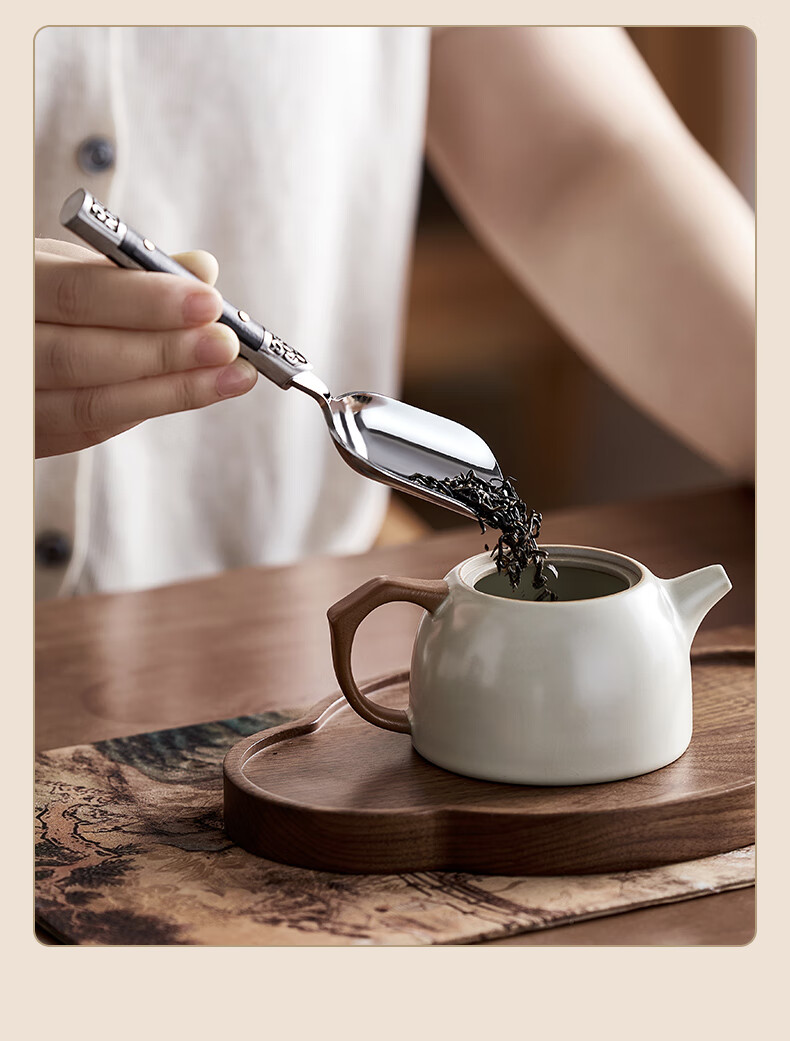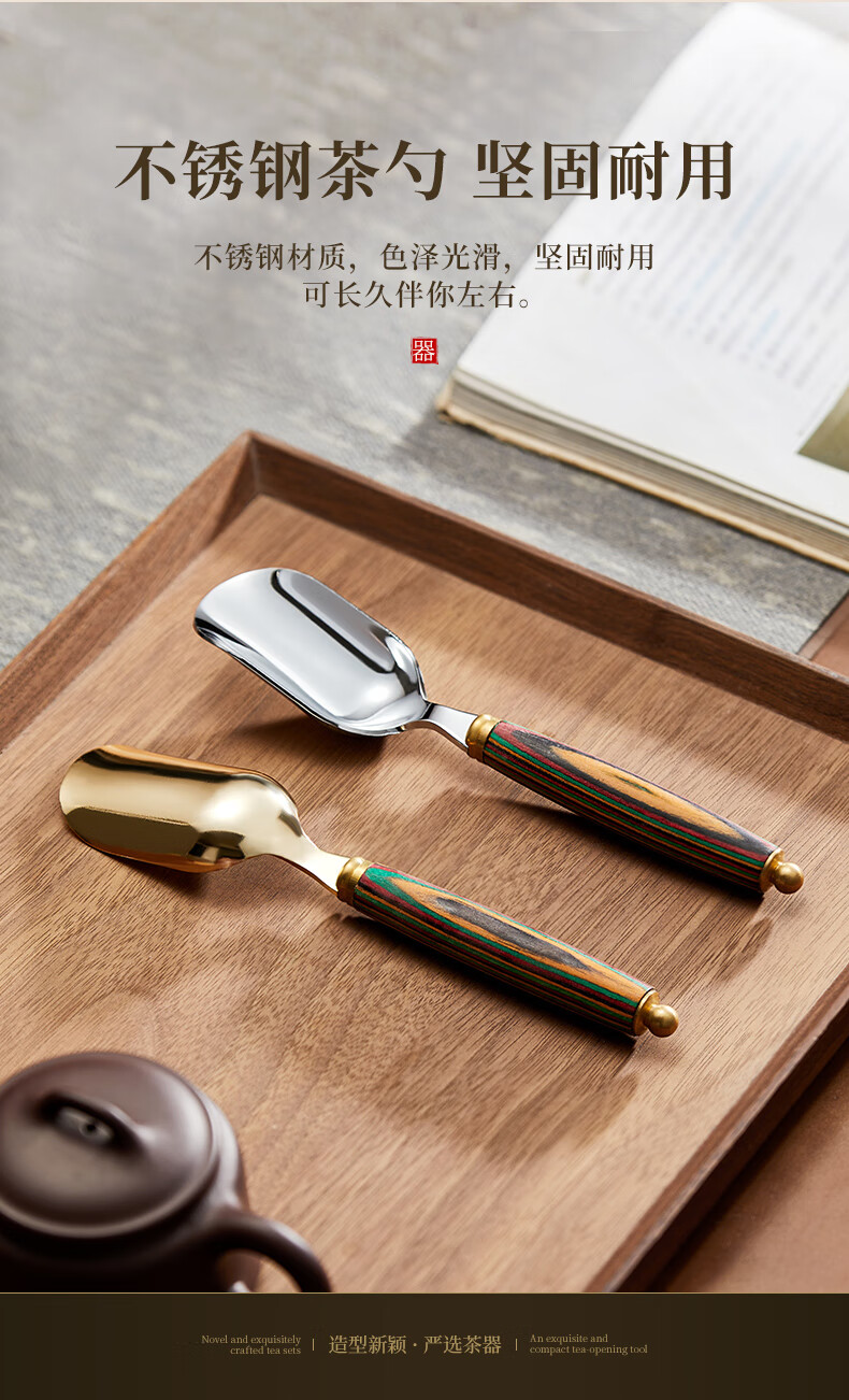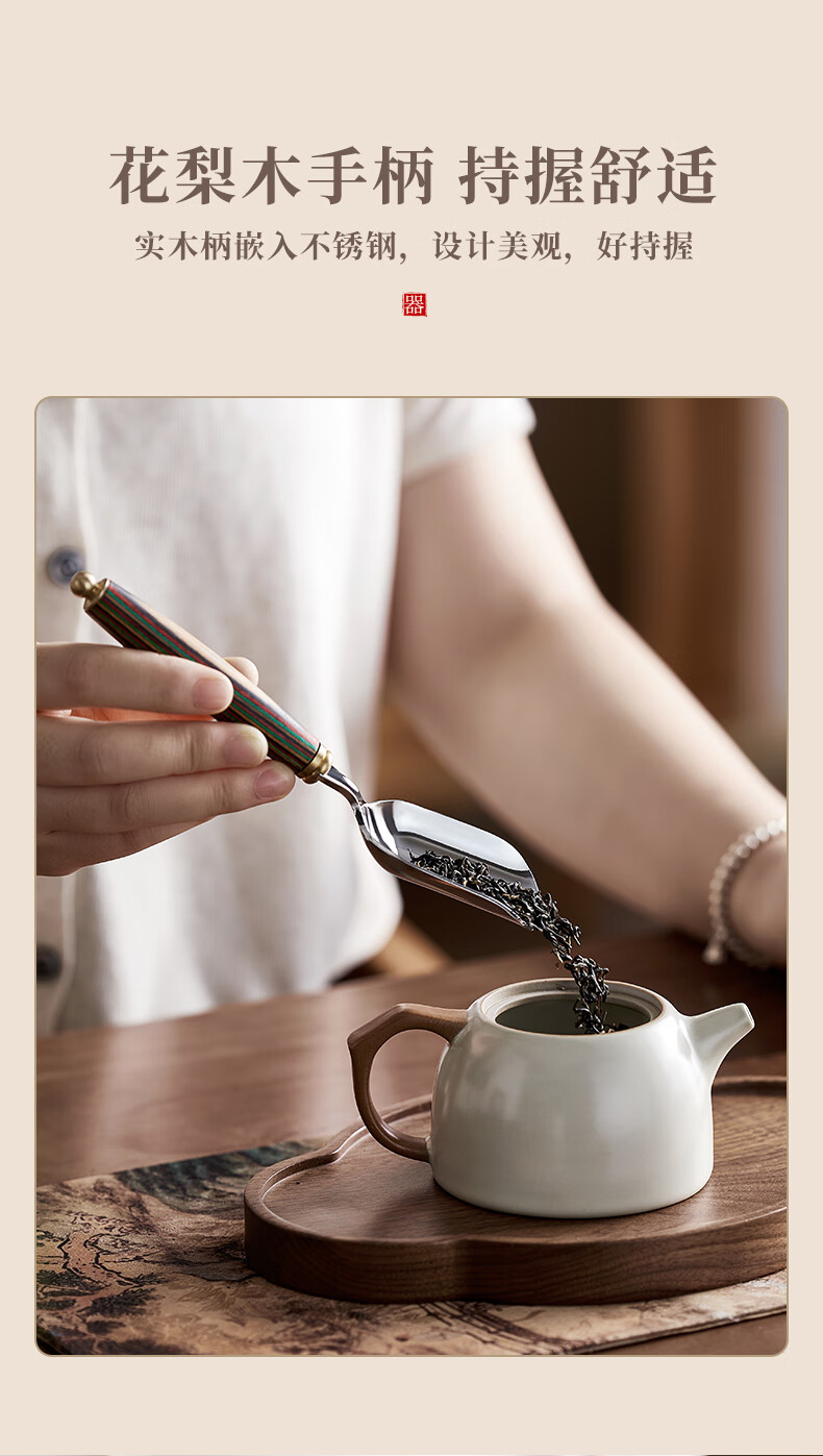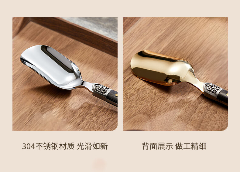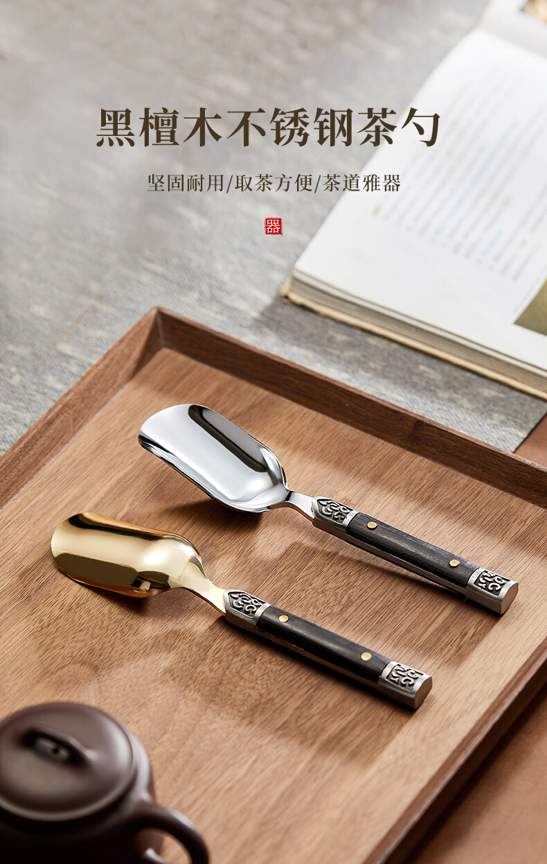 Yi Pot Tea Black Sandalwood Rosewood Solid Wood Tea Shovel Tea Spoon Single Retro High-end Tea Brewing Kung Fu Tea Set Tea Ceremony Six Gentlemen Accessories Flower Wood Tea Spoon-Titanium