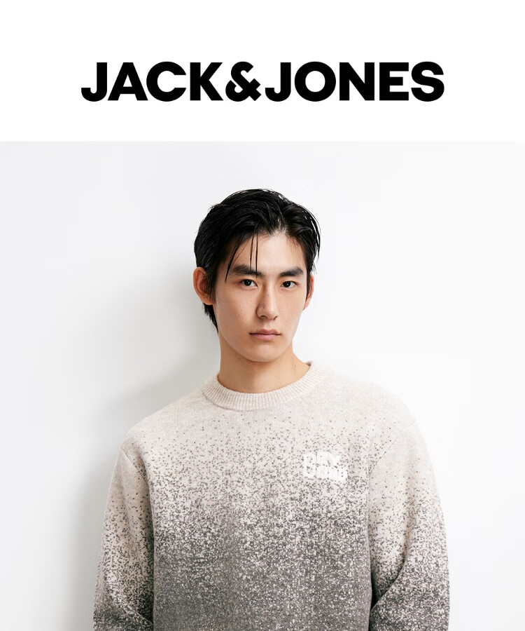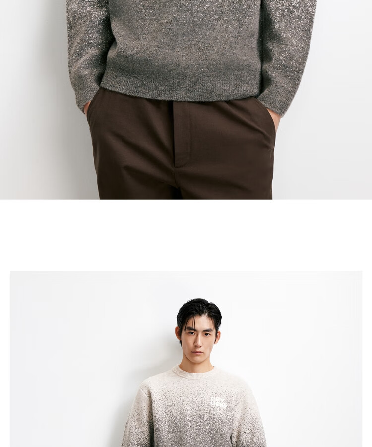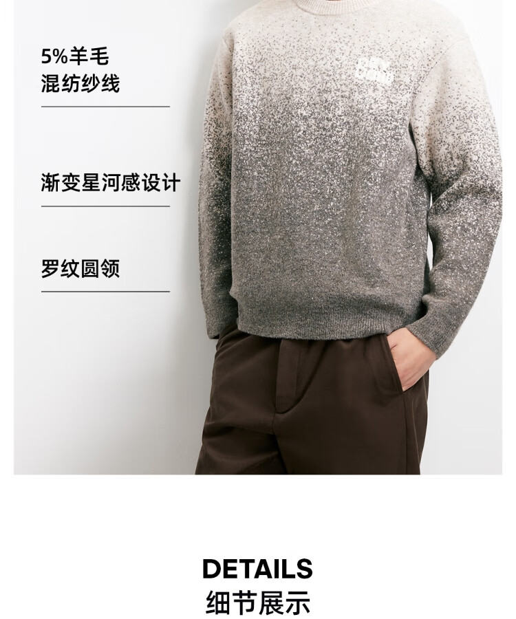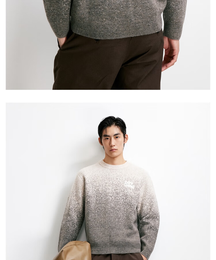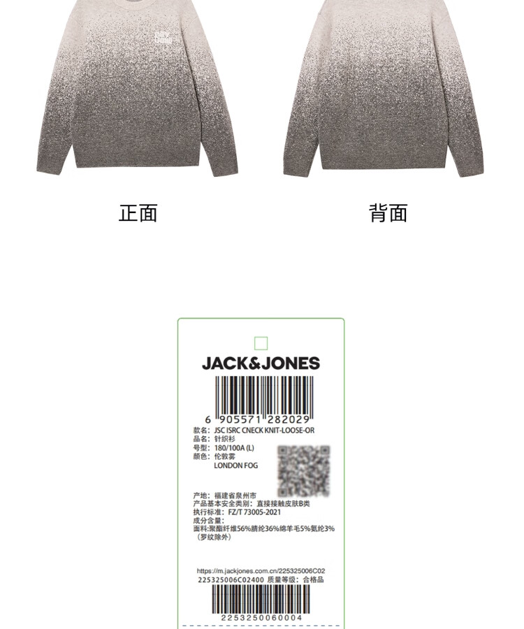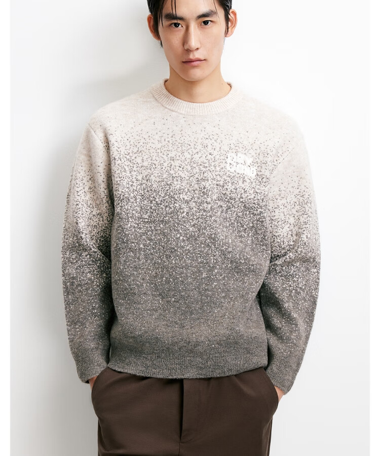 JACK&JONES Men's 25th Autumn and Winter Sweater Men's Cardigan Gradient Casual Knit Sweater Loose Round Neck Pullover Bottoming Shirt C02 London Fog Regular M (175)