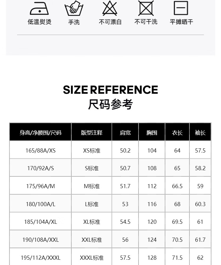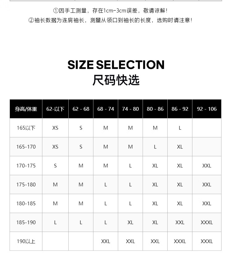 China (cm) 160-165/84-86 165-170 / 88-90 167-172 / 92-96 168-173 / 98-102 170-176 / 106-110