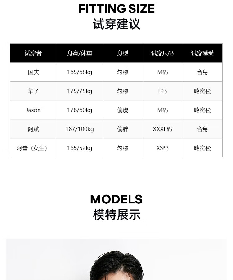 China (cm) 165 / 88-90 170 / 96-98 175 / 108-110 180 / 118-122 185 / 126-130