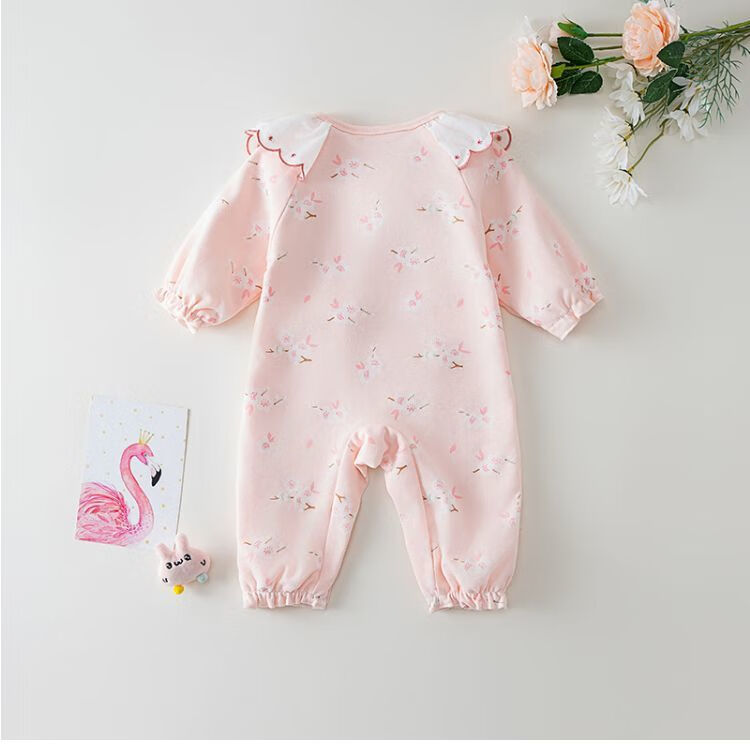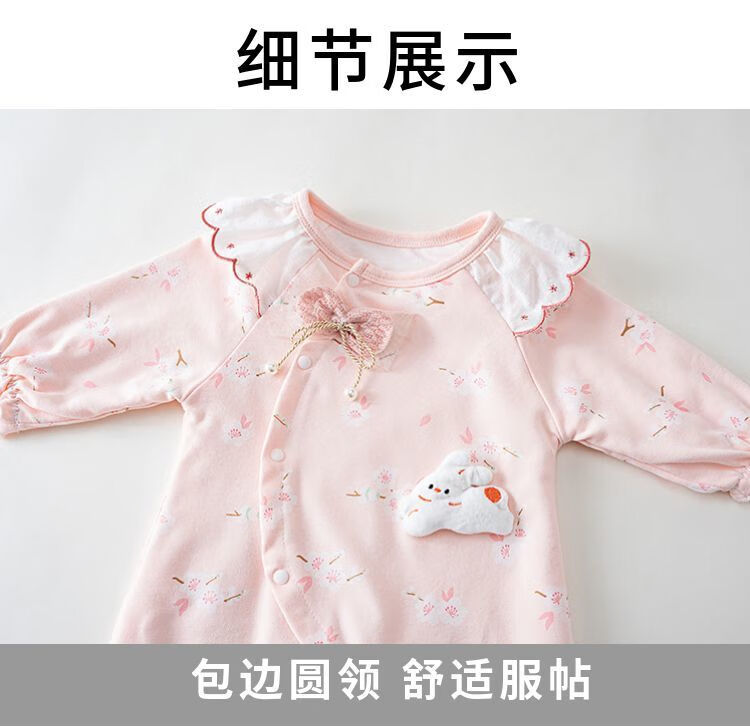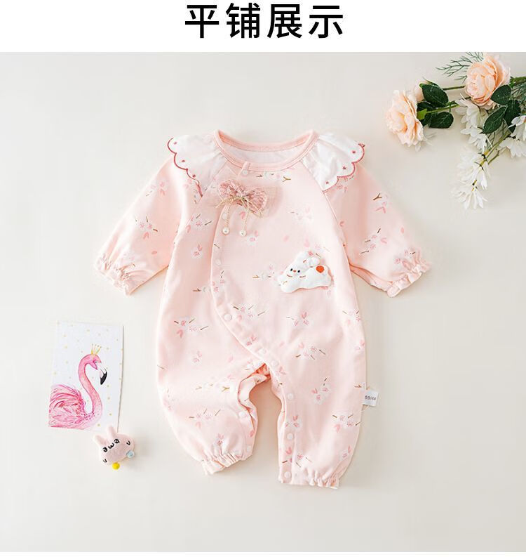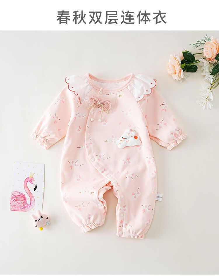 MENGYILAN Sweet Elements Baby Jumpsuit Double Layer Cotton Newborn Clothes Spring and Autumn Clothes Baby Girl Autumn Clothes KM Double Layer Cotton Jade Rabbit Jumpsuit Pink 66cm Recommended for 1-3 months