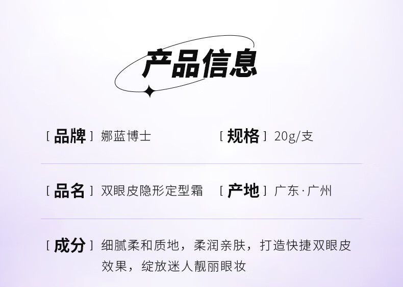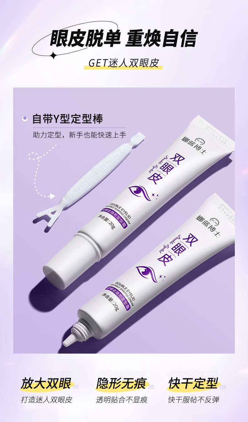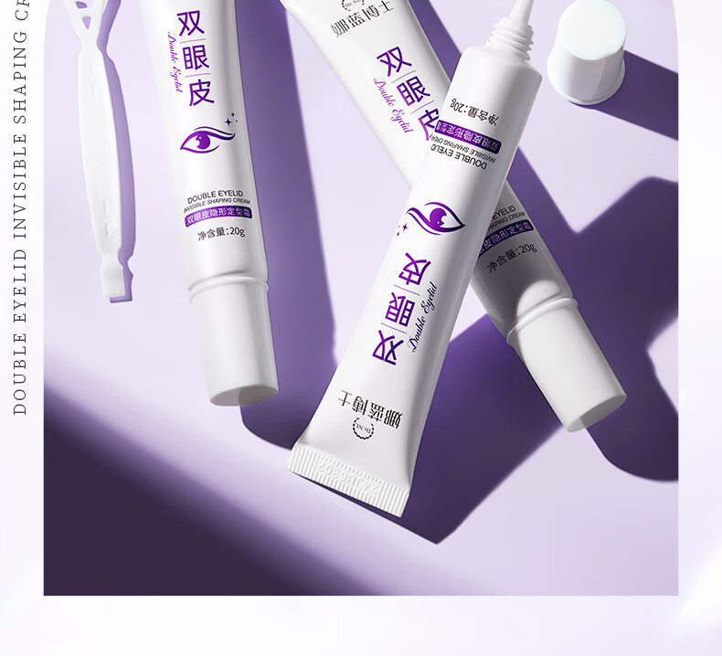 Double eyelid styling cream, large eye mask, double eyelid invisible traceless long-lasting styling patch, double eyelid invisible styling cream, 20g, purple style, 3 pairs