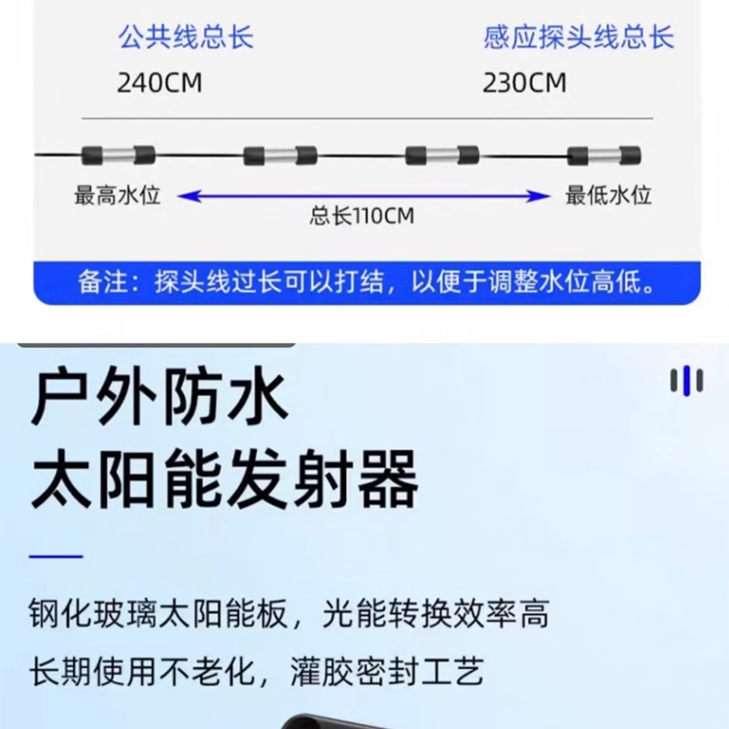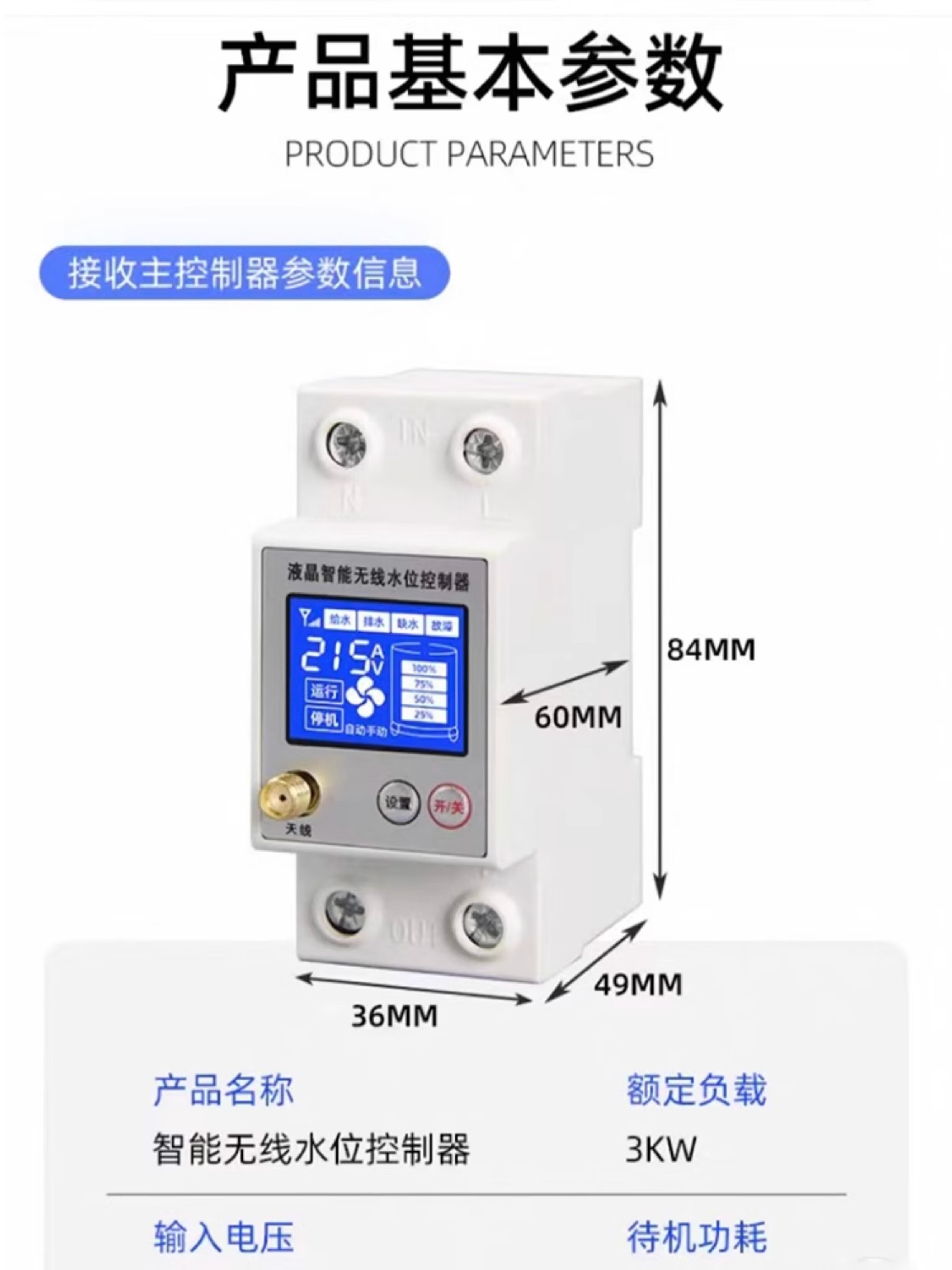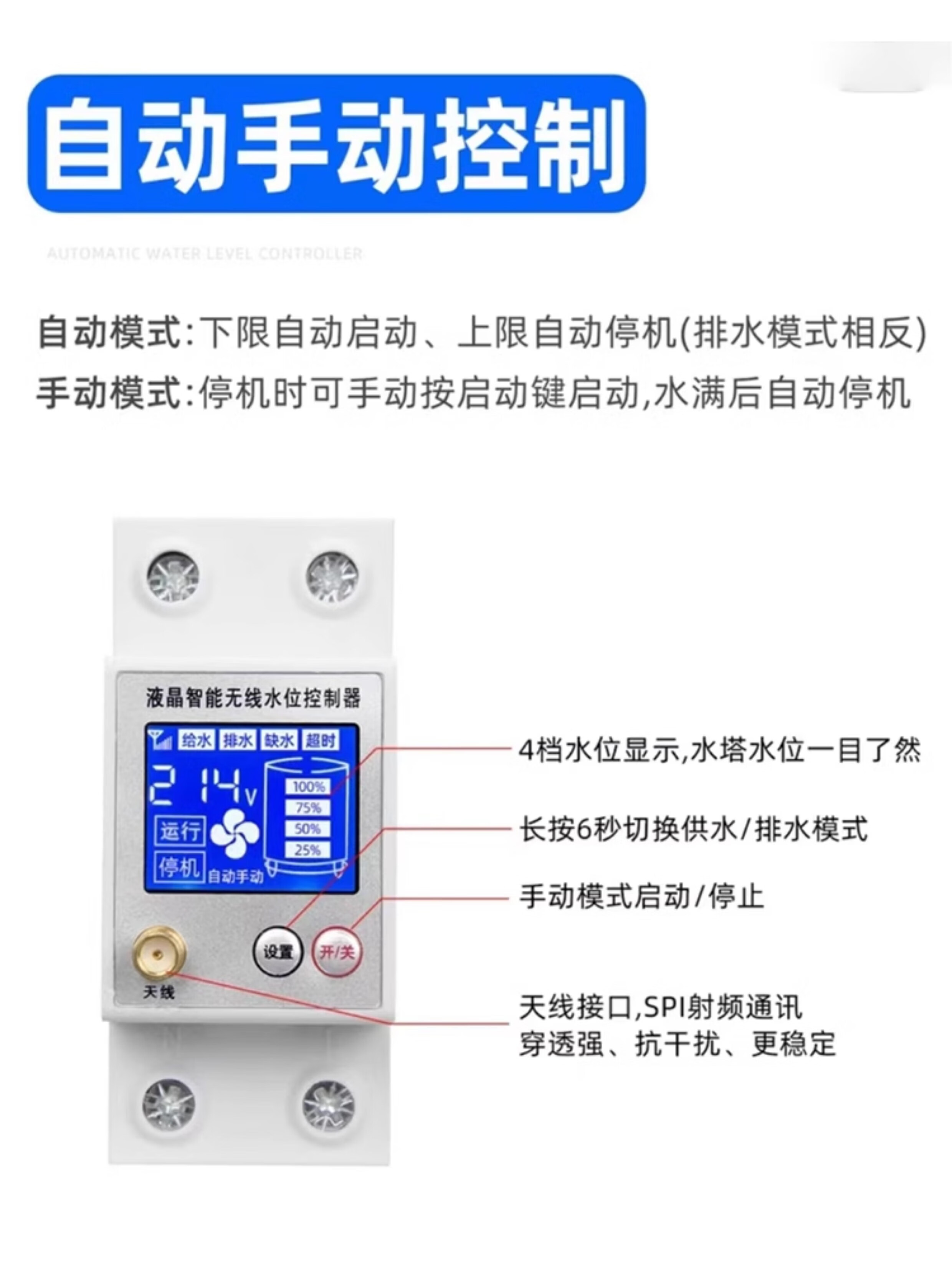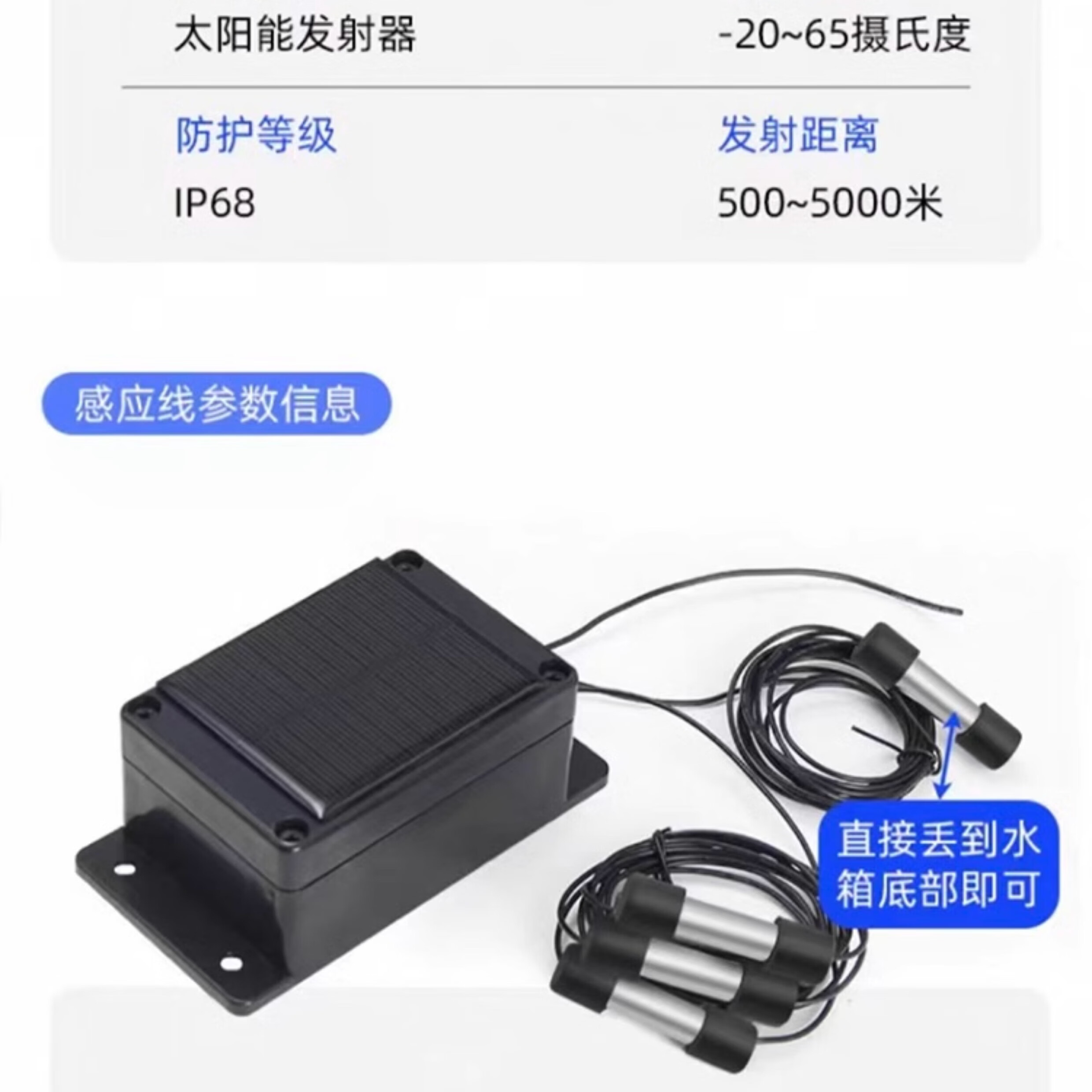 Wireless water level controller, fully automatic water tower, water tank, pool remote control switch, water pump, remote solar charging, LCD model, barrier-free 3000 meters with power adapter