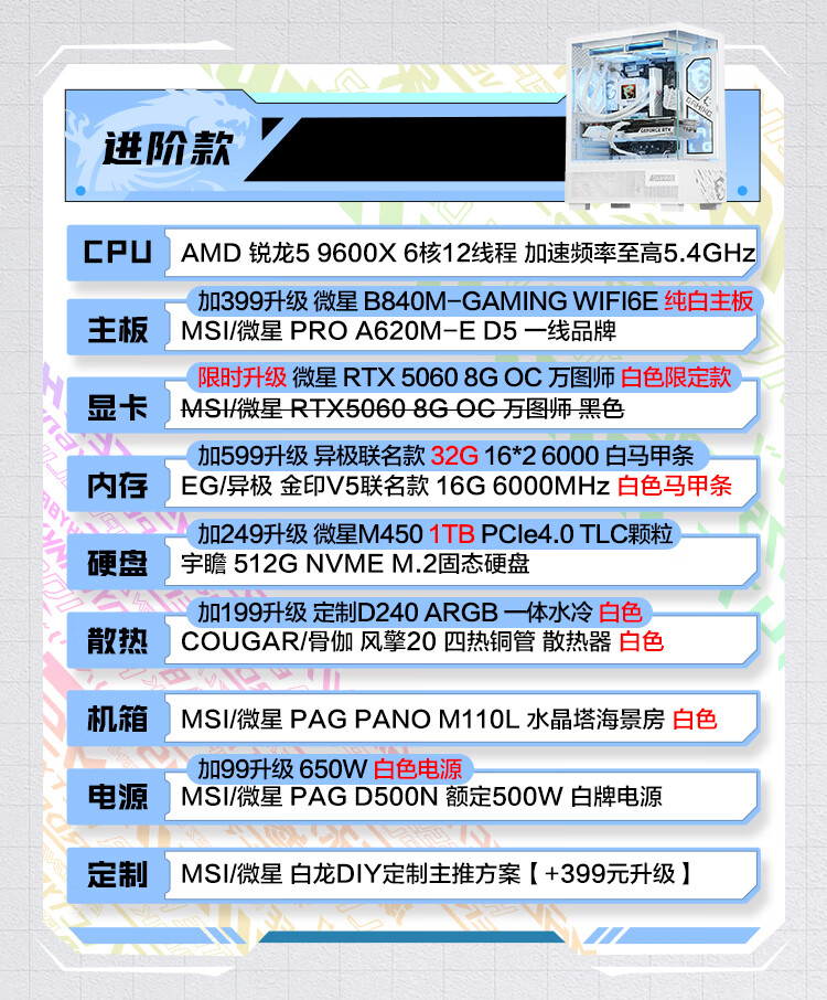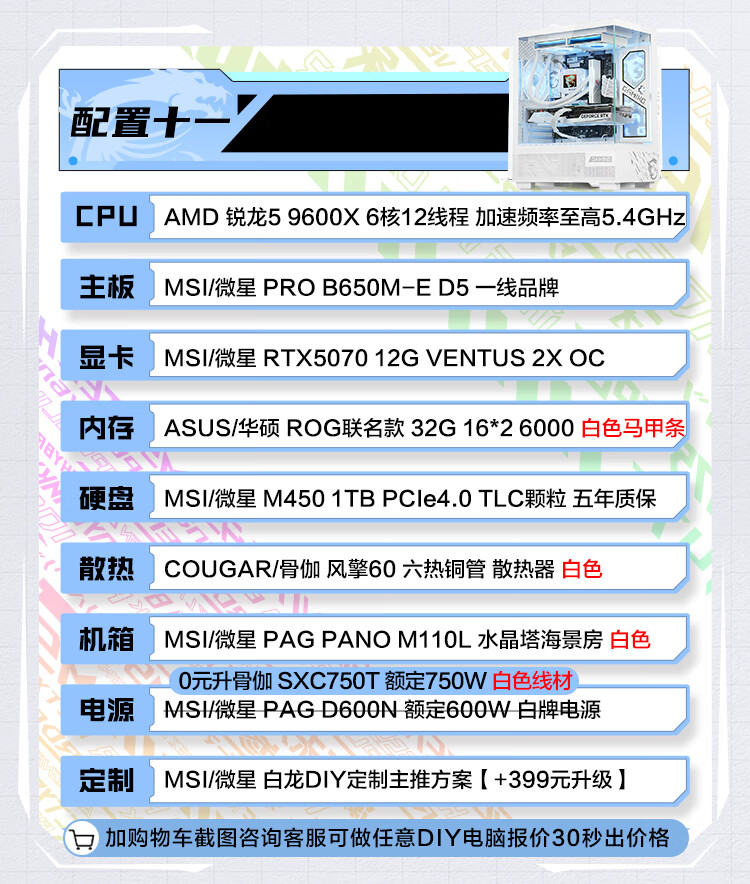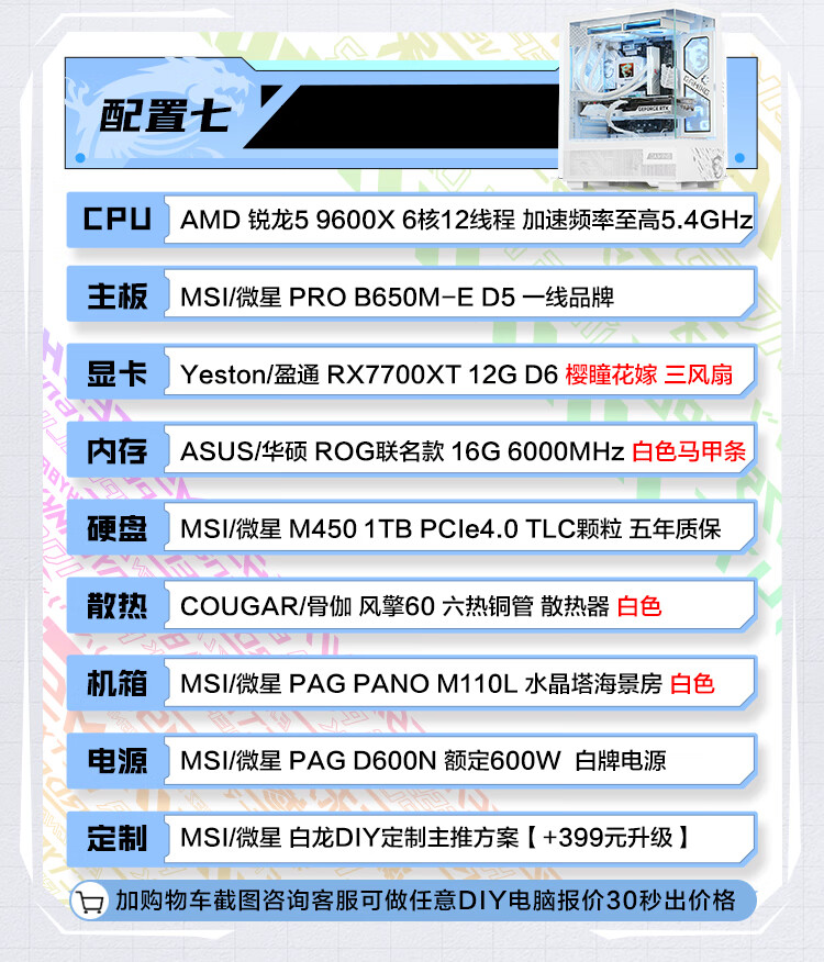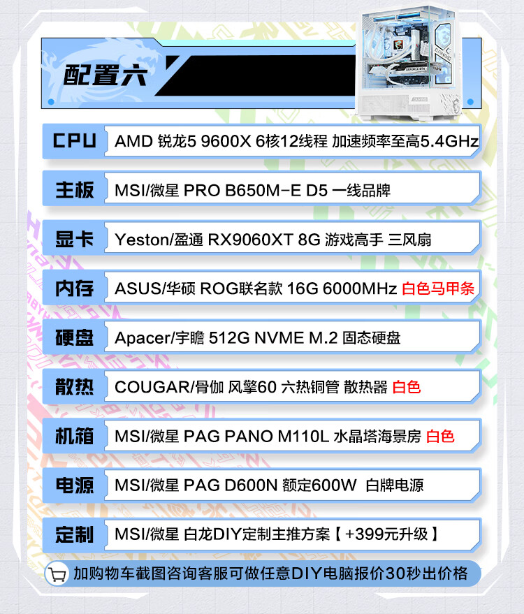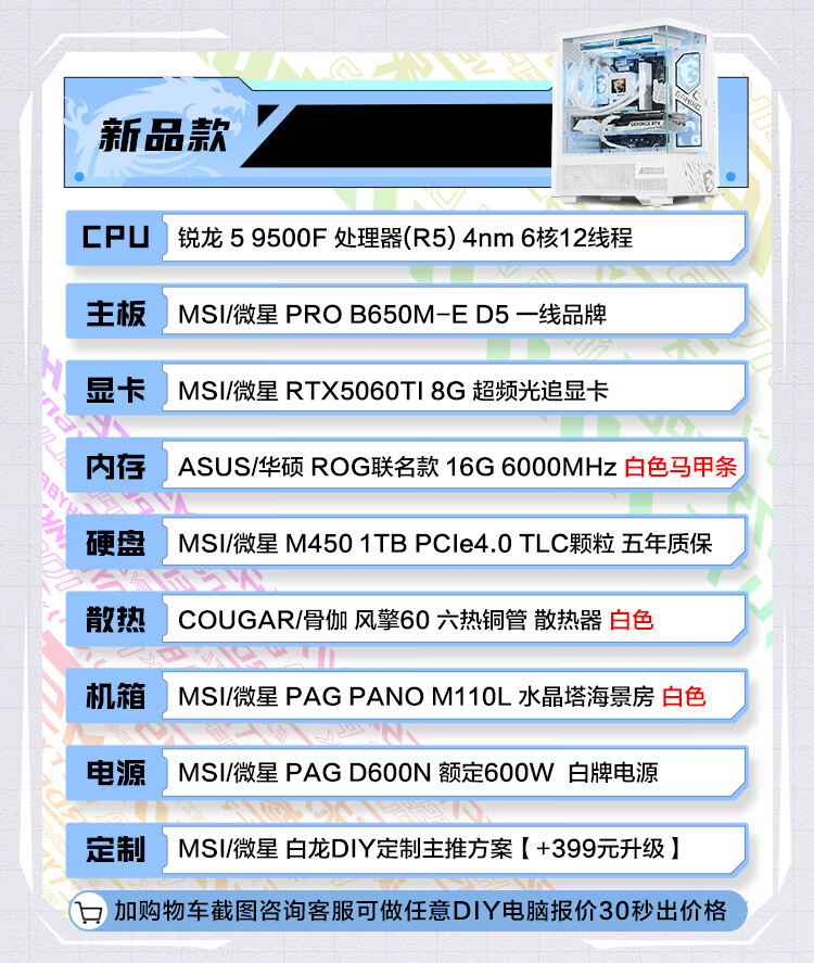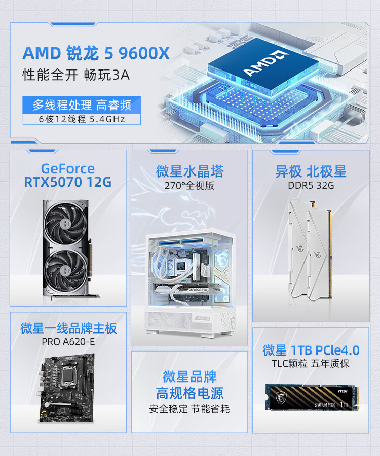 MSI AMD Ryzen R5 5600/R7 5700X/9500F/5060/5070TI office computer AI host e-sports game desktop complete machine DIY assembly computer 9600X+RTX5060丨Advanced model