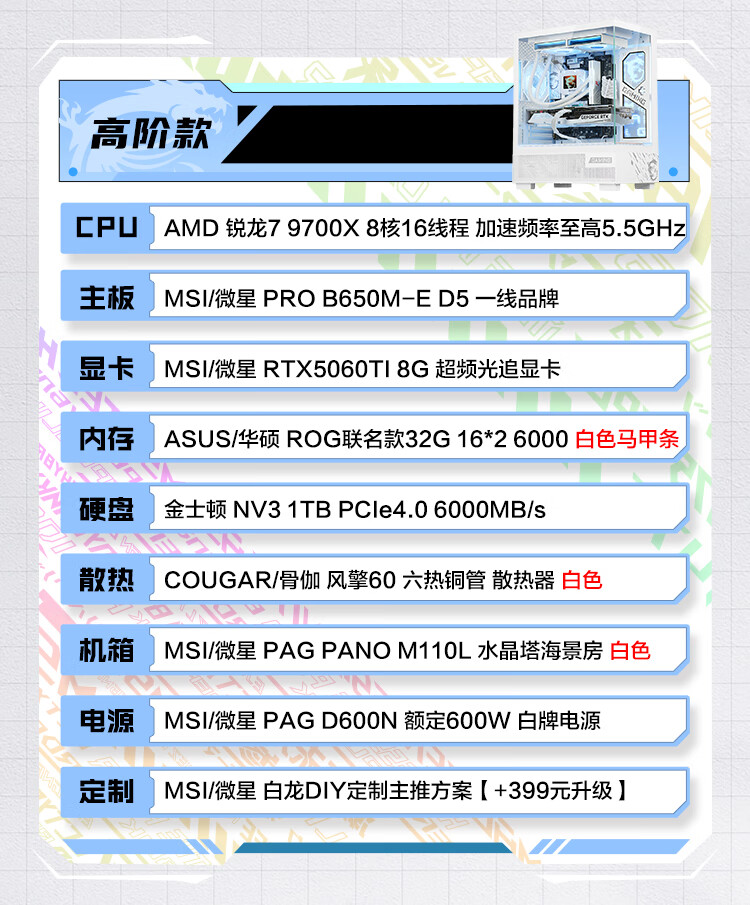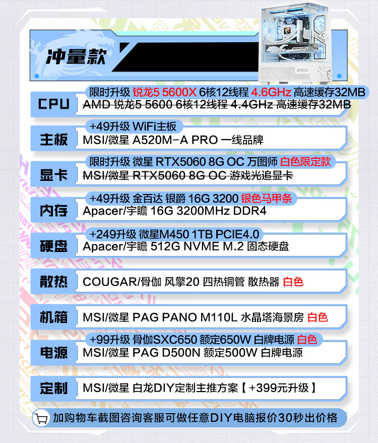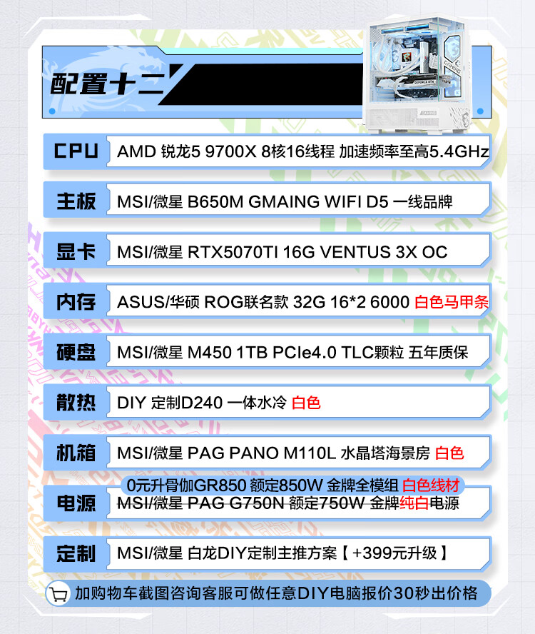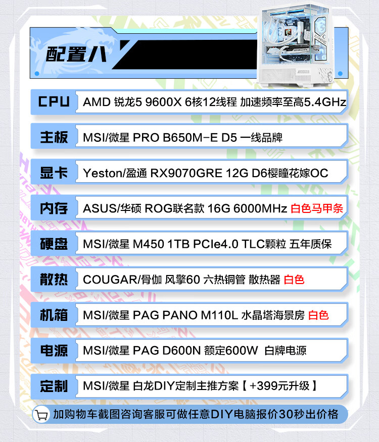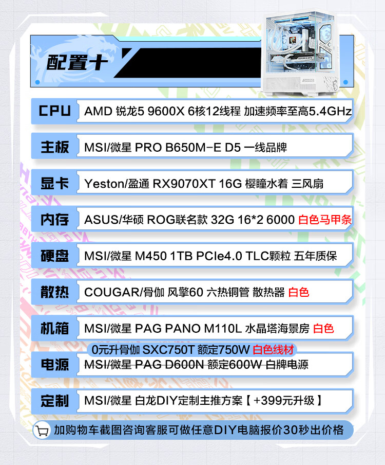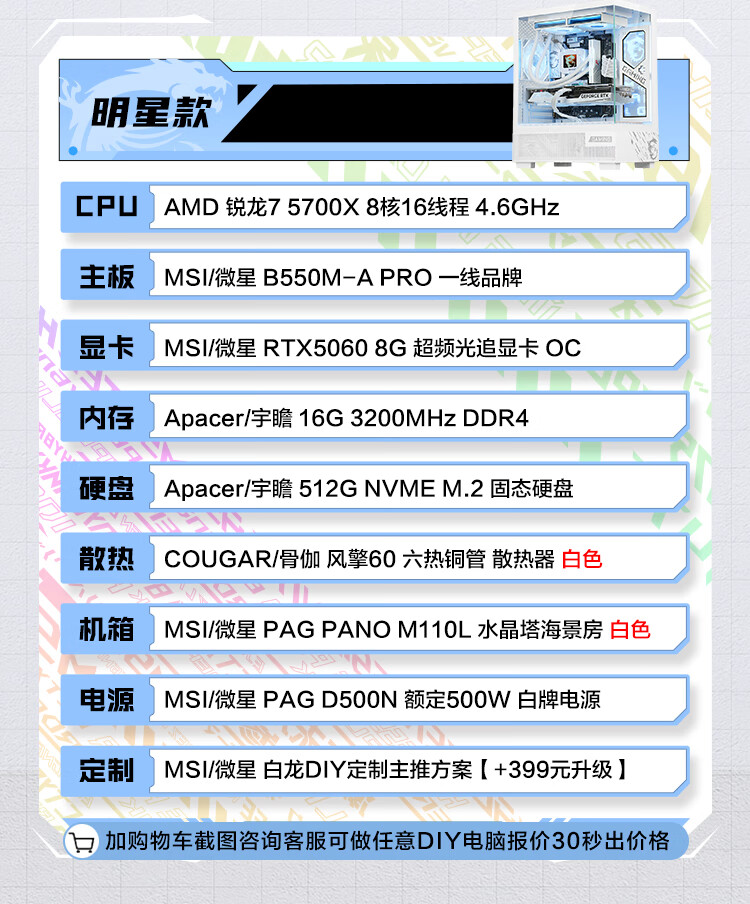 MSI AMD Ryzen R5 5600/R7 5700X/9500F/5060/5070TI office computer AI host e-sports game desktop complete machine DIY assembly computer 9600X+RTX5060丨Advanced model