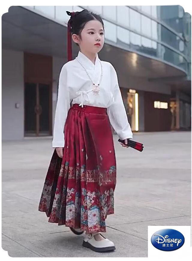 G.duck Girls Horse Face Skirt Autumn Clothing 2024 New Autumn Feeling Autumn and Winter Tang Suit Hanfu Mother and Daughter Suit Skirt Red 100 Children's Size 90-CM