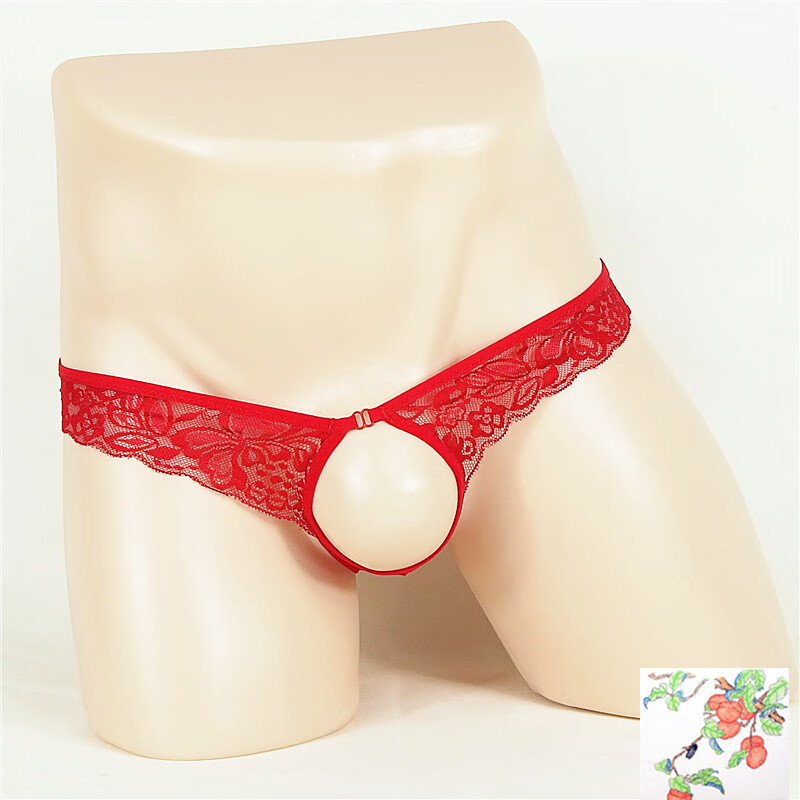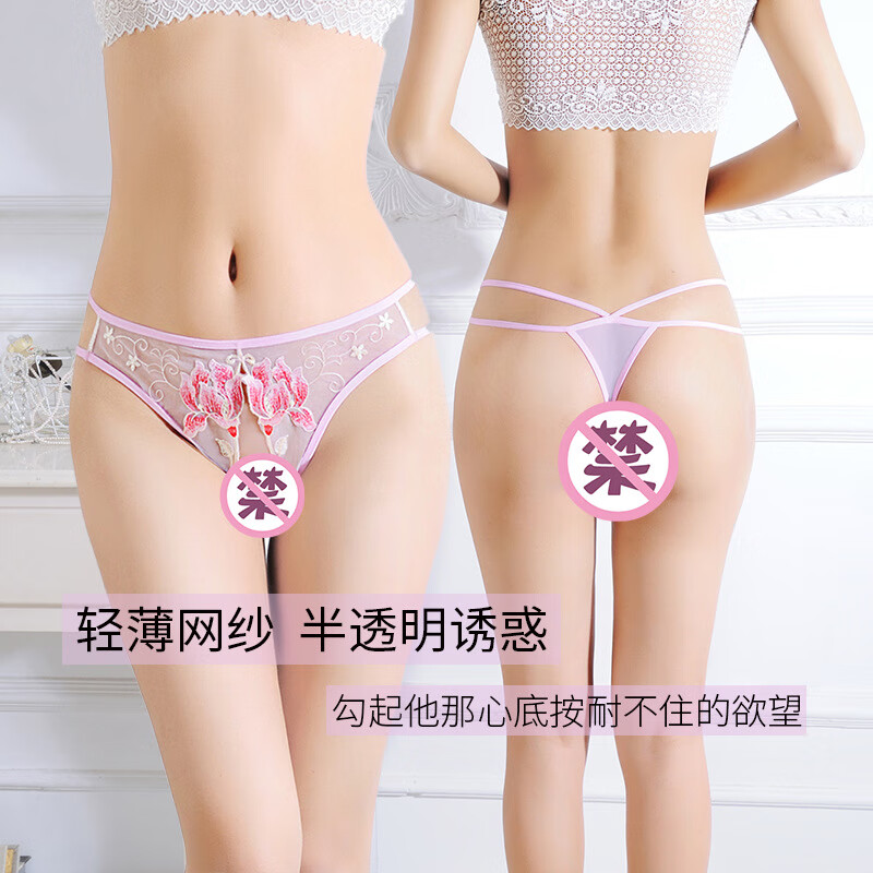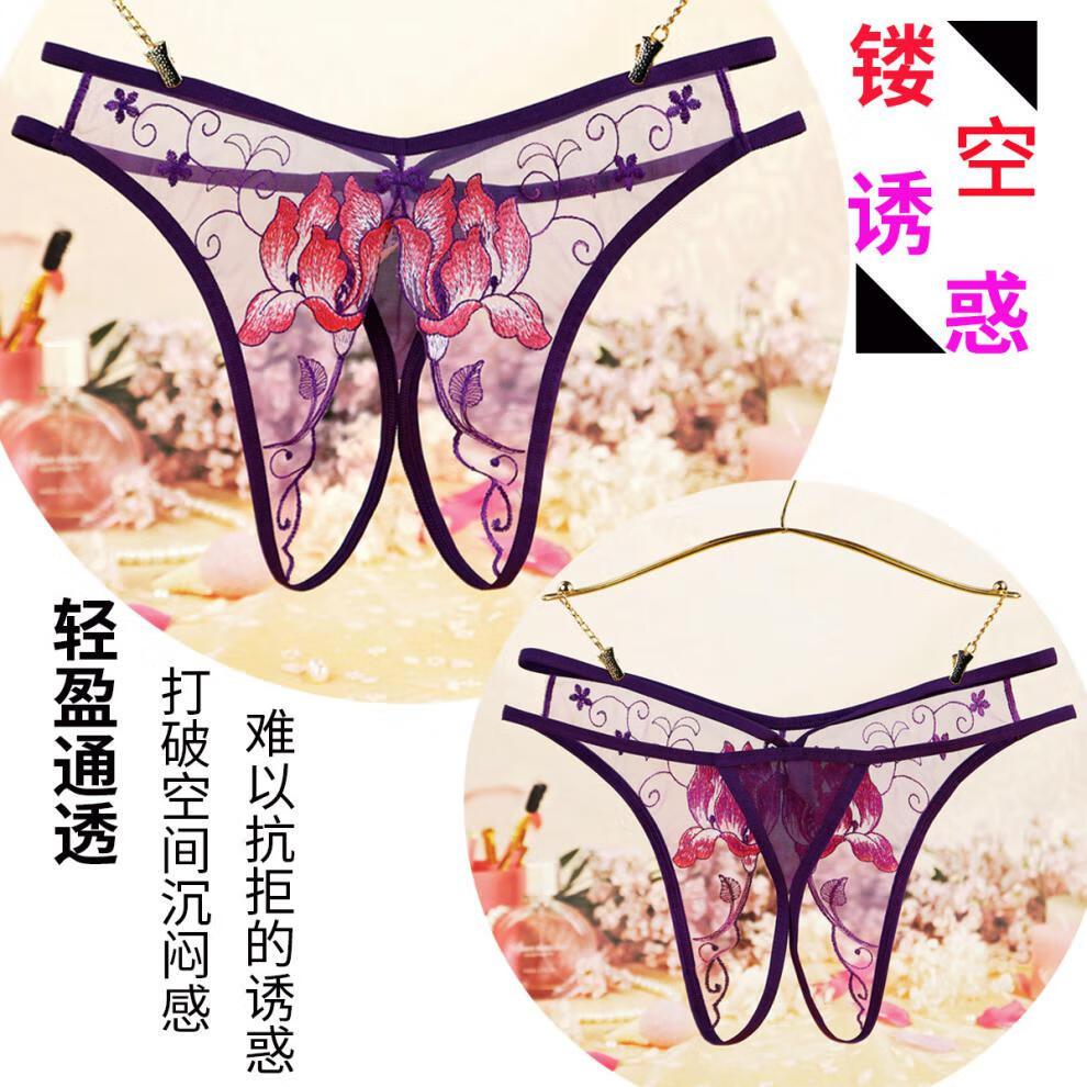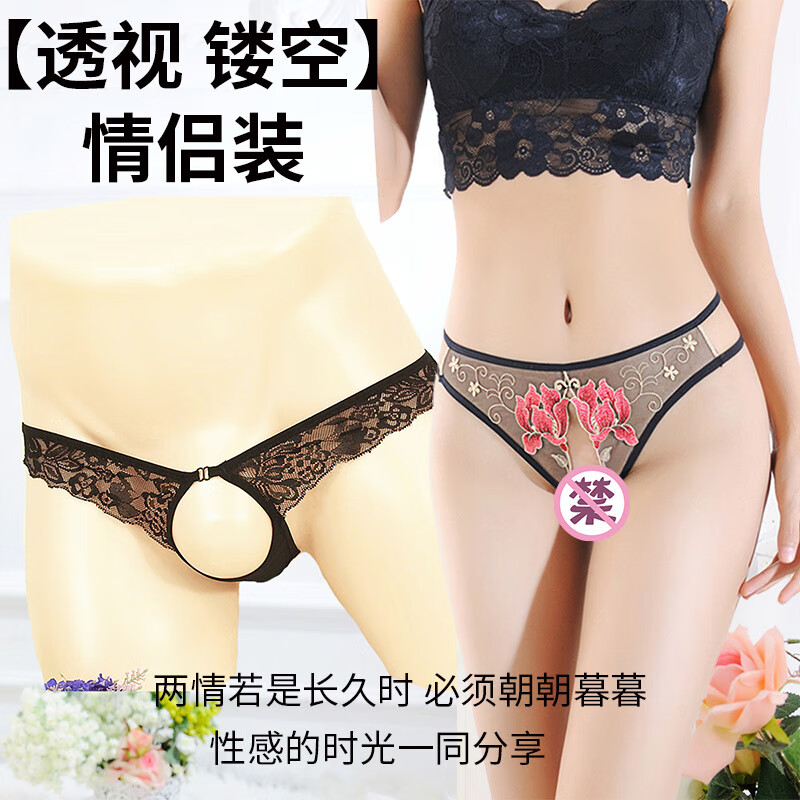 Trousers sexy underwear sexy and passionate transparent hole couple flirting thong men's hot embroidered T-pants women black black