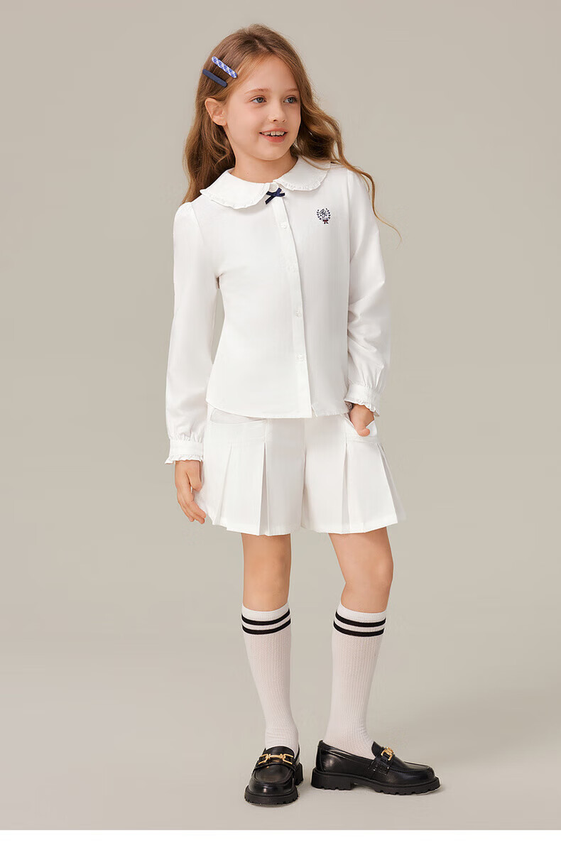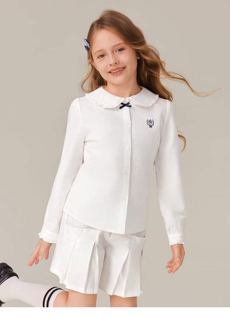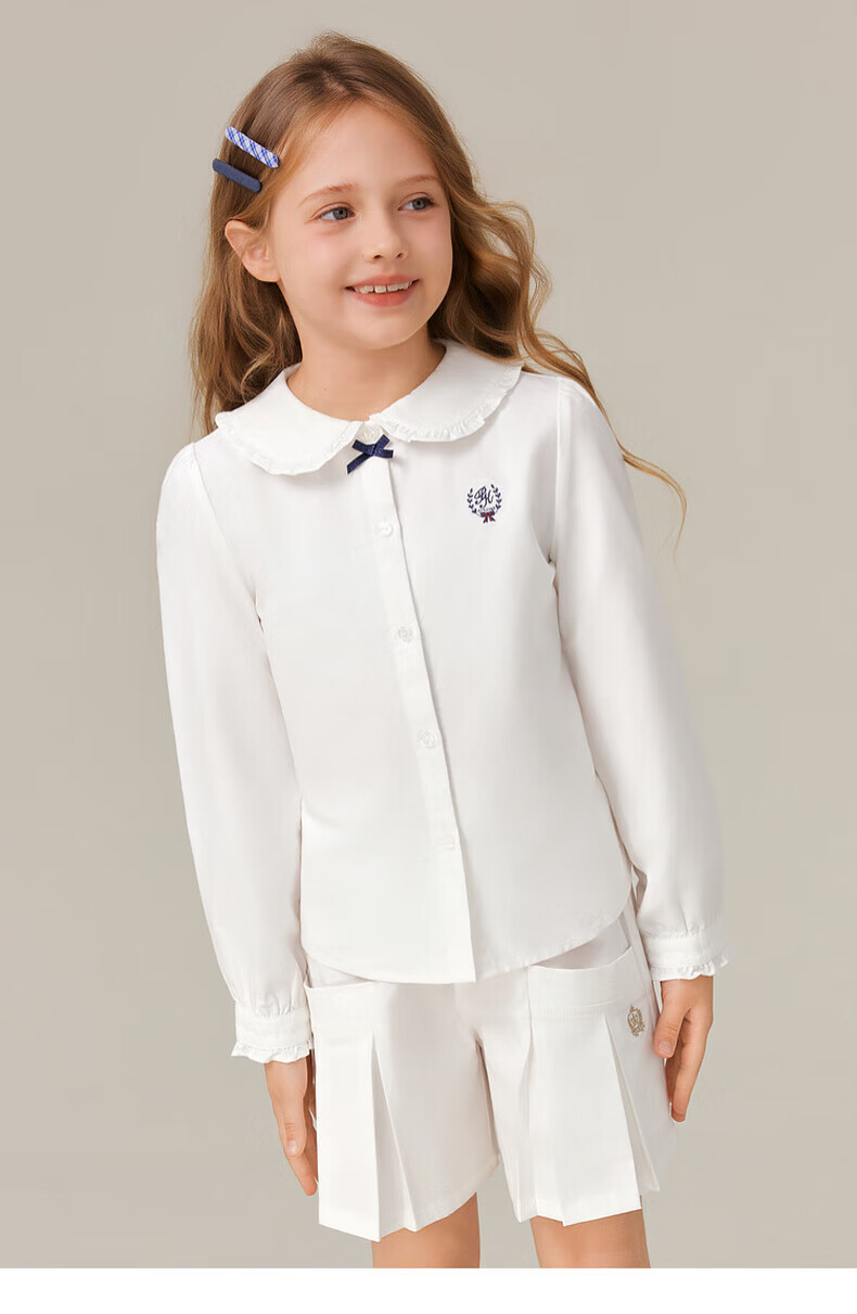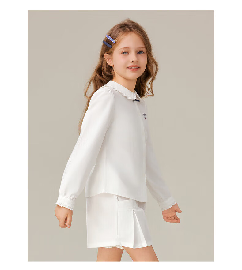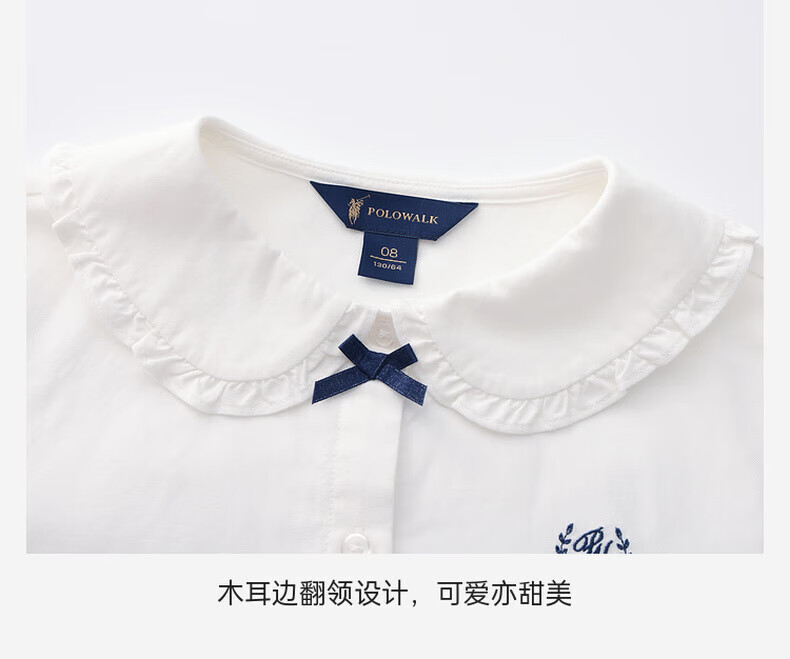 POLOWALK children's clothing girls' long-sleeved shirt 2025 autumn new college style embroidered top medium and large children's jacket white 120 120cm