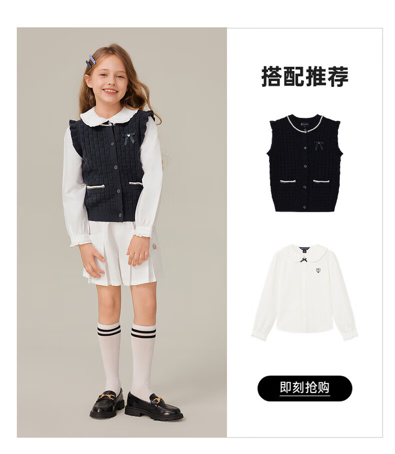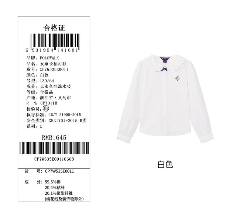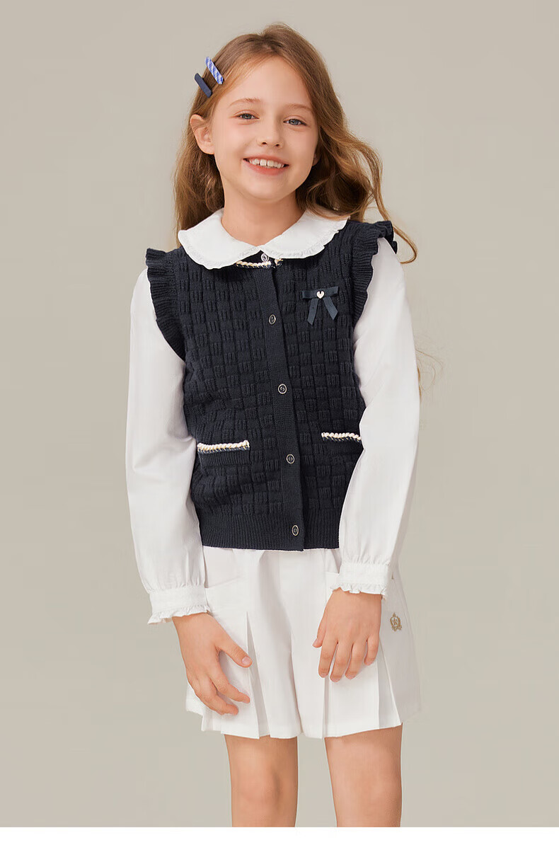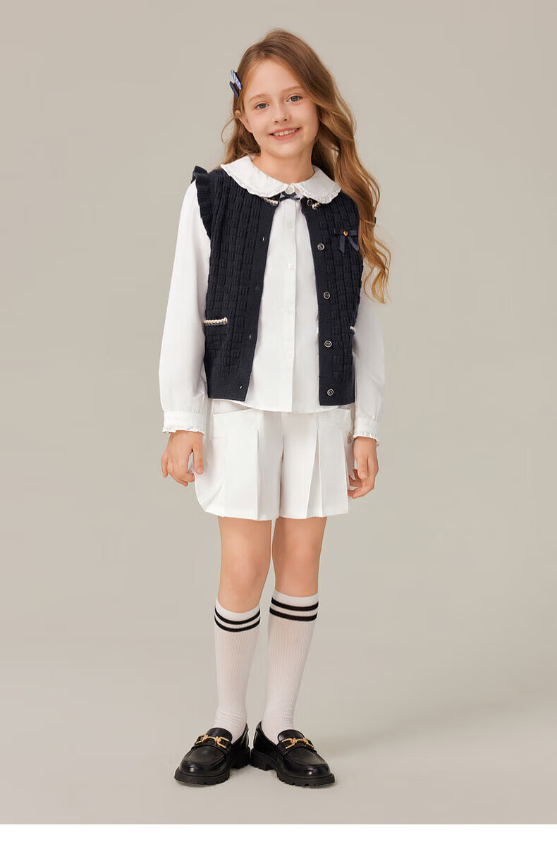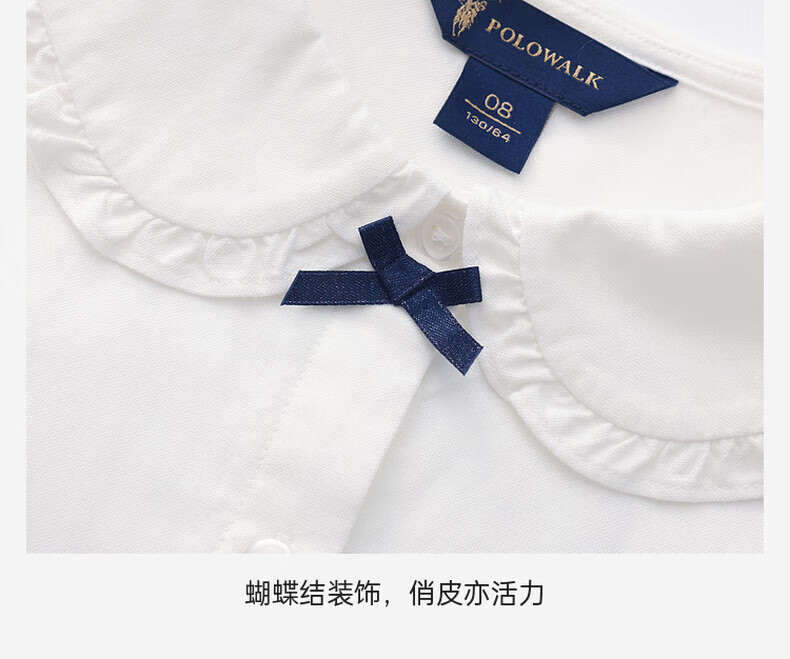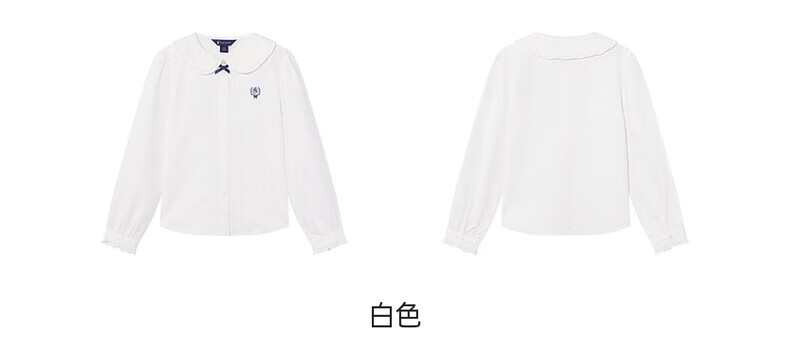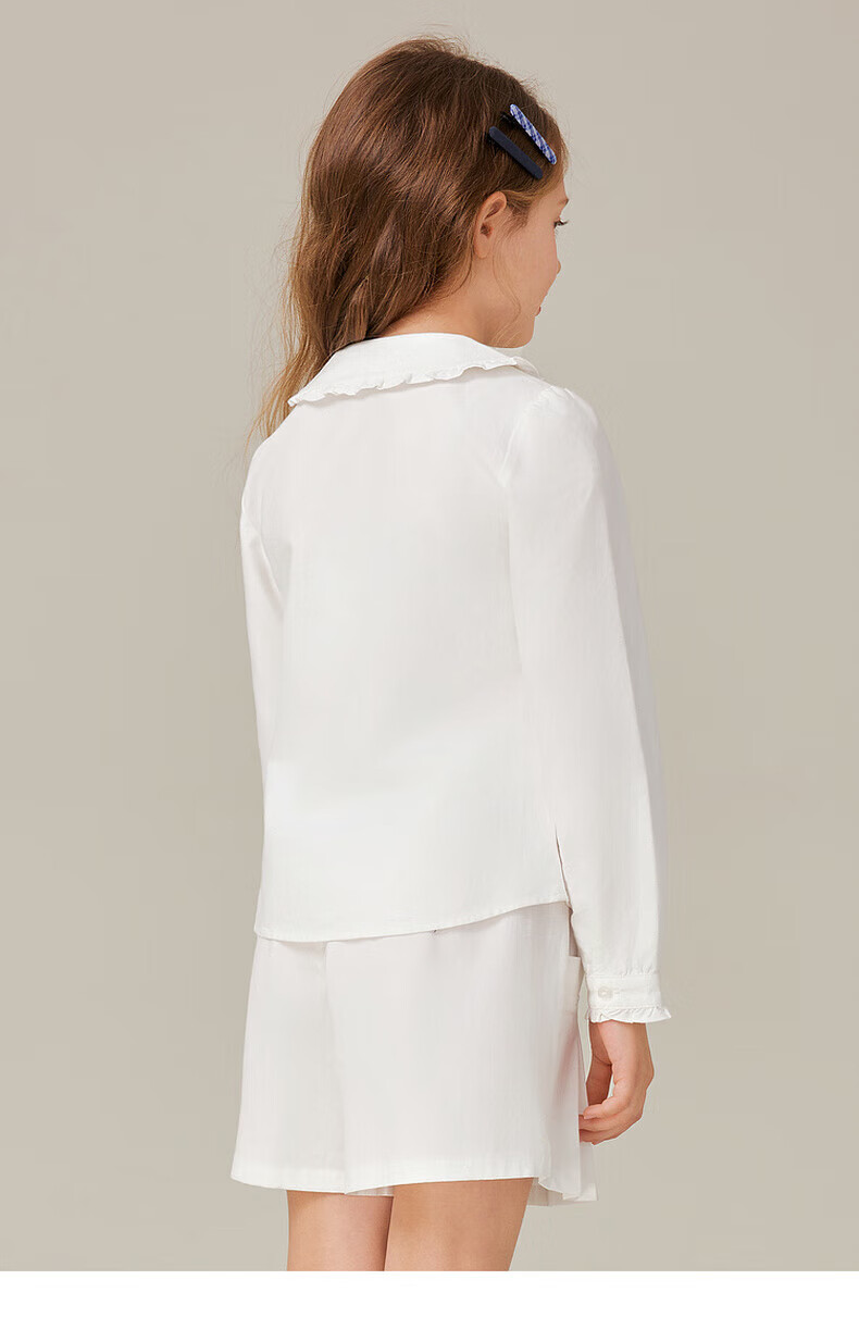 POLOWALK children's clothing girls' long-sleeved shirt 2025 autumn new college style embroidered top medium and large children's jacket white 120 120cm