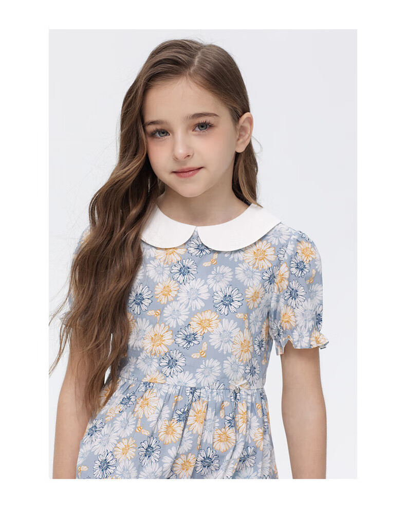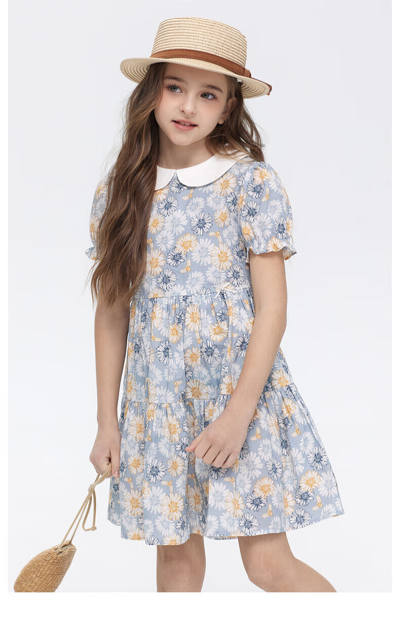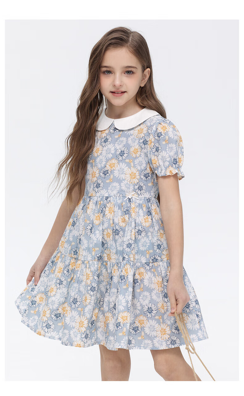 POLOWALK Cotton Summer Children's Clothing Girls Dress 25 Summer New Vacation Style Printed Versatile Skirt Blue 110