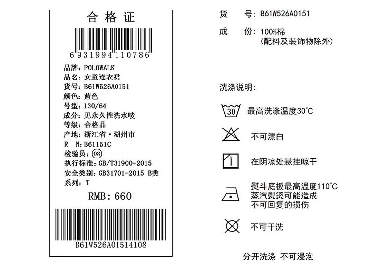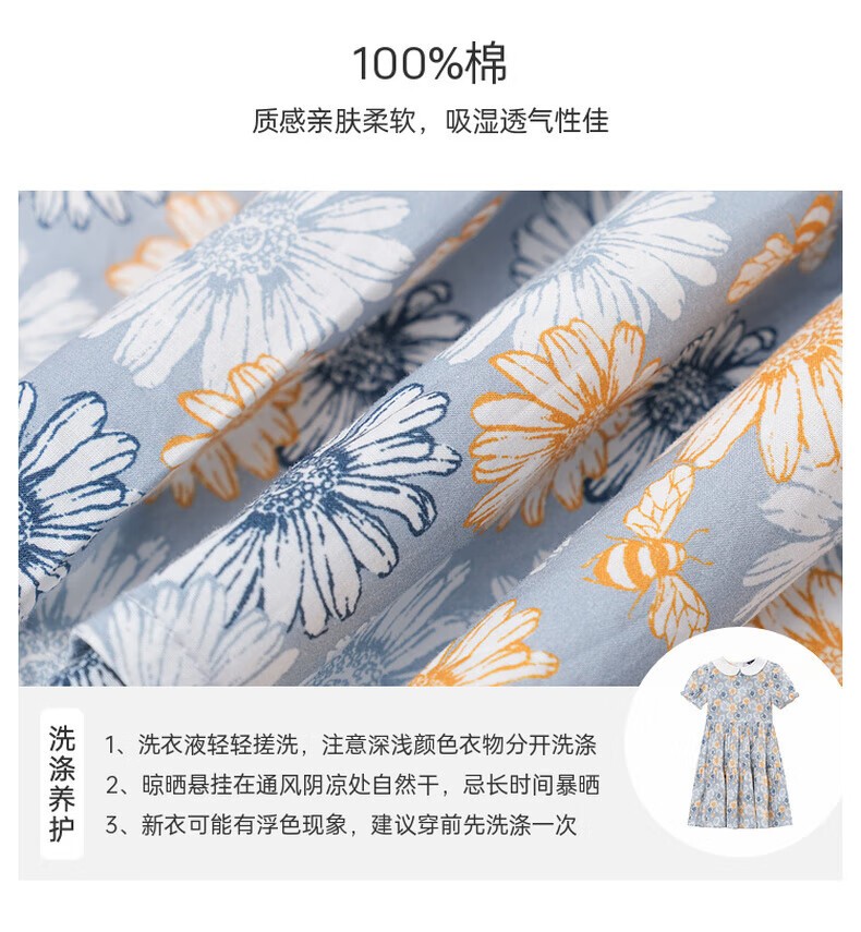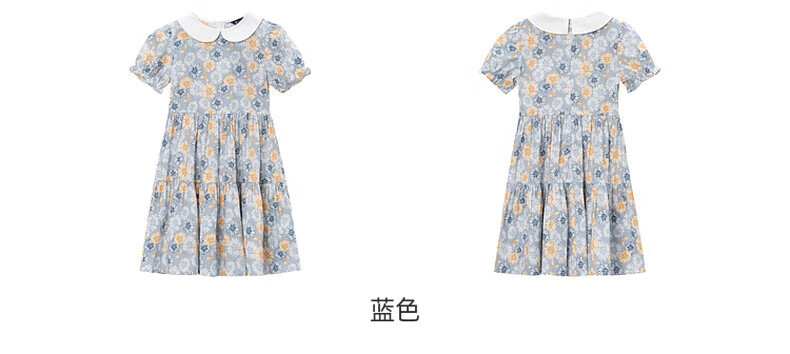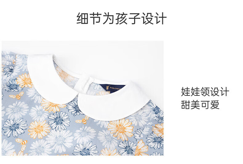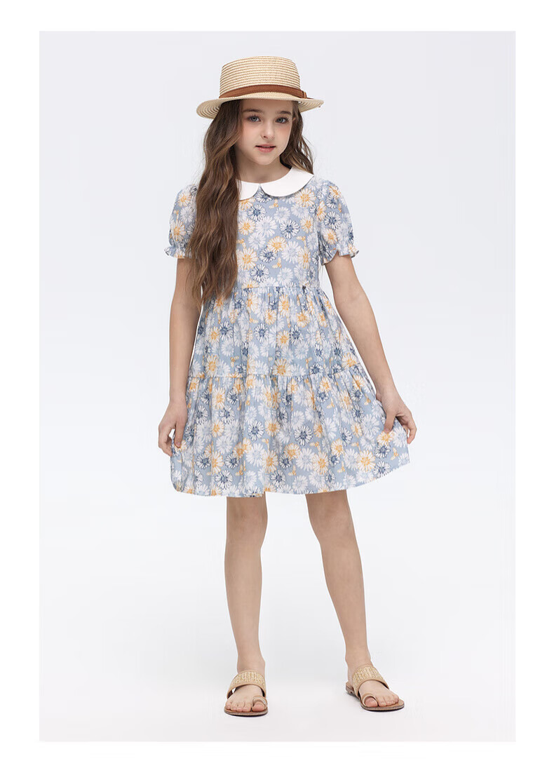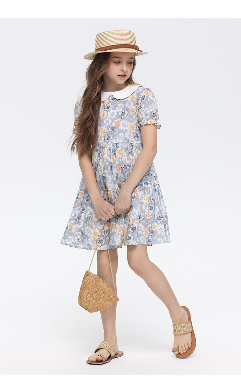 POLOWALK Cotton Summer Children's Clothing Girls Dress 25 Summer New Vacation Style Printed Versatile Skirt Blue 110