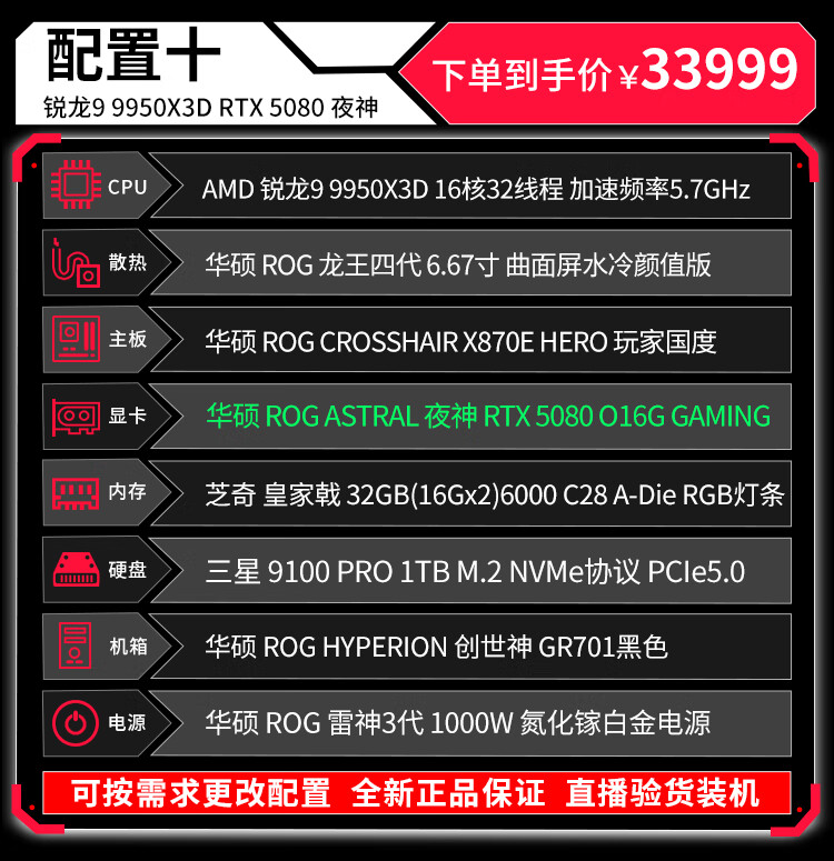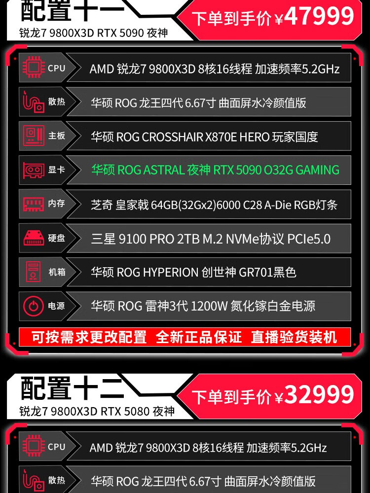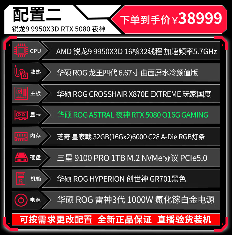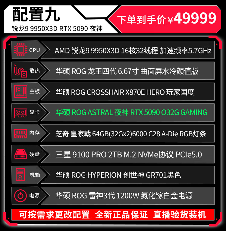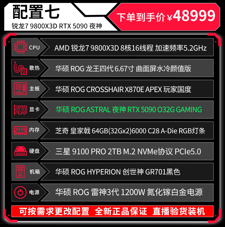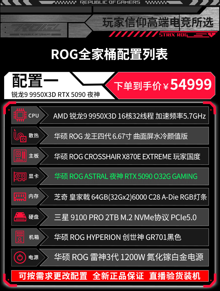 ASUS ROG family bucket Genesis host 9950X3D 9800X3D 5080 5090D Night God graphics card thousand frames e-sports game live broadcast high-end DIY assembly computer complete machine 1 R9 9950X3D+RTX5090 Night God